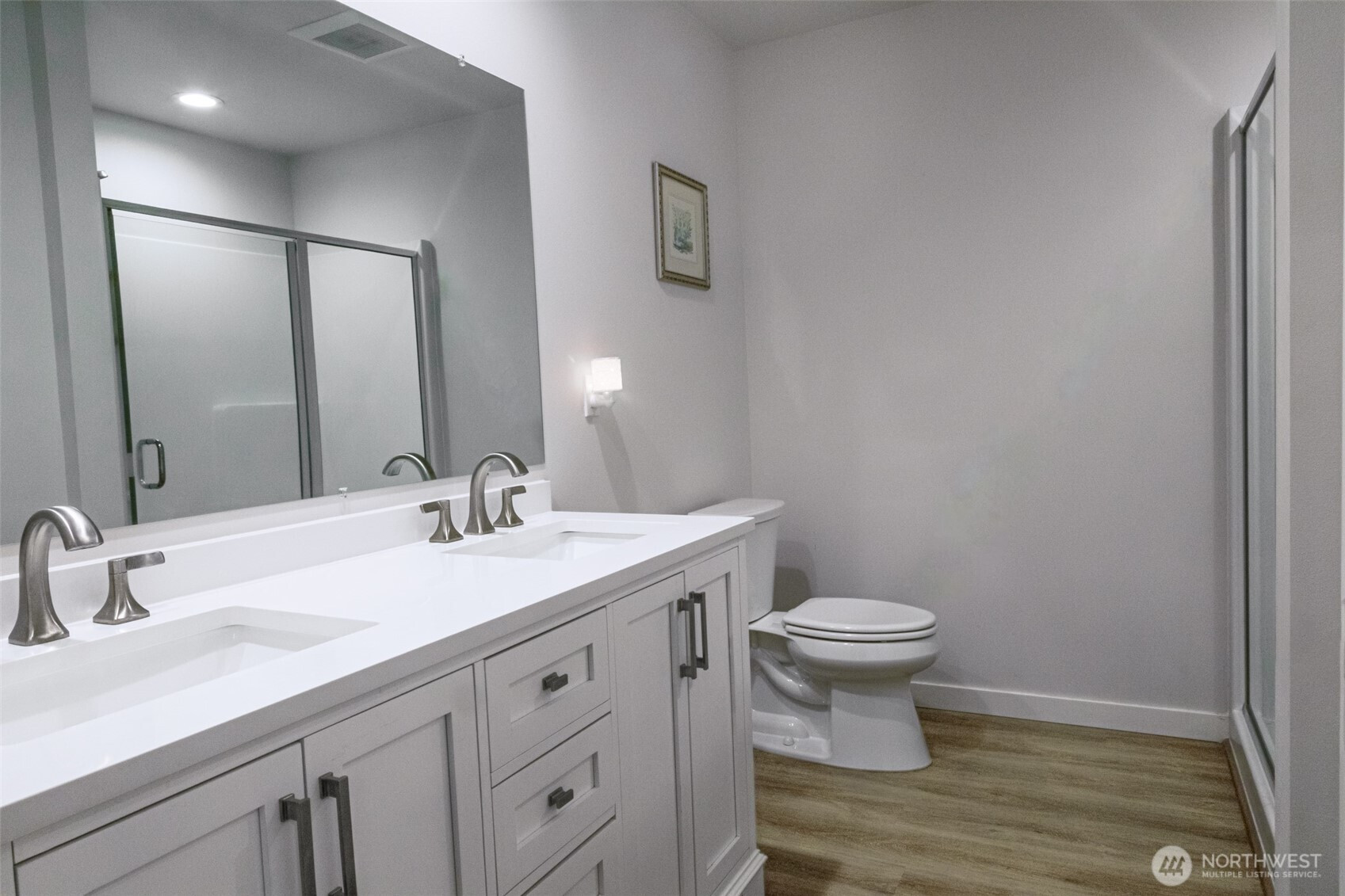Located in a gated community at the end of a dead-end cul-de-sac, this 3-year-old, 3-bedroom, 1.75-bathroom home. This home has laminate flooring throughout, quality soft close cabinets and drawers, quartz countertops. Primary bedroom has a walk-in closet, generous sized on-suite bathroom complete with 2 sinks and a walk-in shower. Mini split provides low cost heating with the benefit of low cost A/C! Double car garage provides room for your vehicles and/or storage. Patio off the dining area lets you enjoy the outdoors and soak in the stunning mountain views this community offers. Just a short 35-minute drive to Bellingham or 25-minute drive to Lynden.