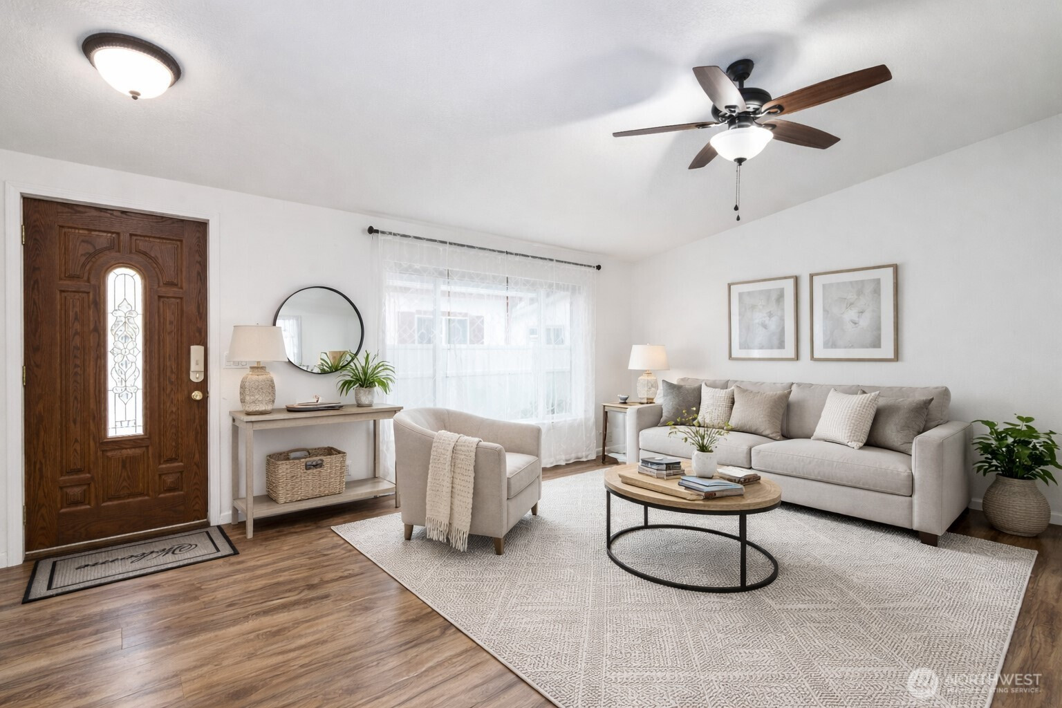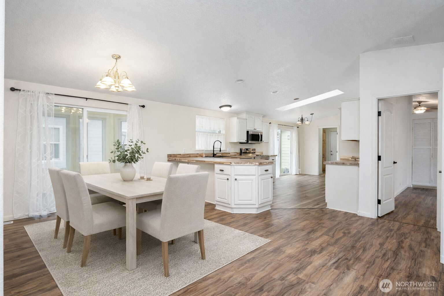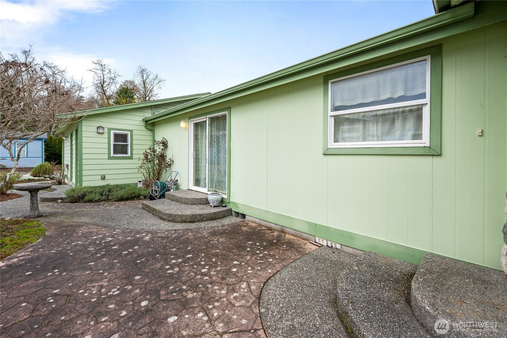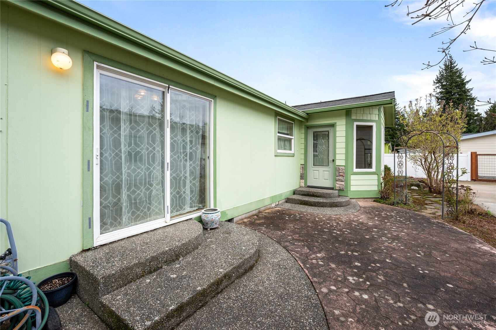 Beautifully updated 3-bedroom, 2-bath home located in the sought-after Portal Creek 55+ Community. Designed for comfortable, low-maintenance living, the open-concept floor plan features vaulted ceilings and an abundance of natural light throughout. The spacious kitchen seamlessly connects to the living and dining areas, showcasing brand-new flooring and updated countertops. Enjoy tranquil mornings in the enclosed sunroom, offering peaceful views of the thoughtfully landscaped patio. The primary suite includes a generous walk-in closet, while additional highlights include ample storage, an attached garden shed, and a 2-car garage with ramp access for added convenience. Conveniently located near I-5, public transportation, and just minutes from Bellingham, this move-in-ready home offers both comfort and accessibility—an exceptional opportunity that is move-in ready!