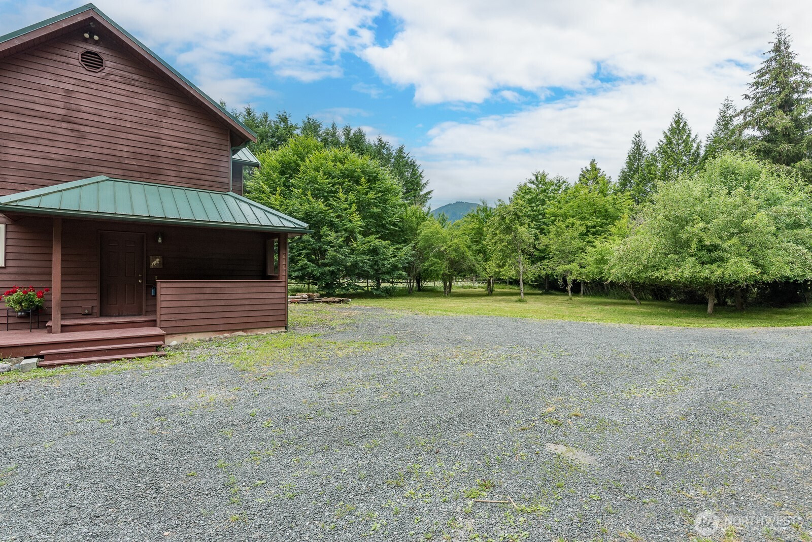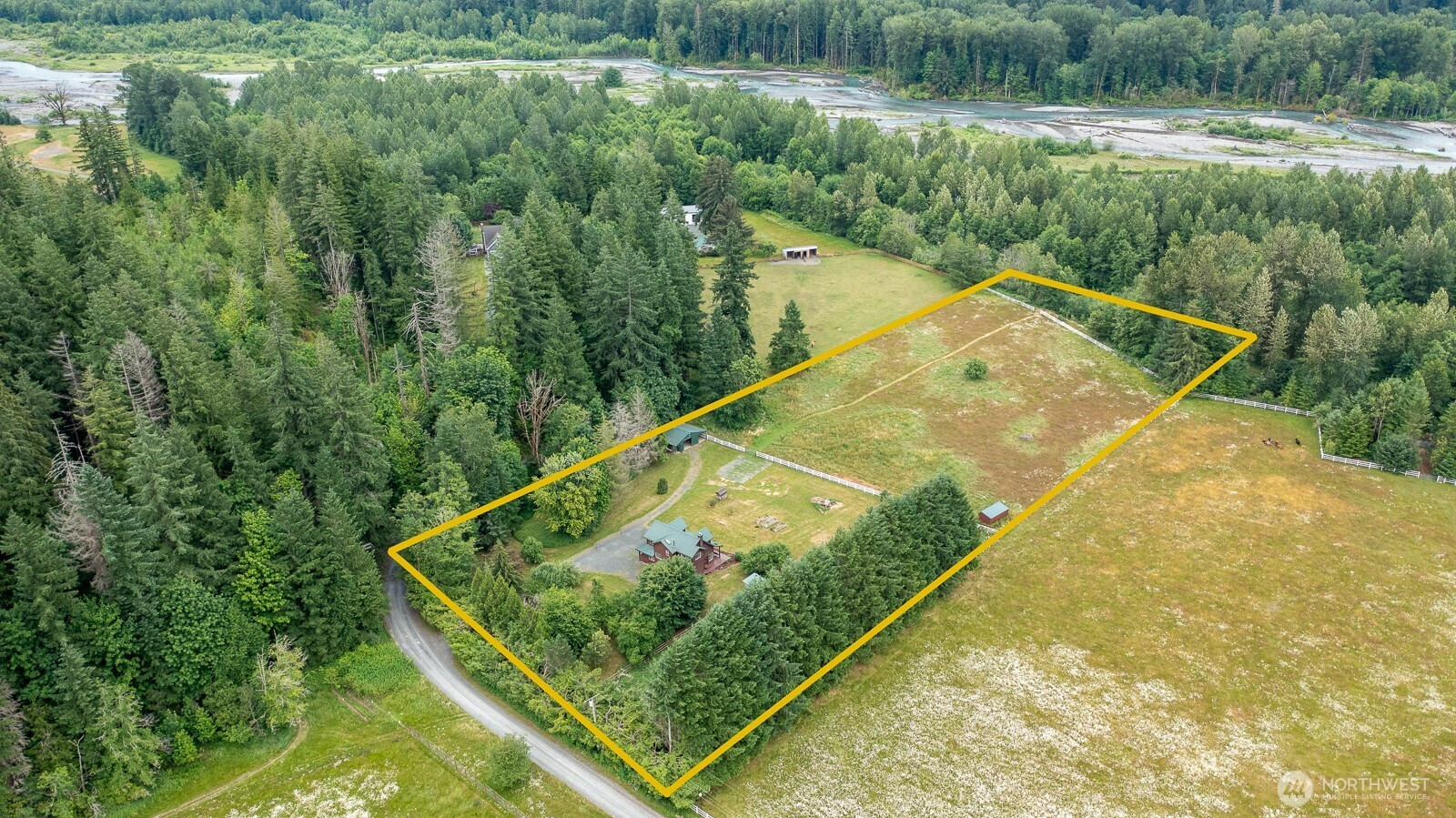 This 4bd/2bath Northwest style home is just 30 minutes from Bellingham, 40 minutes from Mt. Baker, and nestled on 12+acres with it's own river access. Unfinished basement provides room to grow. Situated on a quiet, well-maintained road, this quality home has exceptional mountain views. An expansive deck is perfect for outdoor living, surrounded by fruit trees, eagles soaring above, and fenced land and shelters for your horses or other livestock. The shop provides storage for all of your homestead needs or outdoor equipment. Property has RV parking and multiple outbuildings. New paint, range, carpet and heat pump make it move in ready. Welcome home!