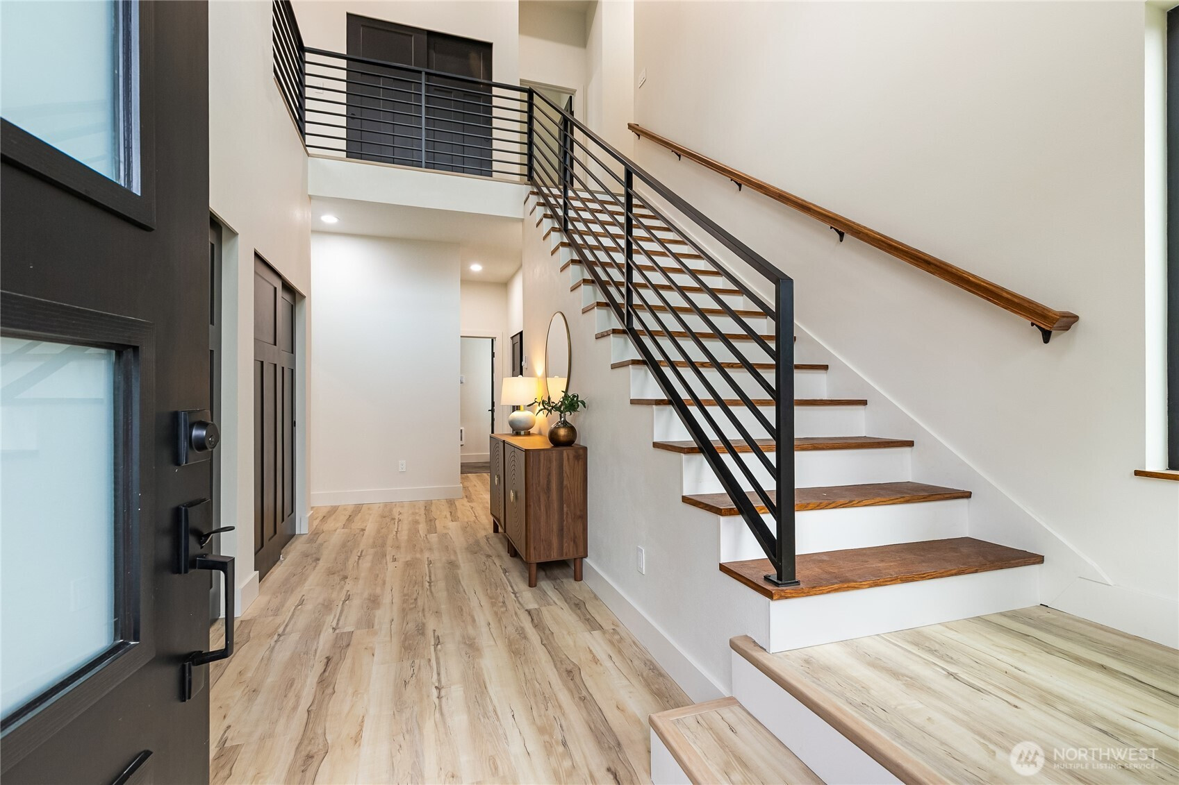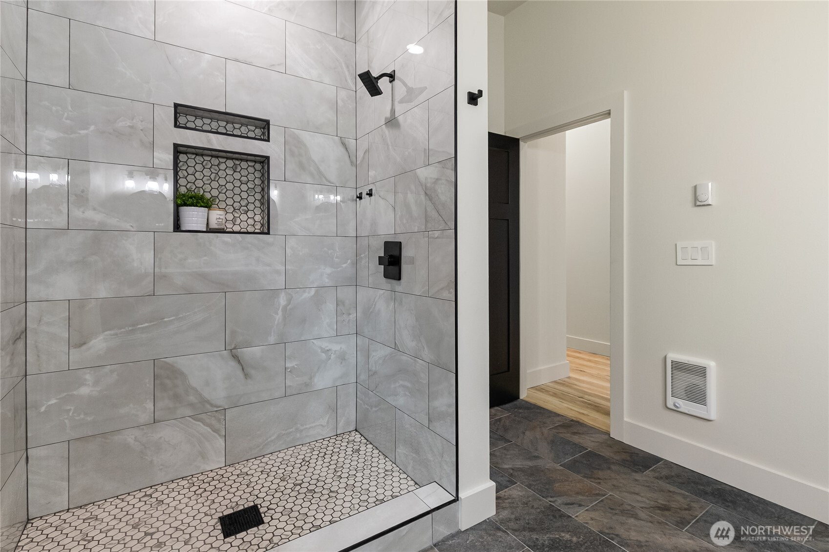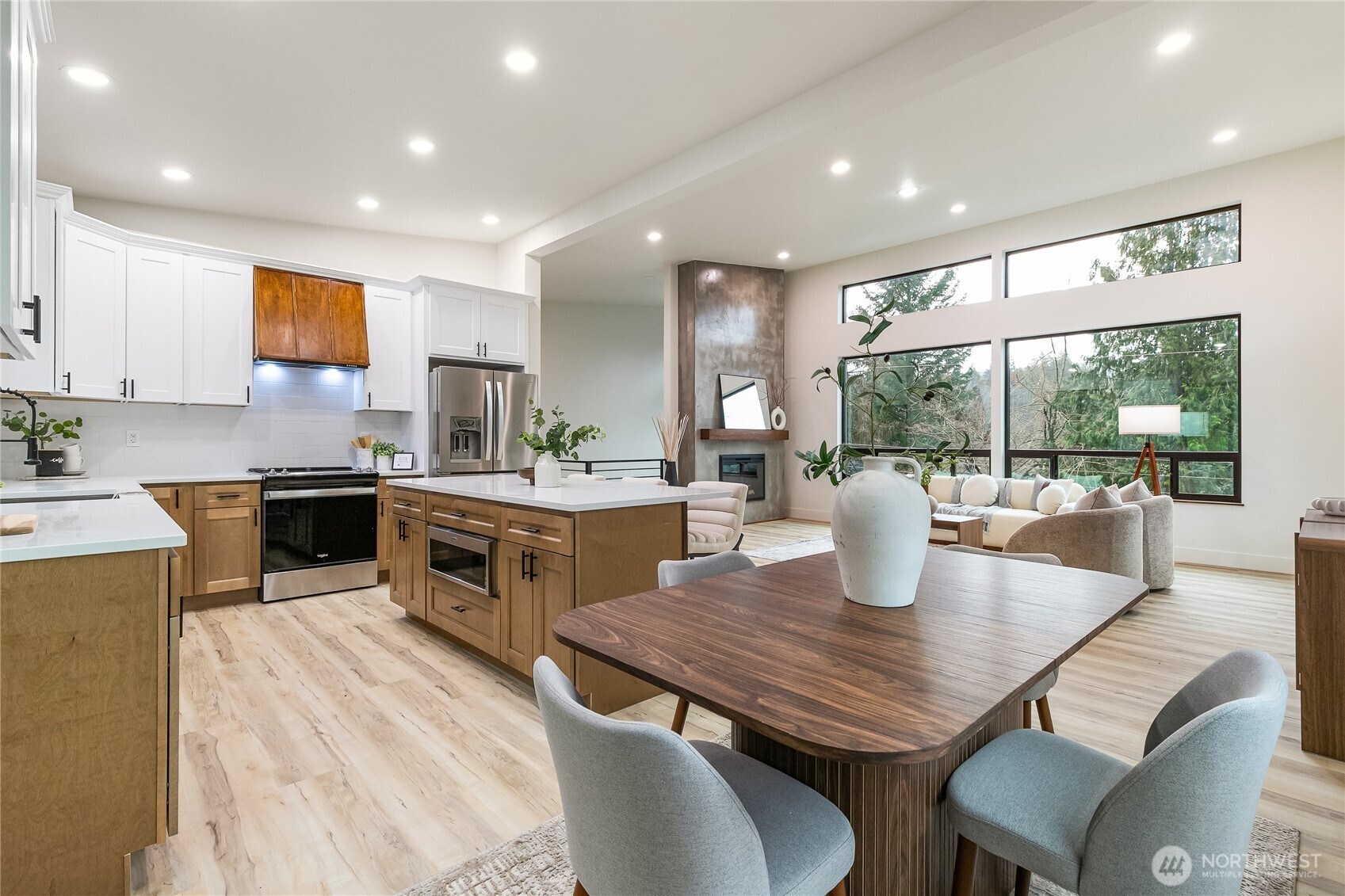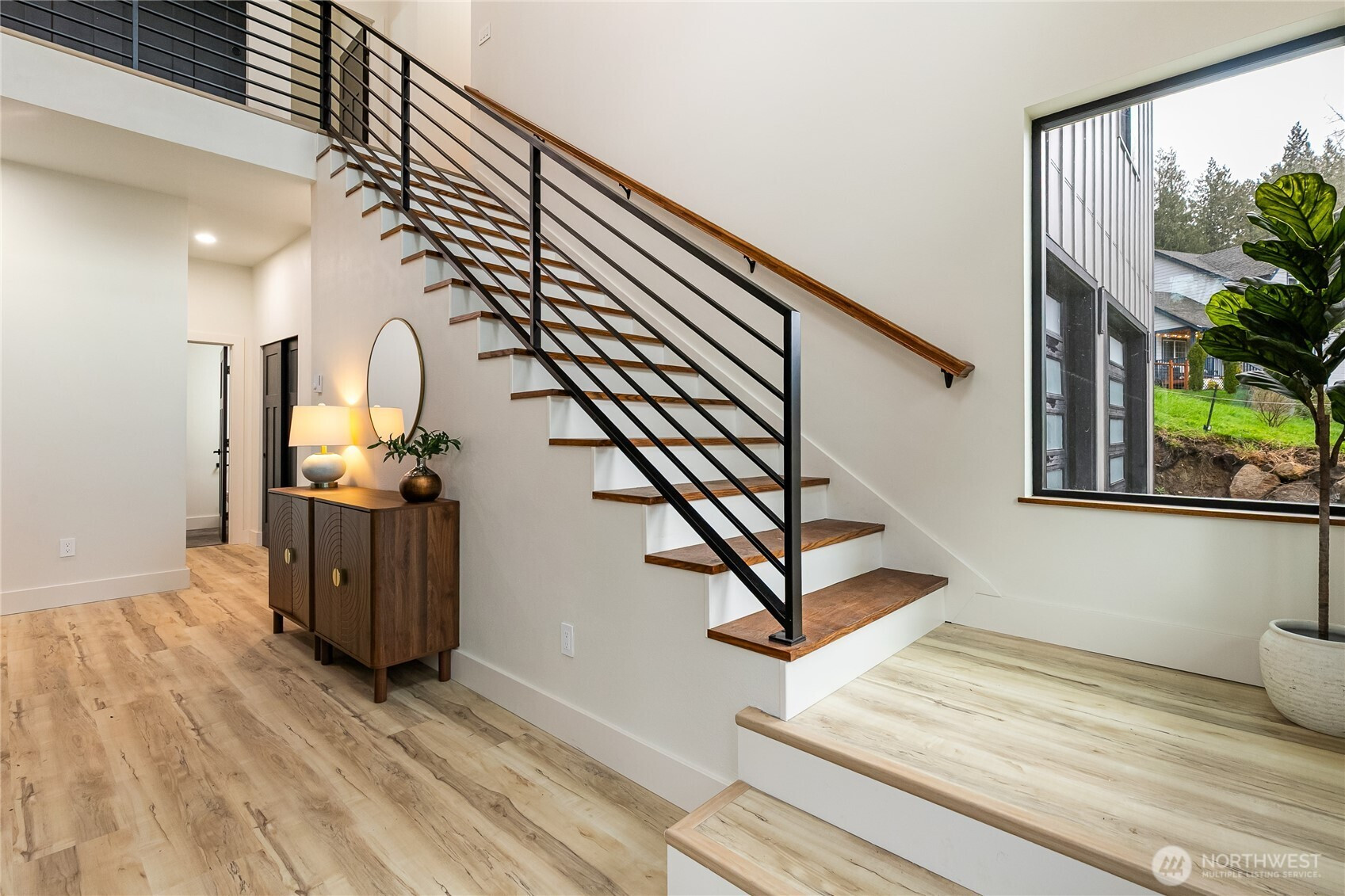 Welcome to this stunning new construction home in the desirable Glenhaven Community. Offering 2,433 square feet of thoughtfully designed living space, this 3-bedroom, 3-bathroom home showcases clean lines, high-end finishes, and an abundance of natural light throughout. Tall ceilings and a bright, open layout enhanced by sleek LED lighting. The spacious living room serves as the heart of the home, featuring an inviting electric fireplace and partial views of Reed Lake—perfect for relaxing or entertaining. The well-appointed kitchen is designed to impress, complete with a large island with seating, ample cabinetry, and a seamless flow into the dining area. Whether hosting gatherings or enjoying a quiet night in, this space offers both style and practicality. The primary suite is a true retreat, featuring two closets and a beautifully designed en-suite bathroom with dual vanities and a walk-in shower. Each additional bedroom is generously sized, providing flexibility for guests, a home office, or hobbies. Comfort is ensured year-round with energy-efficient ductless mini-split systems on each level, providing both heating and air conditioning. Outside, the home’s striking curb appeal is highlighted by a durable metal roof, modern black vinyl windows, and an oversized 700 square foot two-car garage offering plenty of storage and workspace. This home combines contemporary living with a peaceful setting!