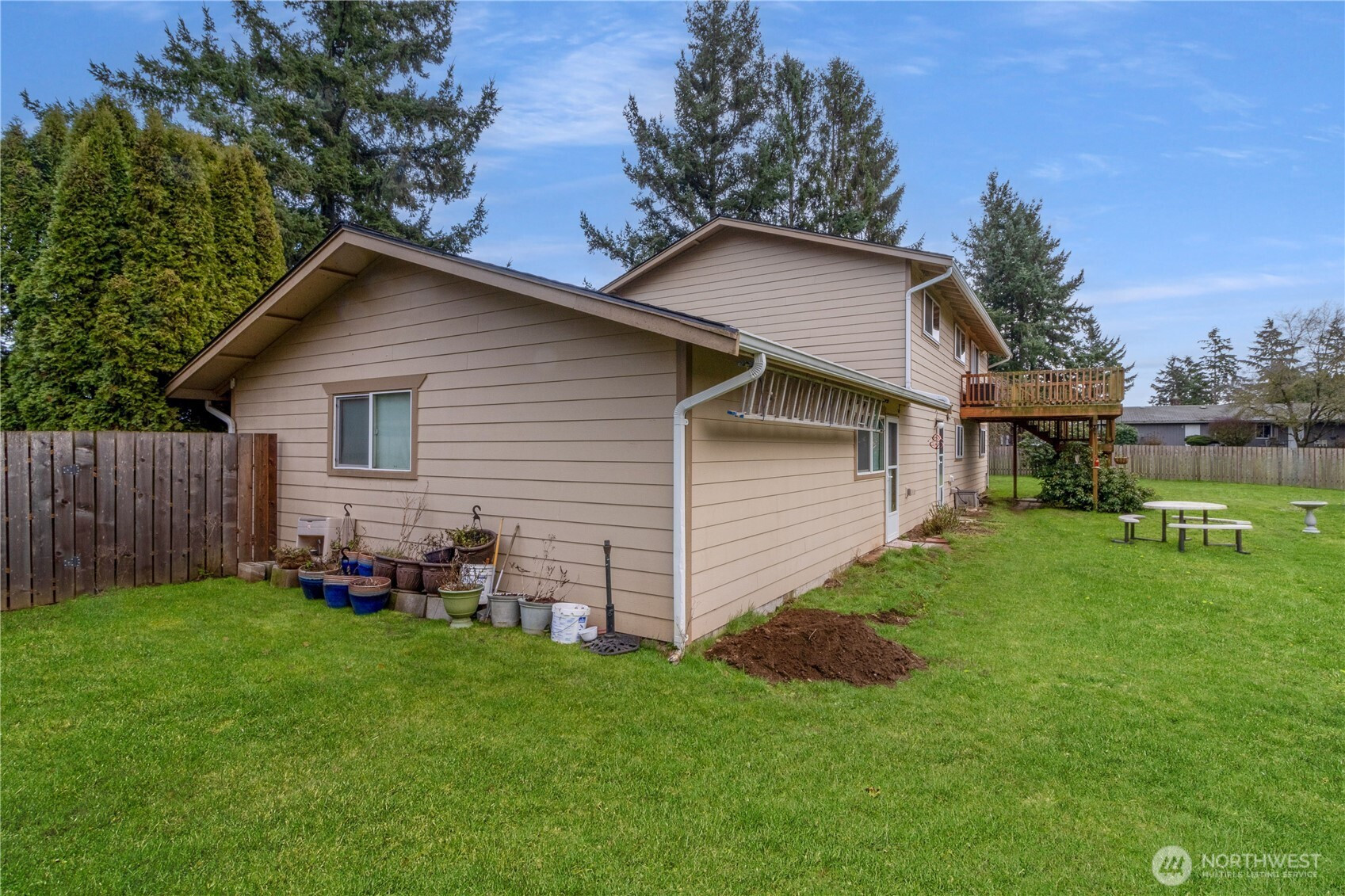 Well-maintained split-level home on a spacious lot in a quiet Lynden neighborhood. This 4-bedroom, 1.75-bath home offers a versatile layout w/ three separate living spaces, providing room to spread out, work from home or create hobby areas. The main level features a bright living room w/ large picture window offering views of Mt. Baker, along w/ a kitchen w/ abundant oak cabinetry, stainless appliances & dining area that opens to the deck overlooking the backyard. Upstairs includes three bedrooms & a full bath. The lower level offers a fourth bedroom, ¾ bath & cozy family room w/ wood stove & brick surround, ideal for relaxing or entertaining. A former third garage bay has been converted into a spacious office or flex room, adding even more usable living space. Outside, enjoy a huge fully fenced backyard w/ mature landscaping, room to garden, play or entertain. The property also includes a 2-car garage & driveway parking. Solid, well cared for & ready for the next owner to update finishes & make it their own in a desirable Lynden location.