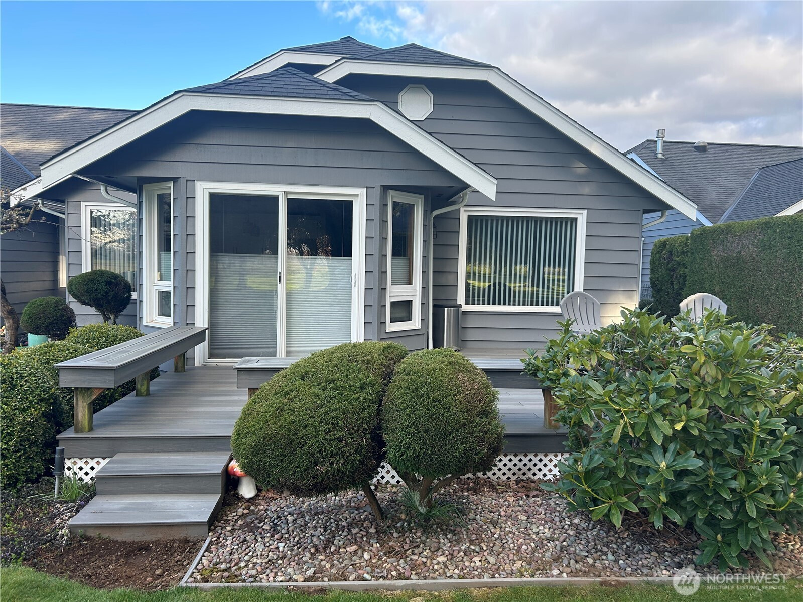 Welcome to this beautifully one level home with 2 bedroom, 2 bath newly remodeled kitchen and living area that look outonto the golf course and manicured fairway and scenic surroundings. Located in a highly desirable Raspberry Ridgecommunity +55 residences for a quiet and easy living convenience, just minutes to shopping, dining and easyaccess to Bellingham. Step outside to a stunning back deck, perfect for relaxing or a BBQ with a fantastic view of Mt. Baker!The HOA covers all exterior and grounds maintenance, make for an easy living.