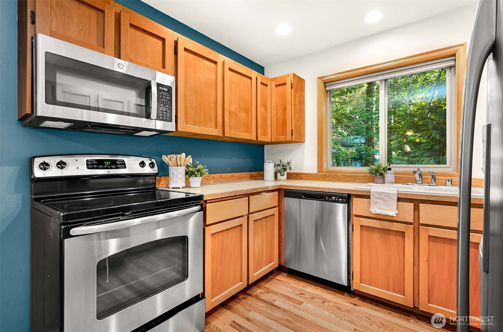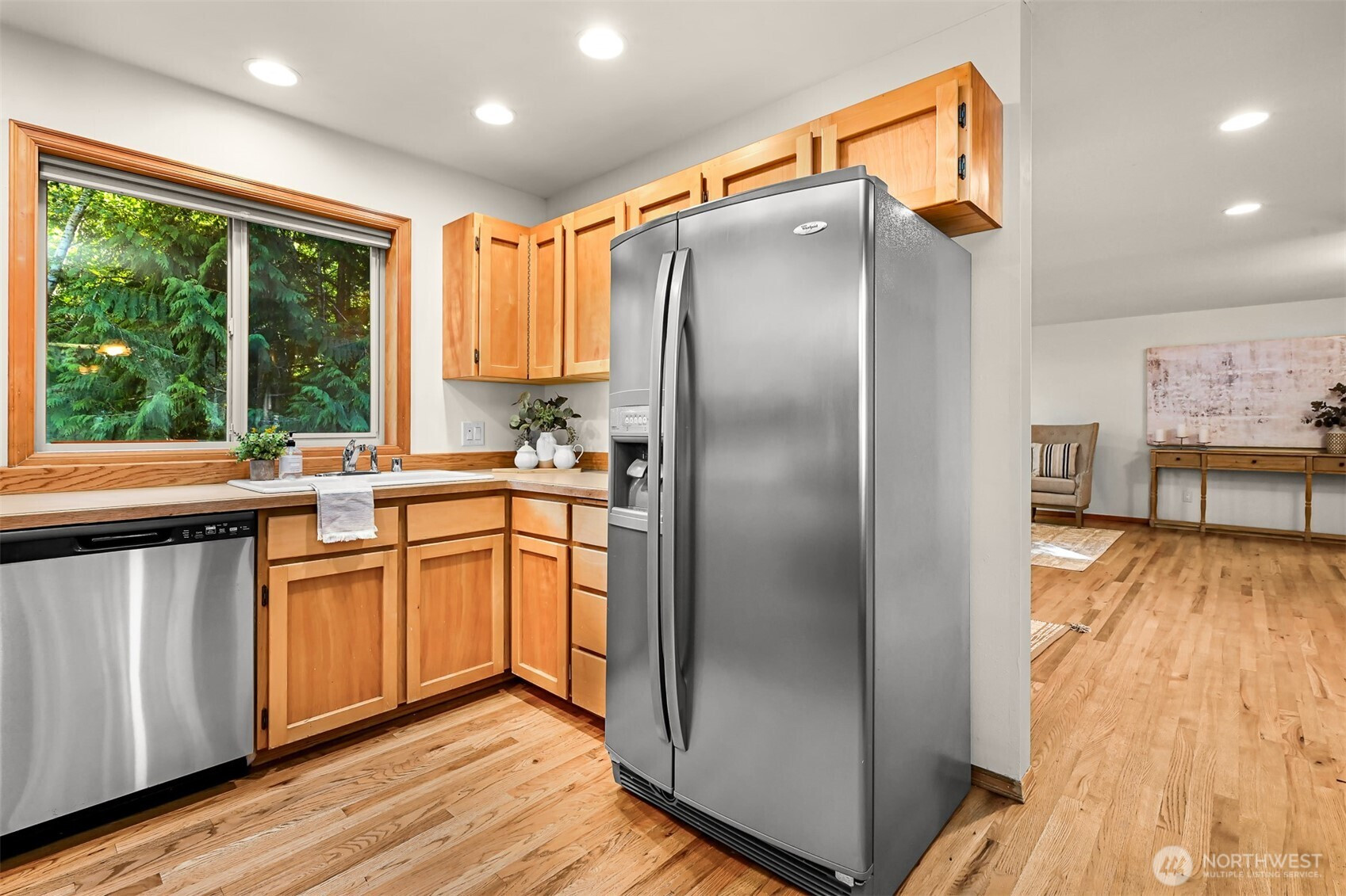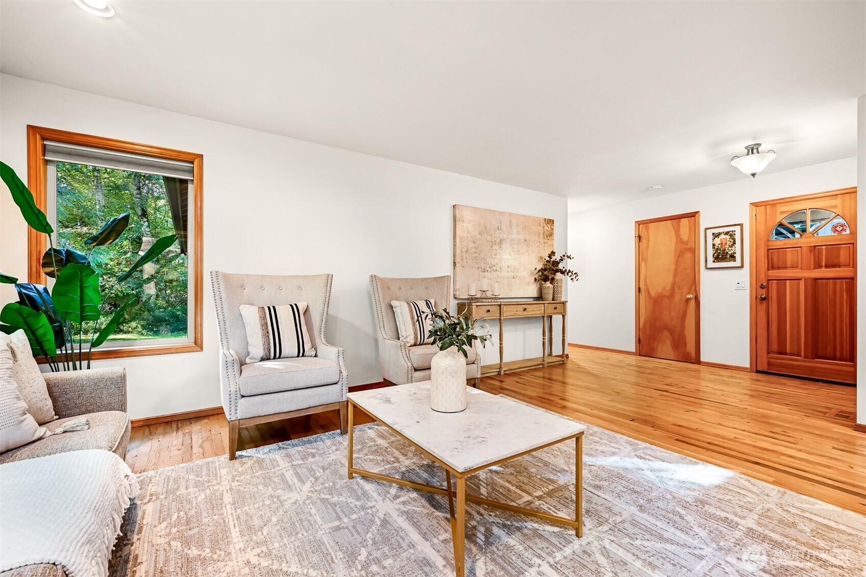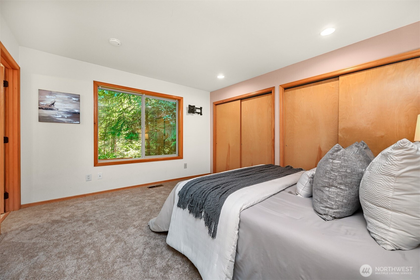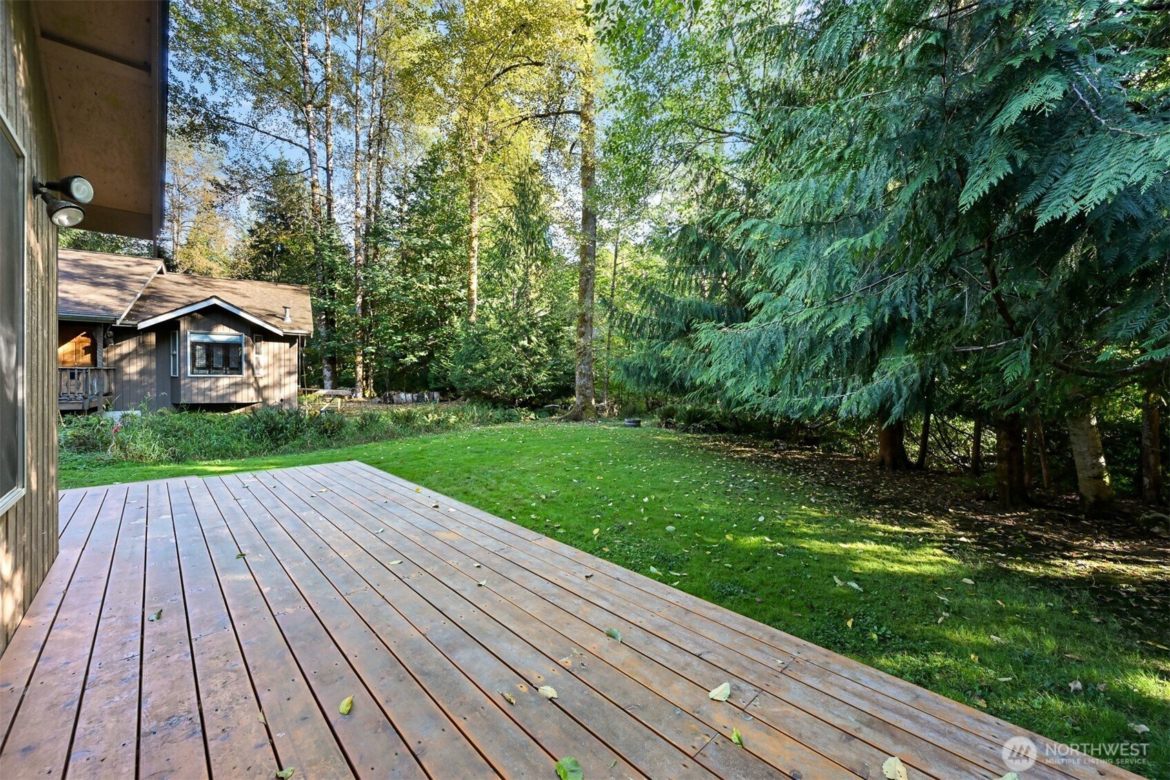 Creekside sanctuary! Tucked along a beautiful creek, this single-level 3BD, 2BA home blends comfort and nature on a sunny, level lot. Inside, hardwood floors flow through bright living spaces, including a large living room with peaceful greenbelt views. You’ll love your kitchen with breakfast nook, primary bedroom with ensuite bath ft. heated floors, and new carpet throughout. Plus the home is wired for a generator (w/available generator) for peace of mind in every season. Step outside to enjoy your deck, explore the creek, or head to the nearby Stimpson Reserve & Lookout Mountain for miles of trails. With access to all Sudden Valley amenities including stunning Lake Whatcom beaches and marina, this home and setting are truly special.