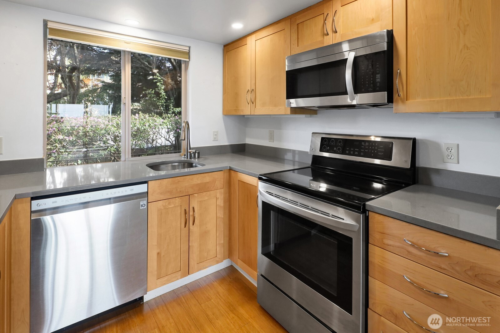 Come home to low-maintenance living overlooking Bellingham Bay! Ground floor unit features partial views of the ocean and islands, along with bamboo floors, newer appliances and newer kitchen countertops. Deck was replaced this summer and the building has a new roof. Unit includes 1 assigned covered parking spot, and a storage unit. Just two blocks away from Bellingham's iconic Taylor Dock and boardwalk, and close to historic Fairhaven!