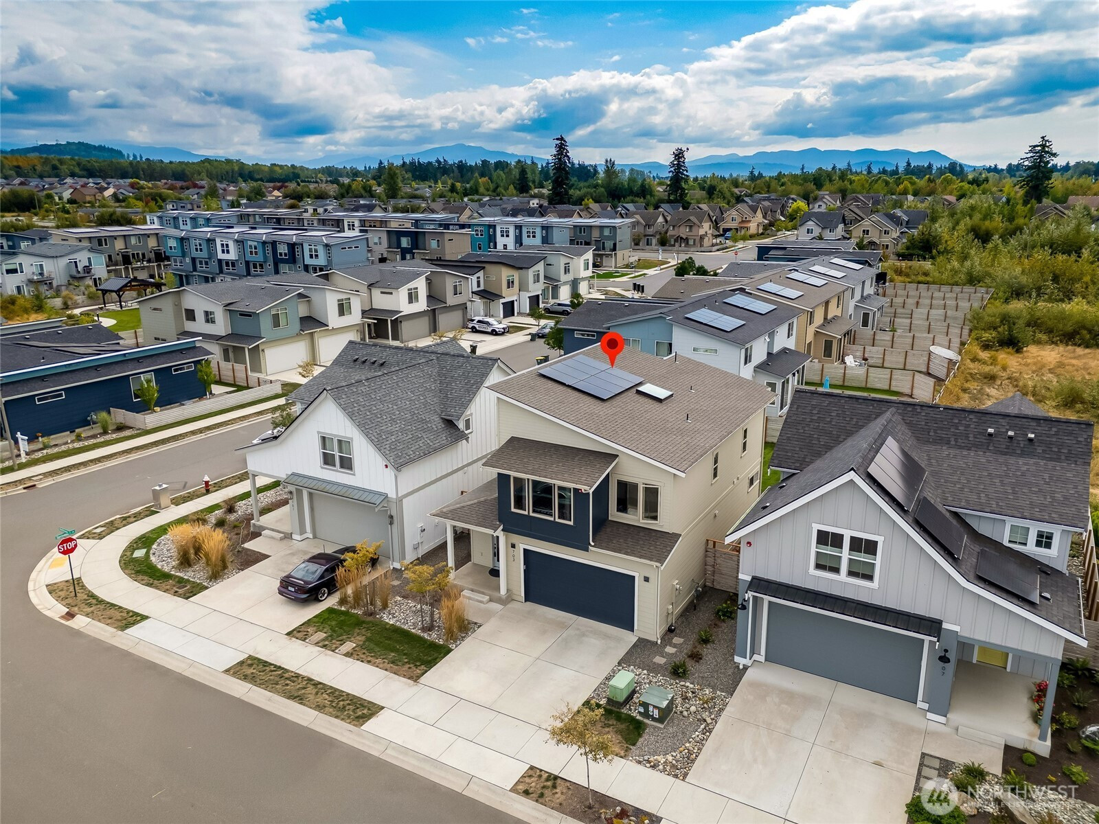 Welcome to the heart of Bellingham! This 4-bedroom, 2.5-bath home combines comfort, efficiency, and convenience in one perfect package. Enjoy year-round comfort with central A/C, a cozy gas fireplace, energy-saving solar panels and EV charger. The open concept living spaces flow seamlessly to a covered patio, ideal for entertaining or relaxing outdoors in any season. Upstairs, you’ll find generously sized bedrooms, including a serene primary suite with a private bath. The community features a park just steps away, and you’ll love the easy access to nearby golf, colleges, medical offices, and the airport. Whether you’re hosting friends, commuting, or soaking in the Pacific Northwest lifestyle, this home puts it all within reach.