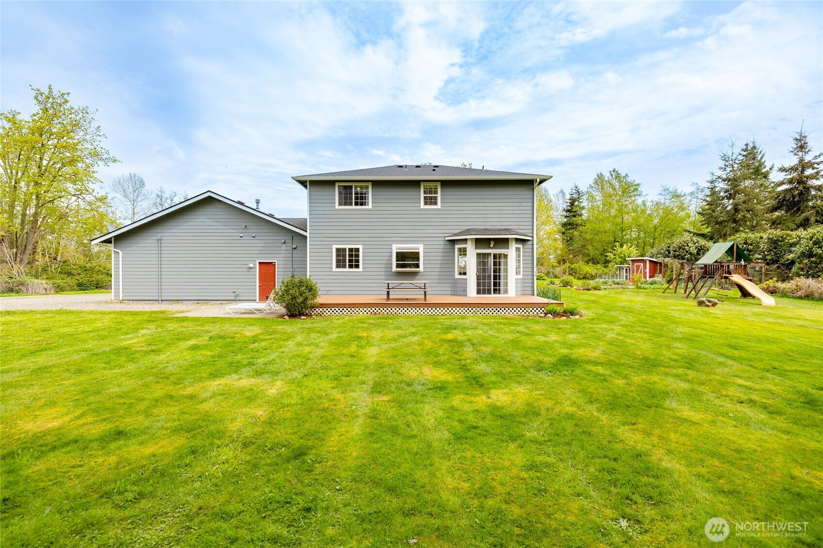 This exceptional property has so much to offer! Tucked down a quiet, private road on nearly 5 acres with Mount Baker views, this fully fenced property with a gated entrance provides the perfect blend of privacy, functionality, and scenic beauty. Ideal for horse enthusiasts or those seeking a mini-farm lifestyle, the equestrian setup features a spacious 7,500 sq ft outdoor arena—perfect for riding, training, or simply enjoying the peaceful surroundings. The property also includes multiple exterior stalls with runs, a tack room, and inside stalls. In addition to the equestrian amenities, a large two-car shop offers excellent space for projects, storage, or equipment. The main home is well-appointed with 3 bedrooms plus office and 3 bathrooms, offering comfortable living with room to spread out. An attached 1-bedroom 1- bathroom mother-in-law suite with its own separate entrance & garage provides flexibility for guests, multi-generational living, or potential rental income.