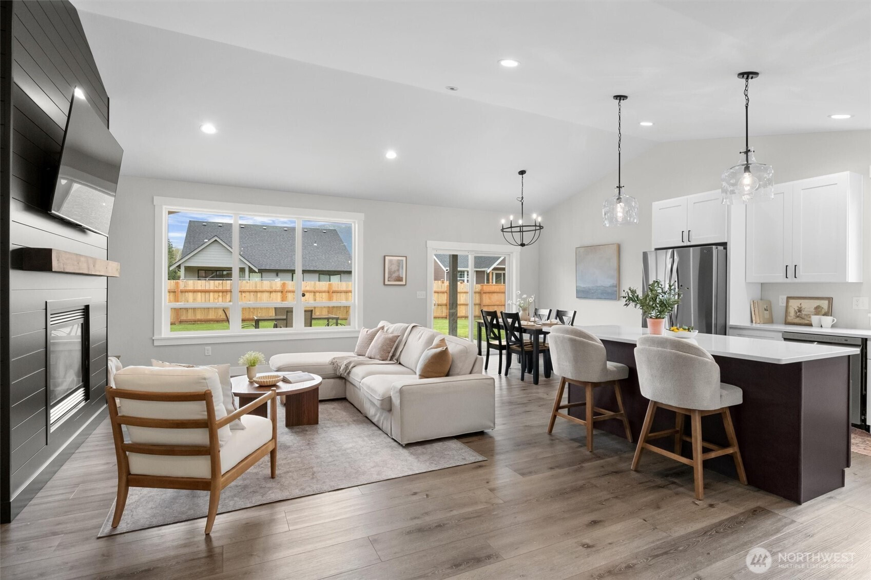 Well-located Nooksack home featuring single-level living with a functional layout and open living and dining areas. Bright interior with abundant natural light, spacious bedrooms, and practical storage throughout. Living area includes a fireplace, adding warmth and comfort. Kitchen offers ample workspace and flows easily into the main living areas for everyday use. Covered patio extends the living space outdoors, ideal for year-round enjoyment, while the yard provides room for a variety of uses including space for boat or RV. Conveniently located near local schools, parks, and community amenities.