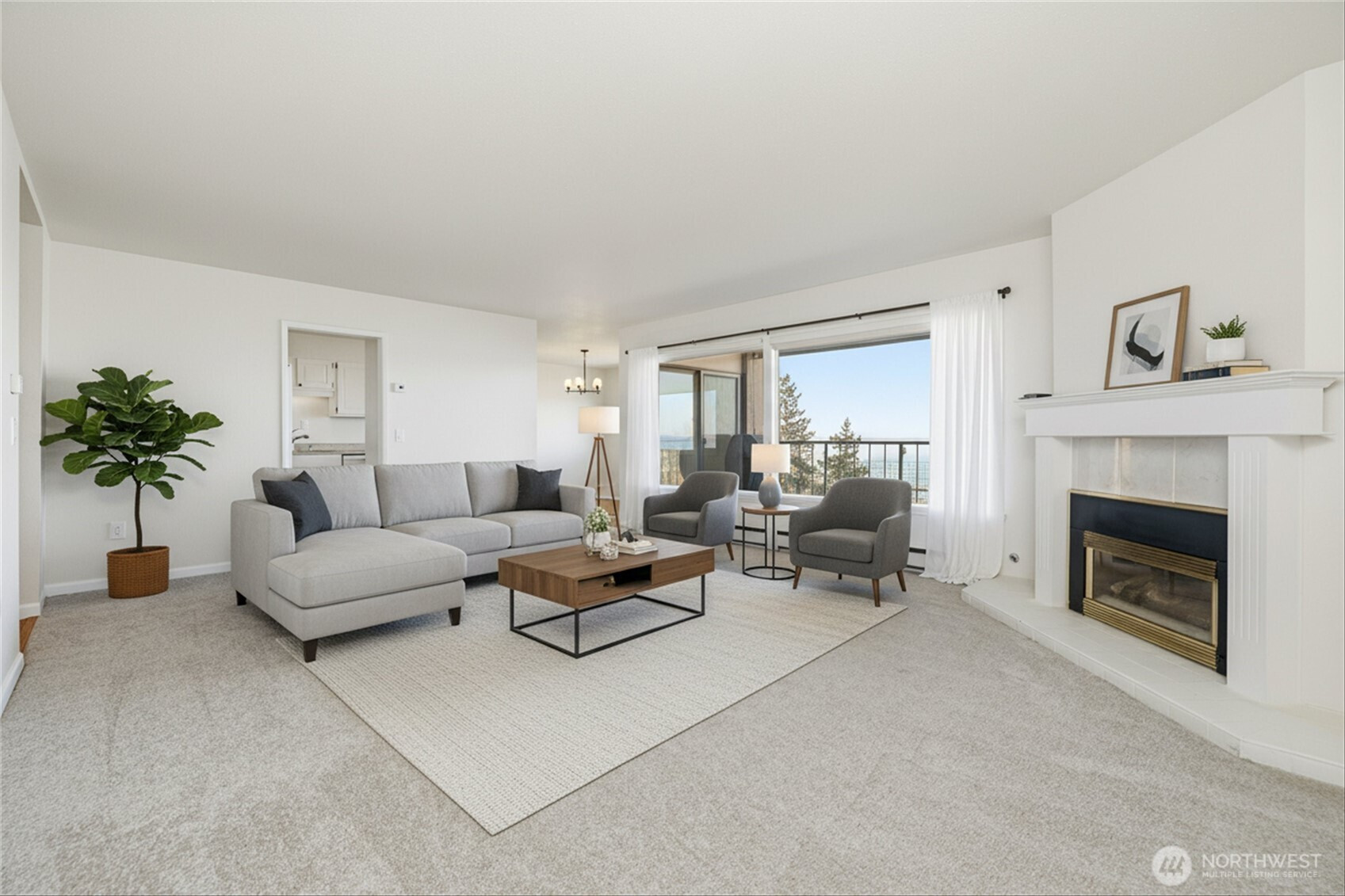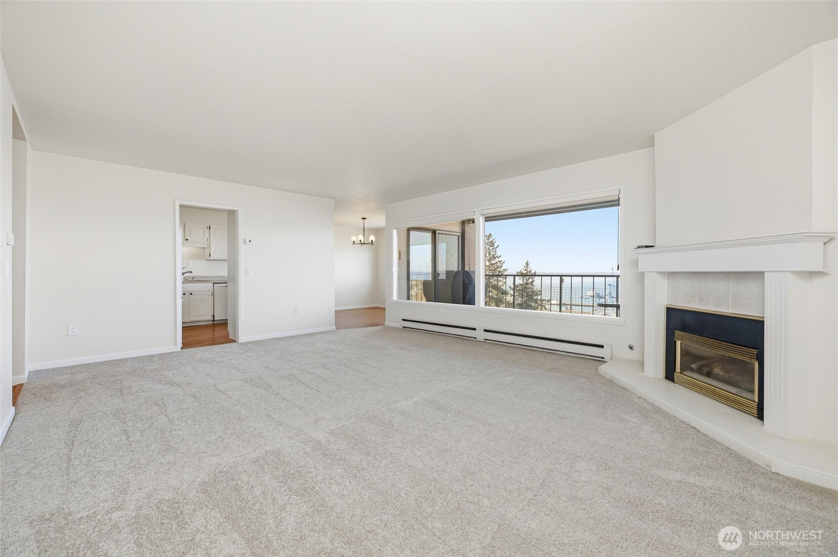 Prime top-floor living w/ glorious bay, island, mountain, harbor & city views from this 2-bedroom, 1.75-bath, 1,432 sqft Garden Towers condo. Located in a secure 55+ community with 15 units, it features an elevator from covered parking to your front door. Tasteful updates throughout including newer appliances, and new interior paint, carpet, electrical fixtures and more! Living room and dining room have large windows that showcase the expansive views. The spacious living room includes a corner gas fireplace, and the primary bedroom has an ensuite bath. The covered deck (with motorized sun shade and storage closet) is perfect for relaxing and entertaining while enjoying spectacular sunsets. Personal storage unit assigned, 2 assigned parking spaces and a large, shared community workshop. Close to WWU, Sehome Arboretum, trails, public transportation and downtown Bellingham.