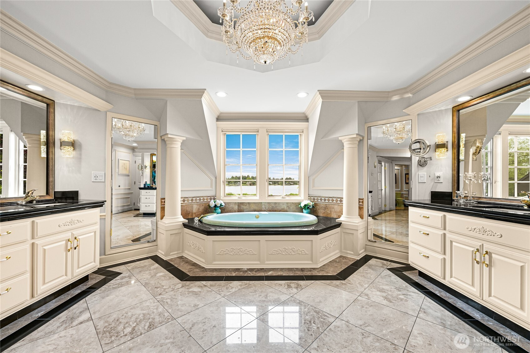 Rarely does the world of opulence so harmoniously blend with comfort of everyday living, offering a space that is both luxuriously appealing yet gives you that true feeling of being home. Superb craftsmanship & incredible spaces for gathering are the hallmarks of this 7,000 square foot French Country estate on over 10 acres at the end of a private lane. Enjoy a spectacular primary bedroom with a fireplace and two walk in closets, all bedrooms with en suite baths, and a one bedroom mother-in-law suite with its own private entrance. Wake up to epic sunrises on Mt.Baker while sipping your coffee and relax in the evening with a glass of wine watching the sun set over picturesque Wiser Lake. A legacy property, truly in a category of its own.