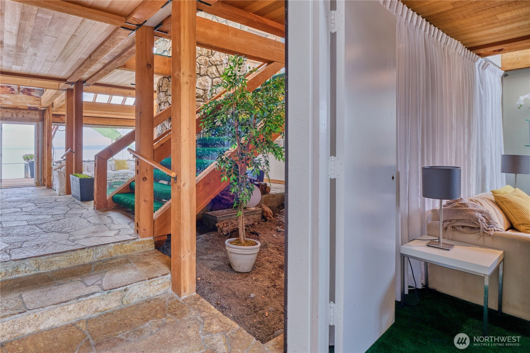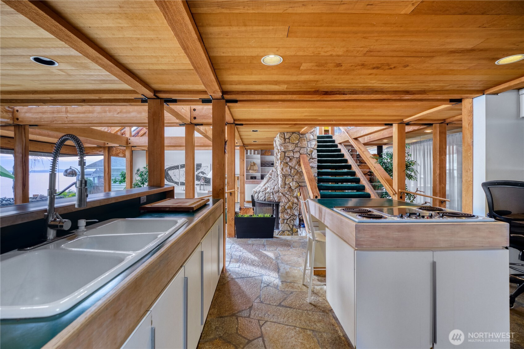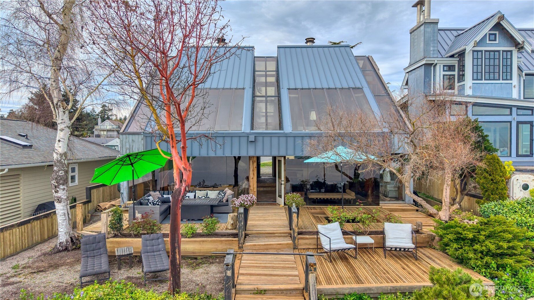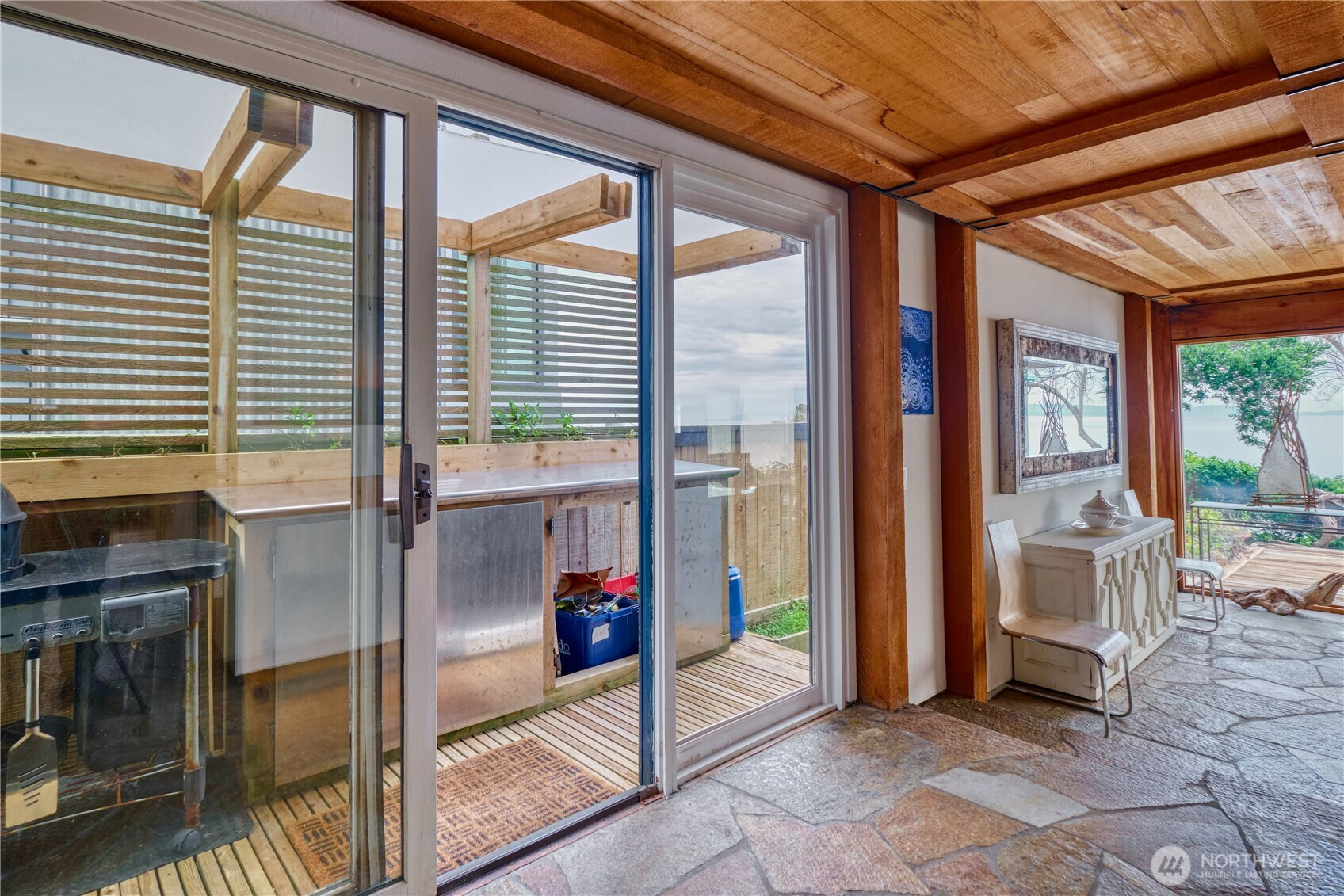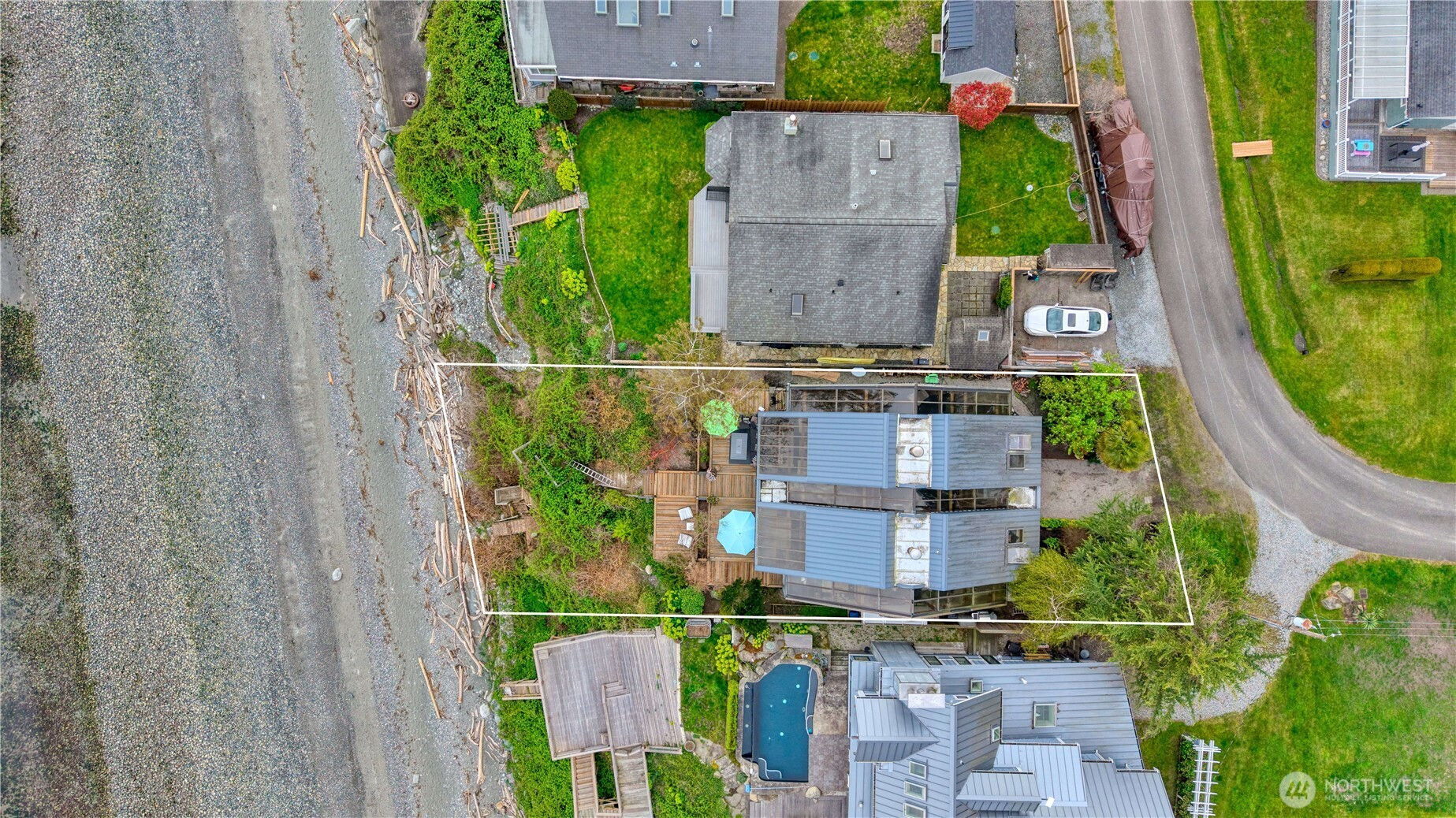 This is a stunning waterfront living and vacationing opportunity on the South Beach side in the unique seaside community of Point Roberts, in a wildlife sanctuary. Enjoy daily views of eagles and heron. Private access to the swimming beach with clean, hard, low tide sand flats. Family owned for over 6 decades with approximately 2730 square feet of thoughtfully designed living space designed by architect Mark Ankenman in 1982. The beach house showcases classic NW character with soaring vaulted ceilings and exposed striking cedar posts and beams. The 2 story high sunken stone fireplace is the heart of the space. There are also 2 new heat pumps for efficient year round comfort. This custom built home offers 3 bedrooms and 3 full bathrooms with a den/flex room on the main floor. The open living space is exceptionally bright with endless skylights and ocean facing wall to wall, floor to ceiling windows. The main floor provides full views of the ocean and the Gulf and San Juan Islands. Expansive cedar decks brings the living space outdoors and is ideal for entertaining, with front row seats to stunning views of nature. This home offers a rare balance of rustic beach house and elegance. This is an exceptional opportunity to own a legacy property just 45 minutes to Vancouver and one hour to Bellingham. The 5 square mile peninsula is very safe. We have a golf course, marina, airstrip, cafes, amenities, parks, medical clinic and a spectacular fire department.