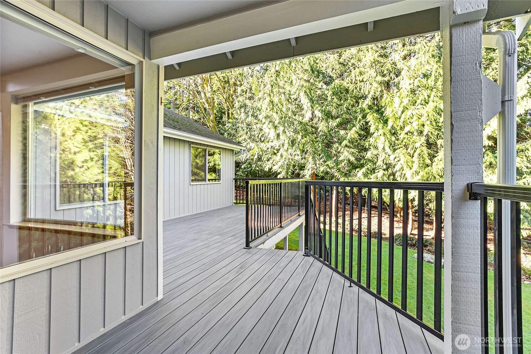Discover the perfect blend of modern comfort and tranquil living in this highly desirable, single-level Gate 1 retreat, featuring the rare convenience of a flat driveway for easy year-round access. This meticulously maintained home offers three bedrooms and two baths, including a spacious master suite with a walk-in closet, and two distinct living areas complemented by both a charming breakfast nook and a separate dining area. Oversized windows flood the space with natural light and frame serene wooded views, while recent high-value upgrades provide total peace of mind, including a new furnace, new heat pump, and new hot water tank, along with newer flooring and a kitchen featuring a newer gas stove and convection oven. Backing directly to peaceful green space and located just a short stroll from North Point beach, the property offers an outdoor oasis secured by a Generac generator with a transferable warranty and new Trex deck. Residents also enjoy the unparalleled amenities of the Sudden Valley community, including an 18-hole golf course, marina, miles of hiking trails, swimming pools, and a fitness center. Don’t miss the massive standing crawl space with endless possibilities for a workshop or storage, making this a rare find that balances effortless accessibility with a stunning natural setting.