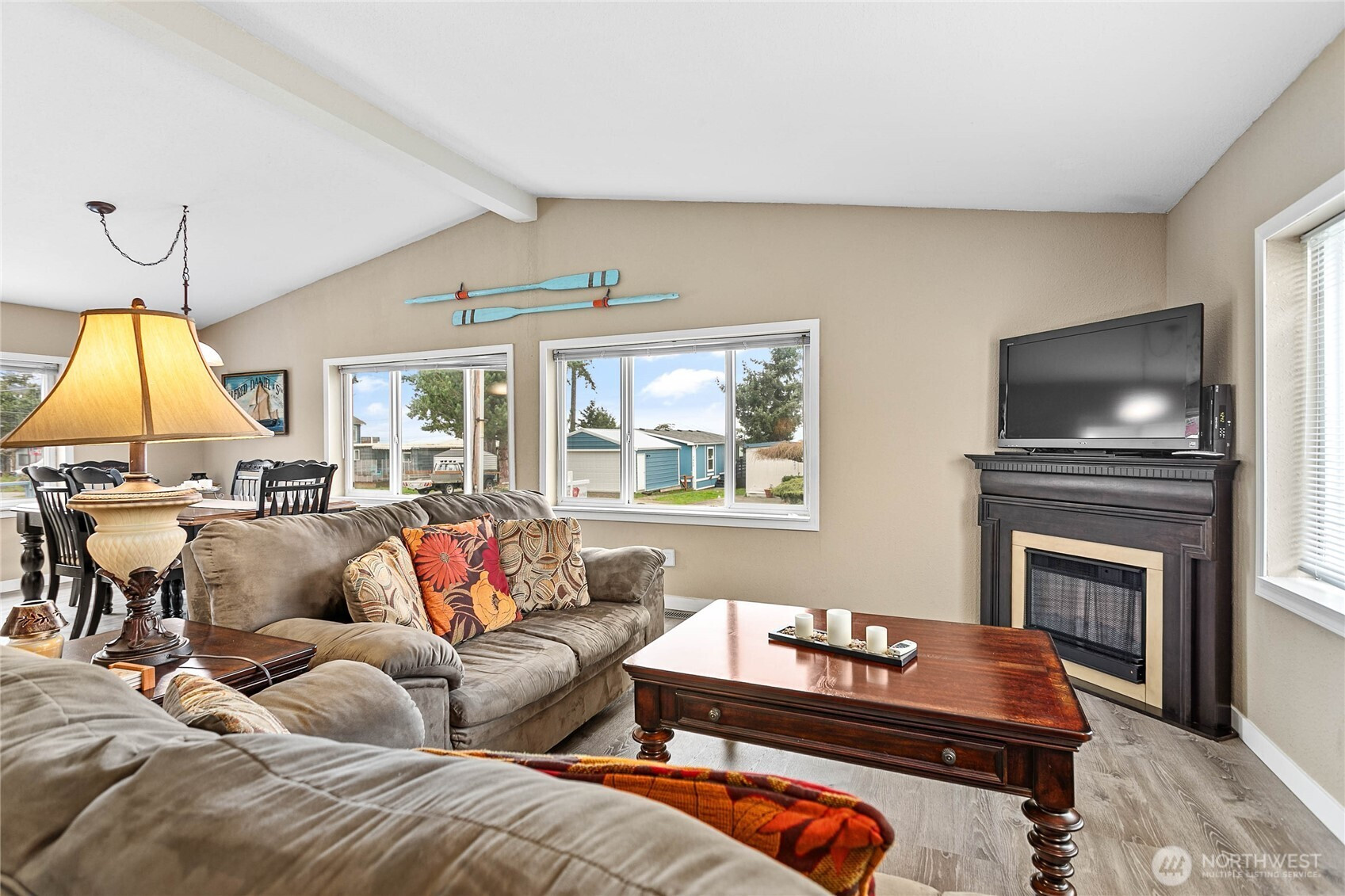 Immaculate and move-in ready, this beautifully furnished and updated 2-bed, 2-bath home is ideally located across from a private easement to Jackson Beach and its pristine shoreline, scenic waterfront walks, and breathtaking sunsets. This serene setting provides a true coastal lifestyle just steps from the sand. The thoughtfully designed open-concept layout creates a spacious and inviting feel, seamlessly connecting the living, dining, and kitchen areas for comfortable everyday living and effortless entertaining. The main living space is bright and anchored by a cozy fireplace, creating a warm focal point for relaxing. The kitchen flows naturally into the living area and features generous counter space with bar-style seating — perfect for casual meals, morning coffee, or gathering while preparing dinner. The open design encourages connection while maintaining a welcoming atmosphere. Updates include a new roof and new flooring throughout. Window blinds provide privacy while preserving the home’s bright, airy ambiance. Step outside to an expansive open patio designed for true coastal living — ideal for summer barbecues, sunset gatherings, or unwinding in the fresh bay breeze. With undeveloped land behind the home, you’ll enjoy lasting privacy and peaceful surroundings. A secure storage shed adds extra storage and convenience. With Bay views this clean, open home offers a rare opportunity to embrace serene coastal living with beach access just steps from your door.