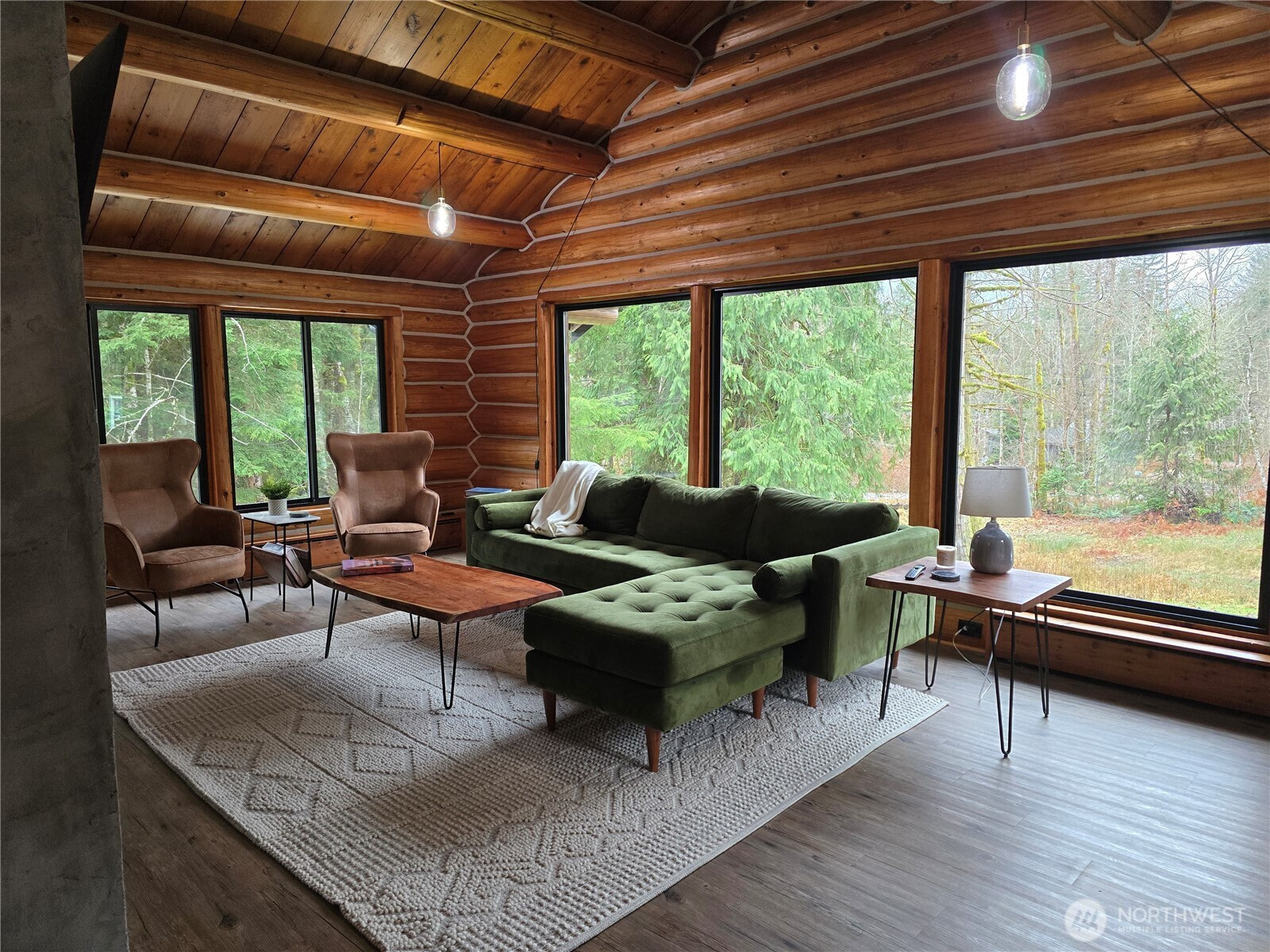 Escape to your own Mt. Baker retreat in sought-after Glacier Springs. This meticulously restored log home blends timeless Northwest architecture with modern upgrades, creating a turnkey second home designed for comfort, entertaining, & effortless lock-and-leave ownership. Cedar logs sourced from Church Mountain were professionally cleaned, double sanded, re-chinked, & sealed with premium stain to preserve their natural integrity. Major 2022–2023 improvements include a new metal roof, new windows, updated electrical & plumbing, new drywall, new gas fireplace, new 120-gallon water heater, & a fully serviced boiler—rare peace of mind for a mountain property. Vaulted ceilings & expansive picture windows frame the surrounding forest, while a dramatic floor-to-ceiling fireplace anchors the great room. The gourmet kitchen features Bosch appliances, gas cooking, built-in microwave drawer, breakfast nook, & bar seating ideal for gathering after a day on the slopes. Two private primary suites offer flexibility, including a lower-level retreat with its own entrance, mini fridge, microwave, & coffee bar. The expansive lower level also includes a large rec room & plumbing for a future kitchenette/bar—ideal for guest quarters, multigenerational living, or entertaining. Pre-wired for a generator & hot tub, with upgraded insulation throughout. You'll love the deck & spacious patio. Just minutes to trails, the river, & Mt Baker Ski Area—this is your private basecamp for year-round adventure.