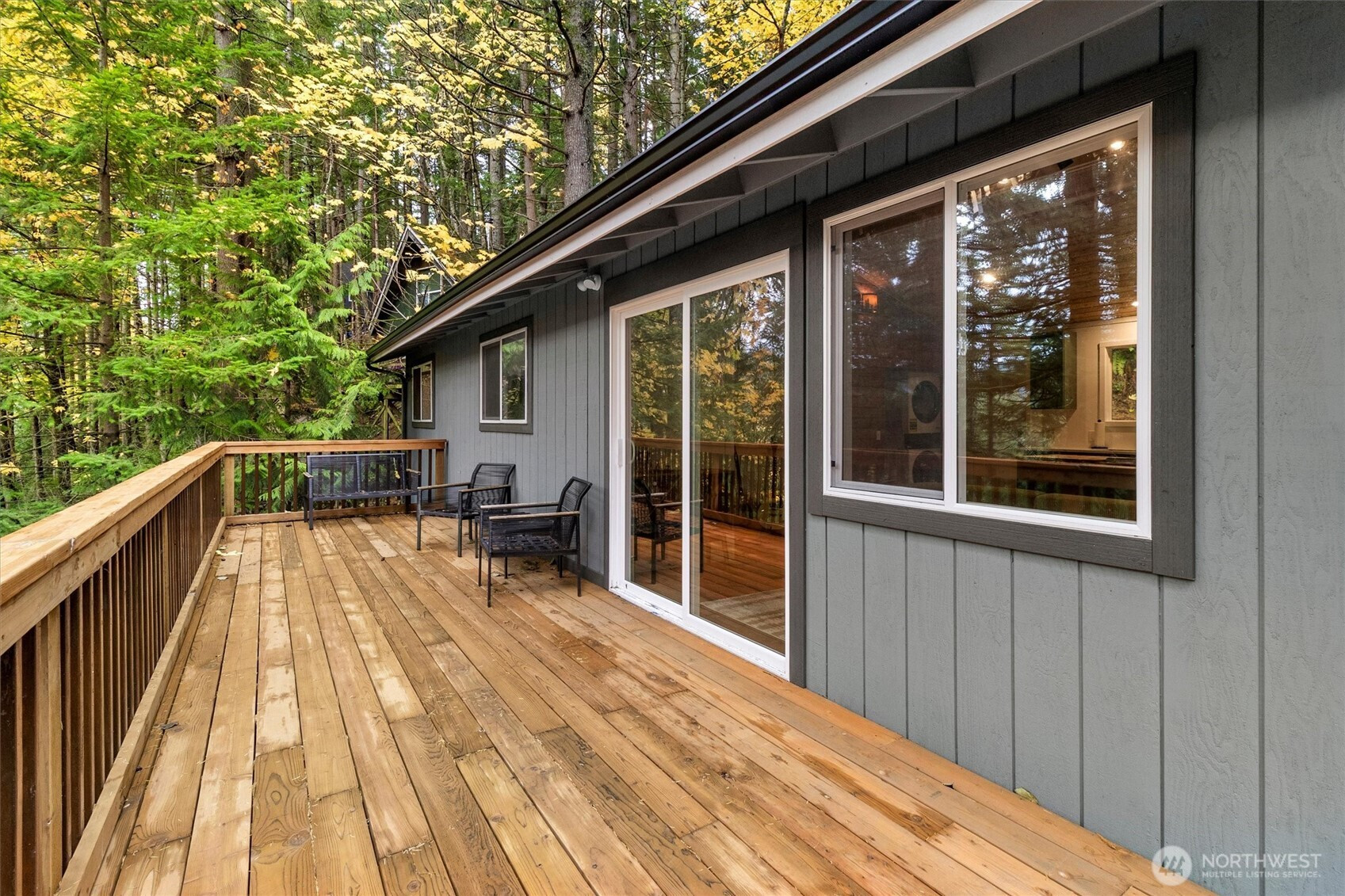 Start the new year in a remodeled down to the studs 3-bedroom home with a cozy cabin feel & modern finishes! Stunning cedar tongue & groove ceilings, picturesque windows framing the forest & a new wood stove create a warm, inviting living space. Stylish new kitchen features a butcher-block kitchen island, quartz countertops, brand-new quality cabinetry & appliances. Step out onto the expansive brand-new deck for gatherings or peaceful evenings stargazing among the trees. Easy one-level living, a low-maintenance yard, & additional storage below the home provide room for gear or tools. A quiet retreat tucked away in nature, located in the Sudden Valley Community with amenities including lake access, pool, parks, dog park, gym & more!