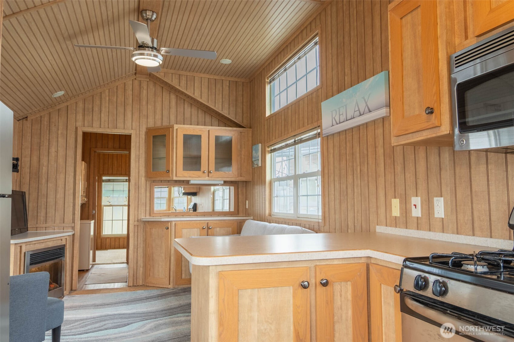 Don’t miss this perfect vacation getaway in the gated Birch Bay Leisure Park! Just a 3 minute walk to the Brier Center clubhouse and pool, or a 10 minute walk to the beach! Leave your car at home, and drive your golf cart from the waterslides to Birch Bay State Park and even out to dinner in this golf cart friendly community. This 1 bed, ¾ bath home has an open views of the park and green space, with vaulted ceiling and lots of natural light making this home feel larger than its 398sqft. Need more space? A finished bunkhouse with power is perfect for a secondary sleeping area, game room, or storage. The covered porch and patio offer all weather hangout spaces on this fully fenced and paved lot with low maintenance landscaping, and parking for up to 4 vehicles. Space rent of $1,623 due in Dec. and June includes water, sewer, garbage, and all park amenities + metered power usage. 180-day use per year, park features include: 24-hr security, pool, tennis courts, exercise room, sauna, game room, and more!