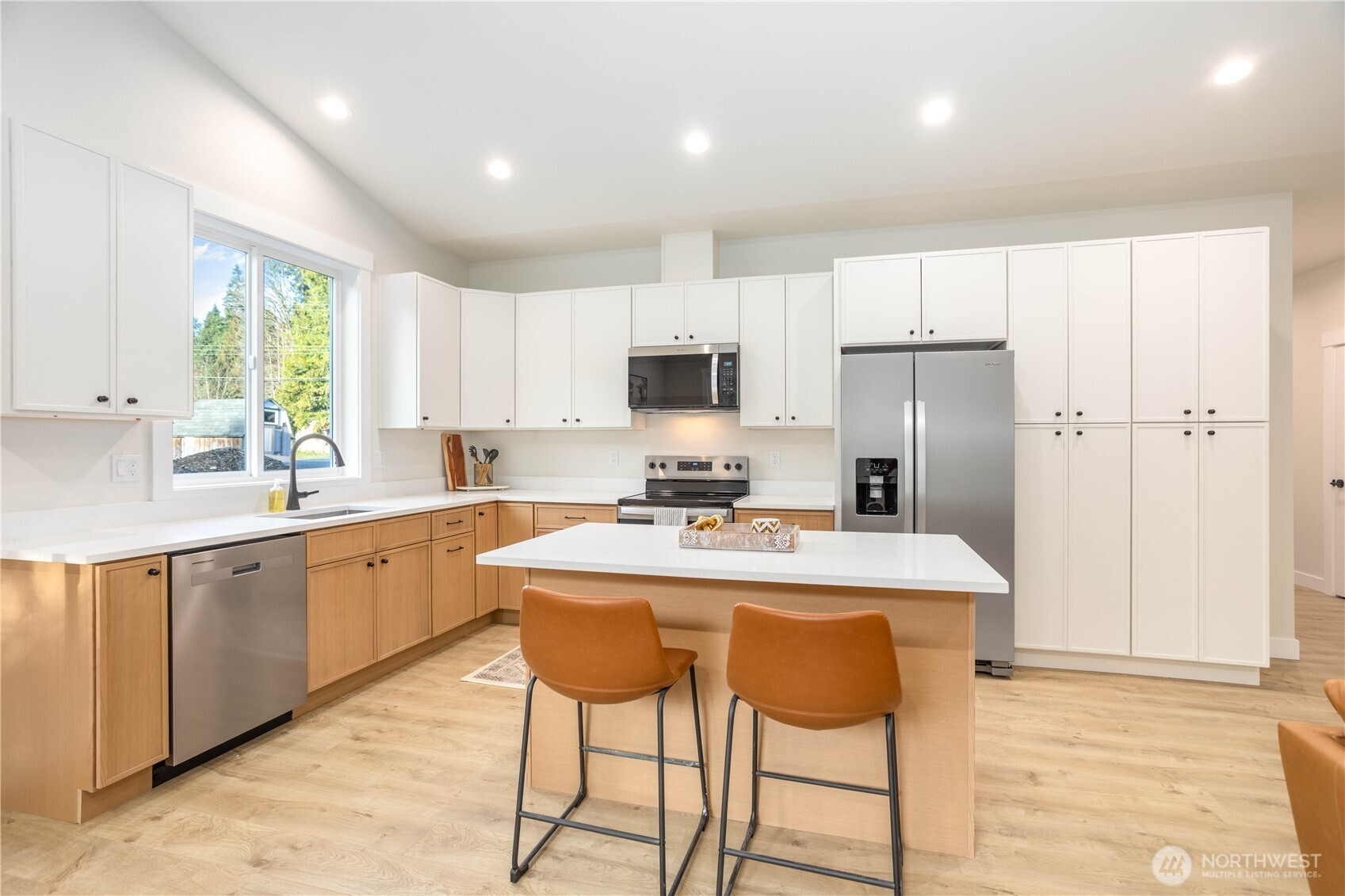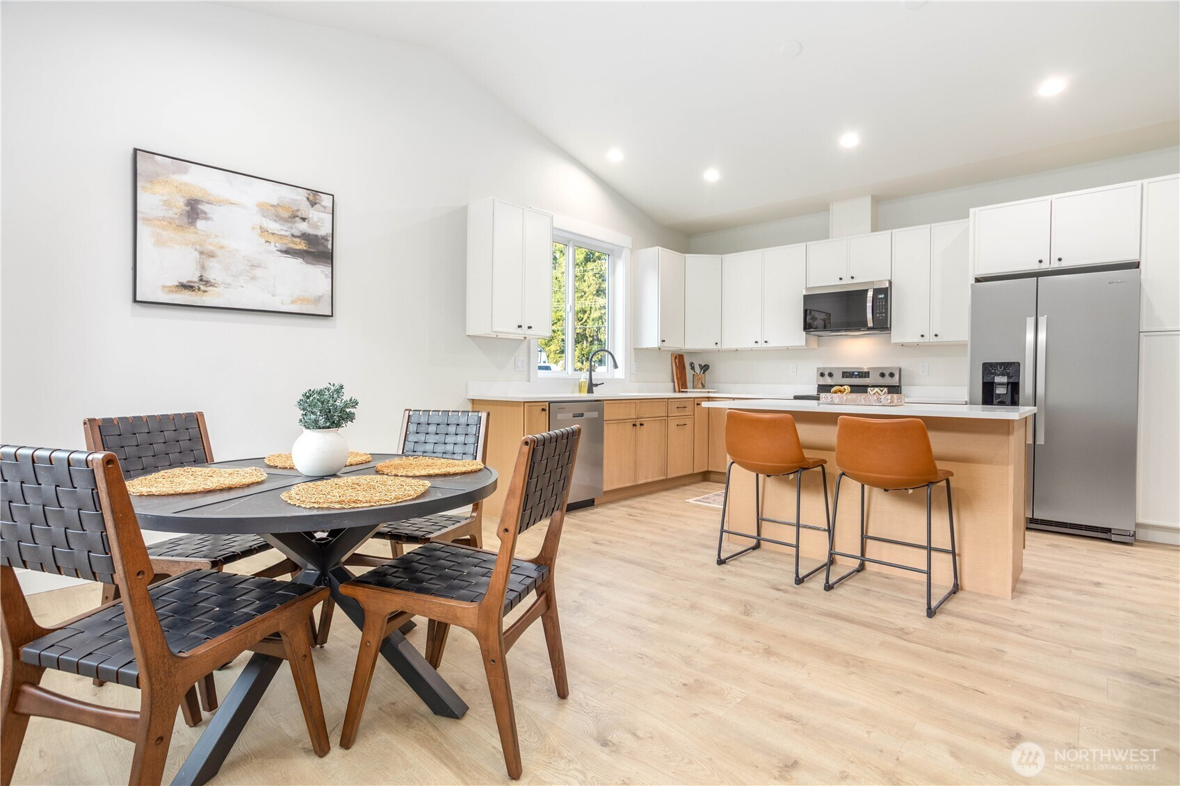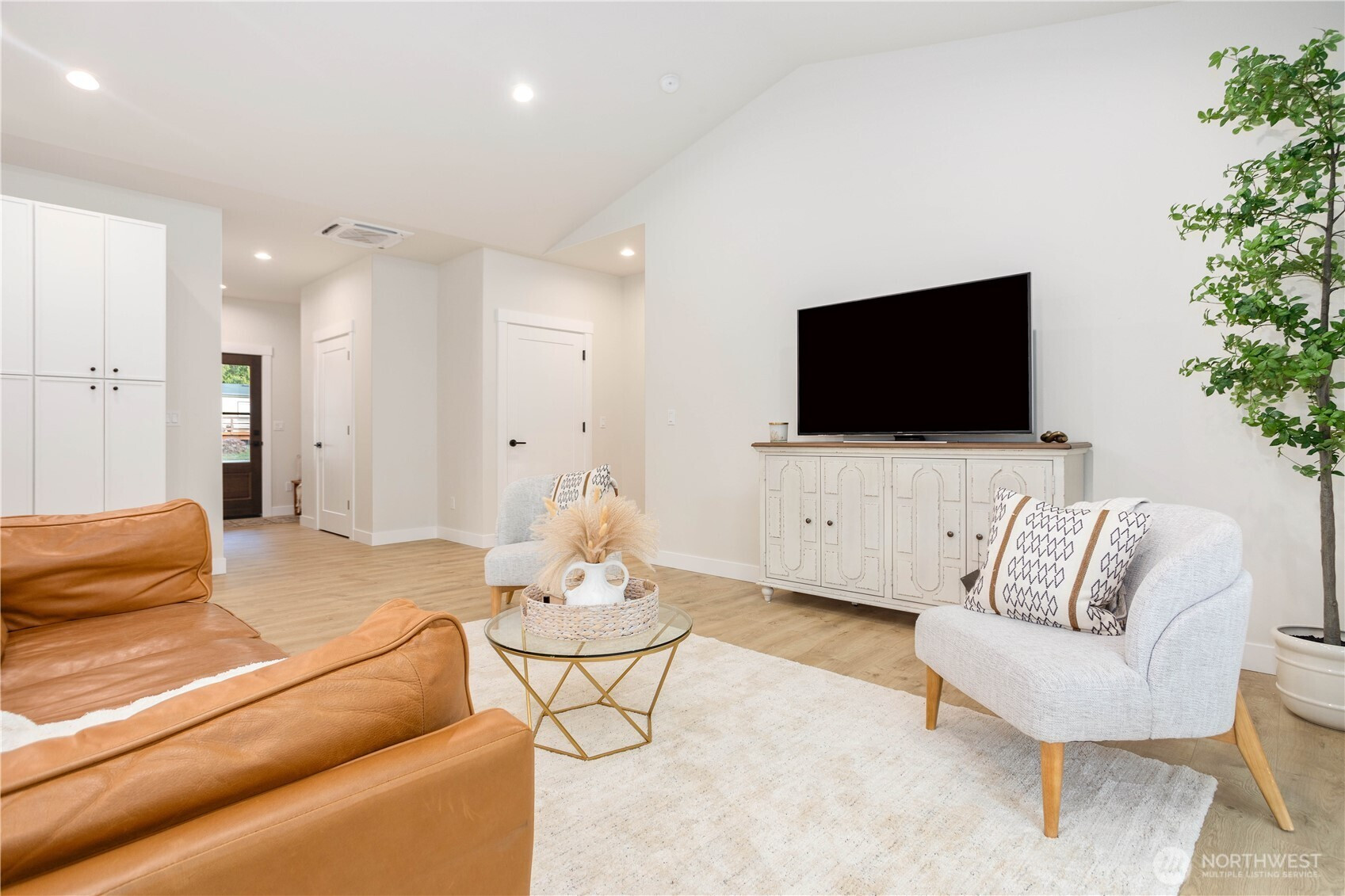 Some homes just make daily life easier — this is one of them. Designed for effortless one-level living, this thoughtfully crafted home features an open layout with vaulted ceilings that create a bright, expansive feel. The kitchen stands out with custom cabinetry, quartz countertops, stainless steel appliances, and durable flooring that blends style with everyday function.The spacious primary suite offers comfort that isn't crammed, while two additional bedrooms provide flexibility for guests, work-from-home space, or hobbies. Step outside to the back patio and enjoy a low-maintenance outdoor area ready for relaxing or entertaining. Thanks to upgraded 200+ sq ft of attic storage, the insulated garage can truly function as a full two-car garage, workspace, etc!