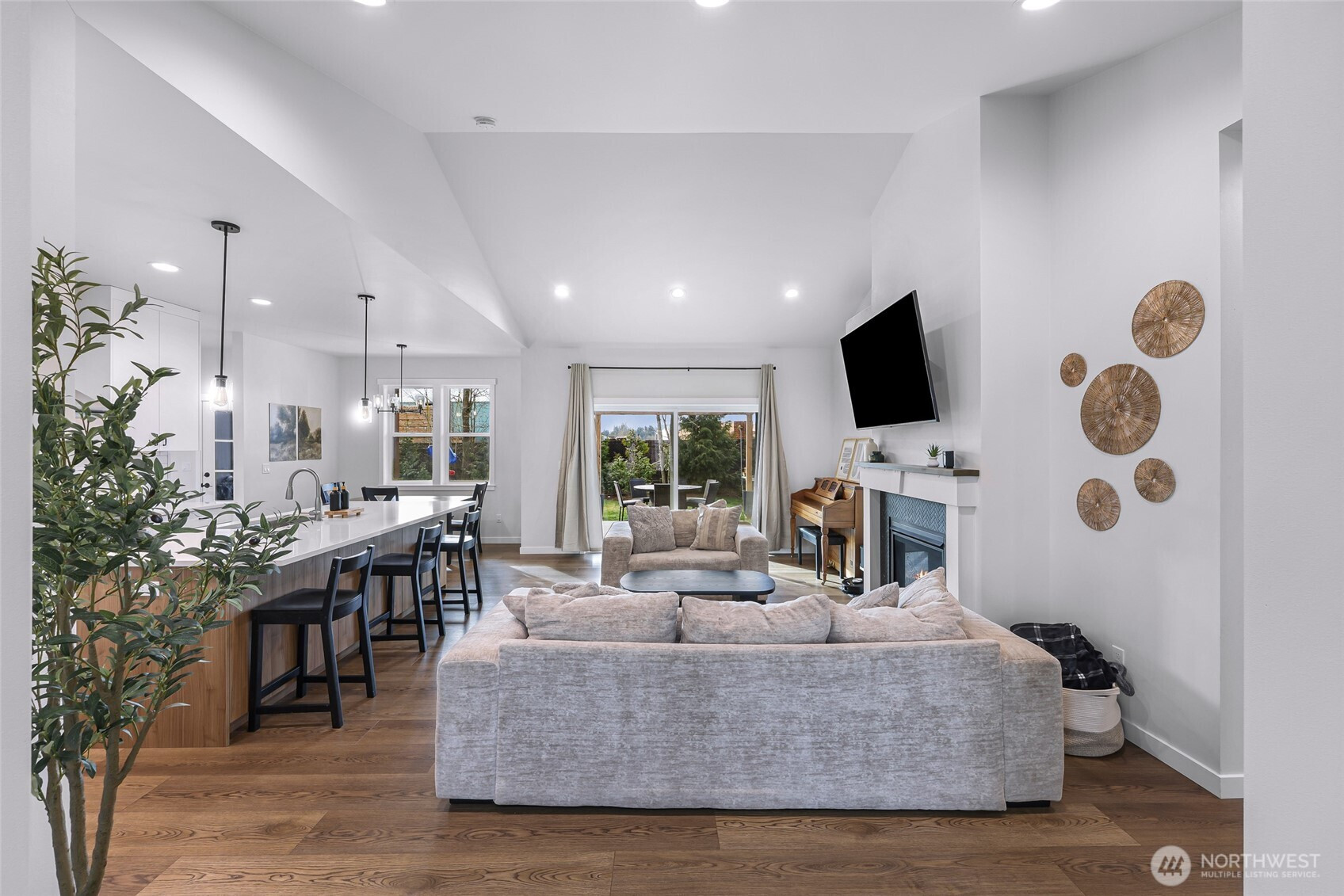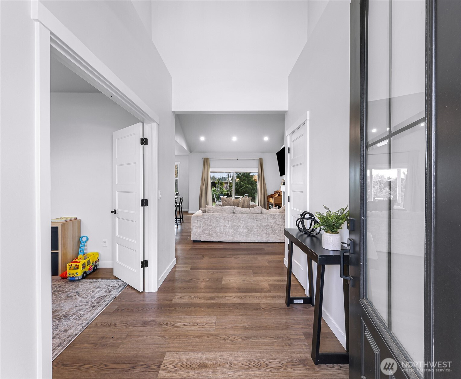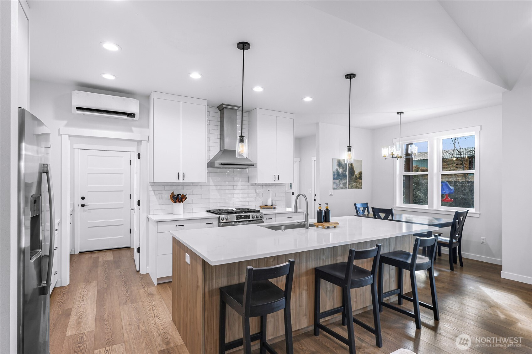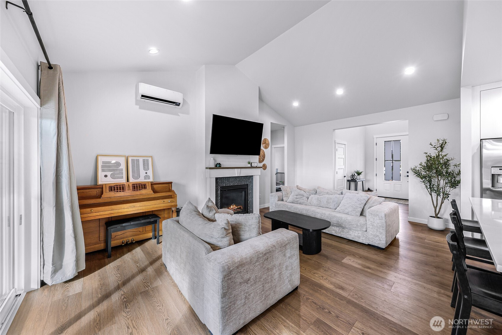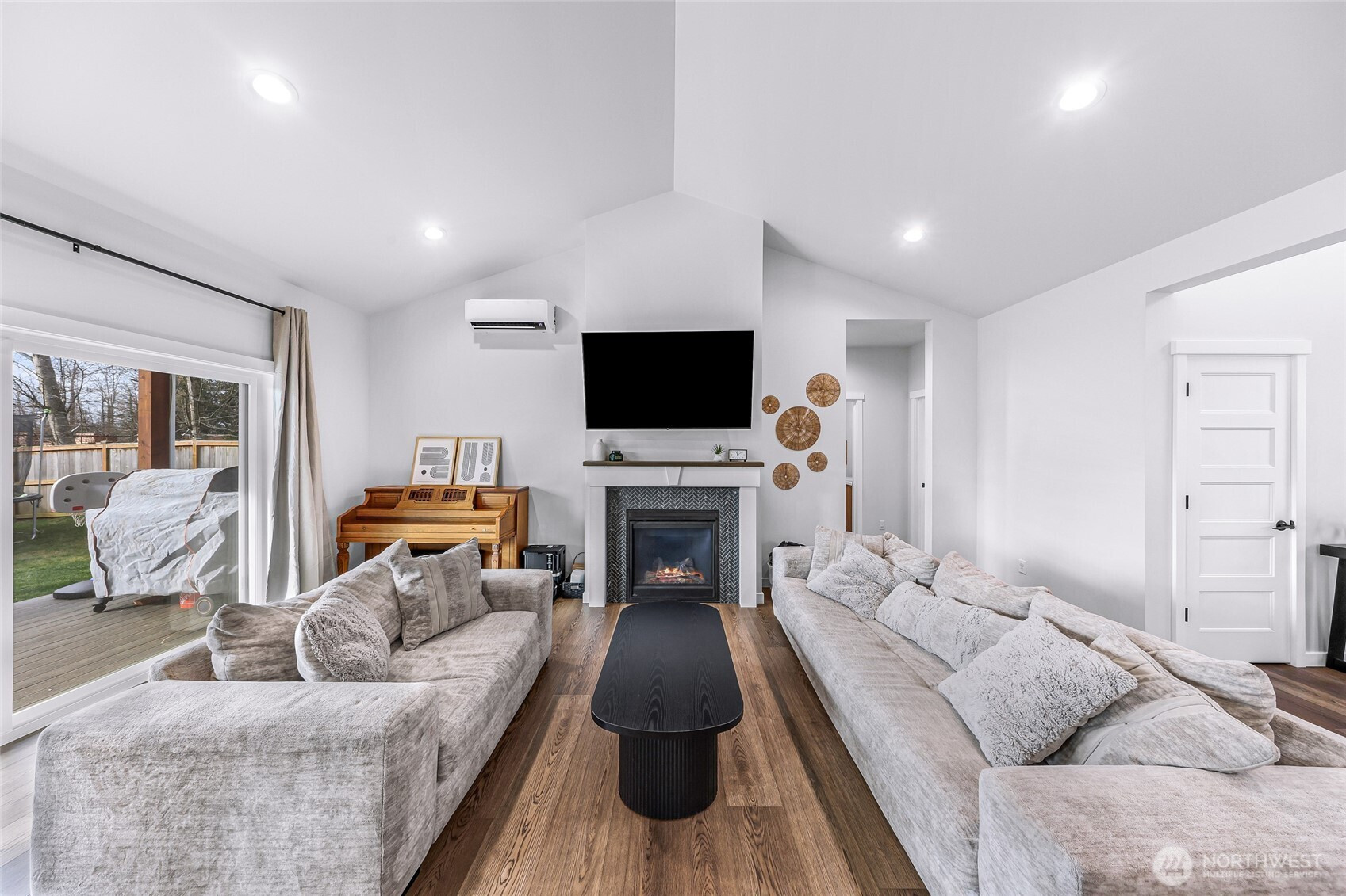 Beautiful home in the desirable Birchwood Community in South Everson! This single-level home offers the perfect blend of style, comfort, and functionality — all set in a welcoming neighborhood you’ll love coming home to.Step inside to vaulted ceilings in the entry and spacious great room, creating an open and airy feel. Cozy up by the gas fireplace or stay cool all summer with A/C. Just off the entry, you’ll find a versatile office that could easily serve as a 4th bedroom.The kitchen shines with modern farmhouse charm, featuring white and stained cabinetry, quartz countertops, a tile backsplash, stainless steel appliances, and a generous walk-in pantry. The thoughtful split-bedroom design provides privacy, with a vaulted primary suite complete with a walk-in closet and an en-suite bath showcasing double vanities, tile flooring, and a beautifully tiled shower.Durable waterproof luxury vinyl plank flooring runs through the main living areas, with plush carpet in the bedrooms for added comfort. Outside, enjoy a large lot with covered decks, a fenced yard, and plenty of space to relax, garden, or entertain. Located out of the floodplain and with no HOA dues, this home offers peace of mind and flexibility.
