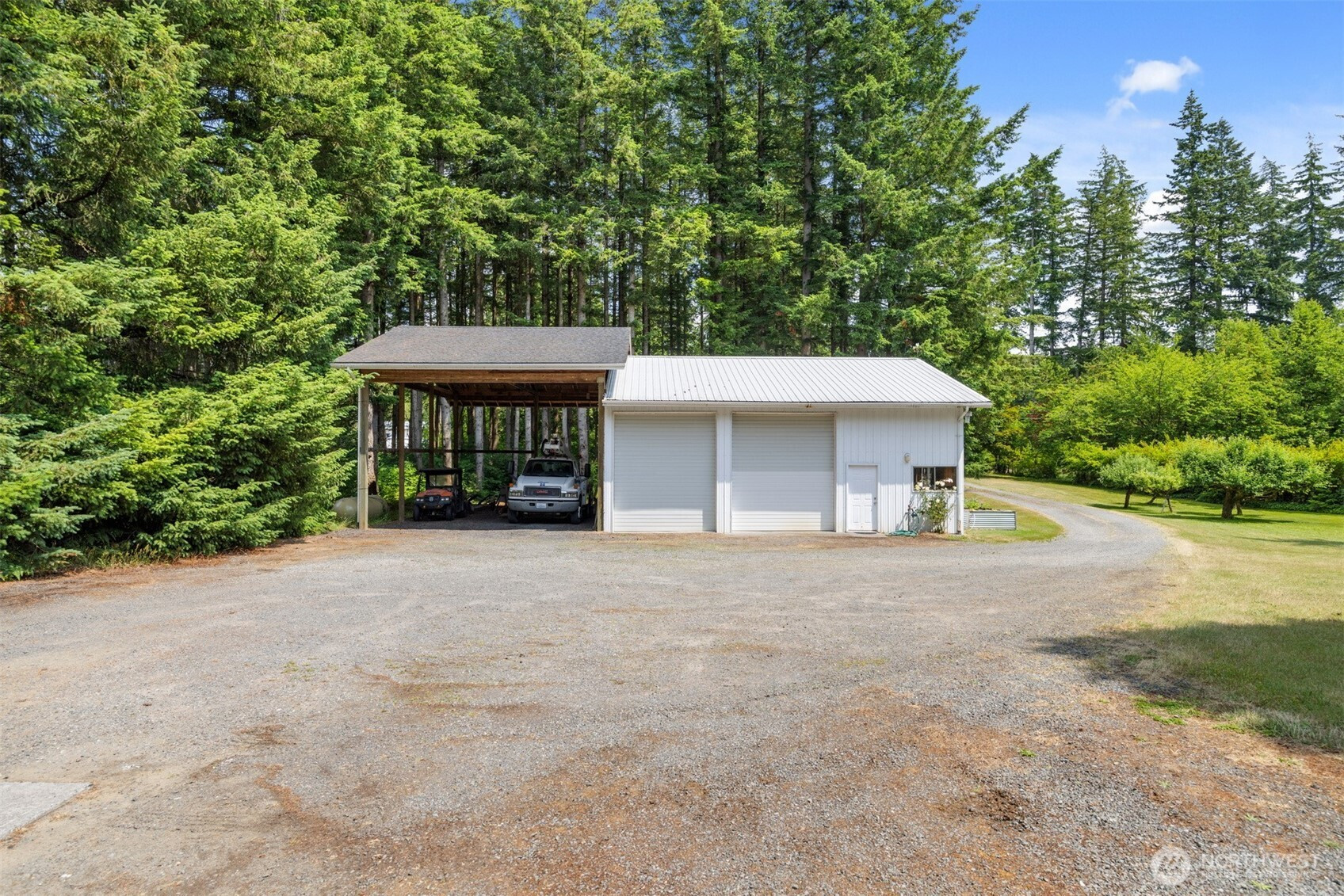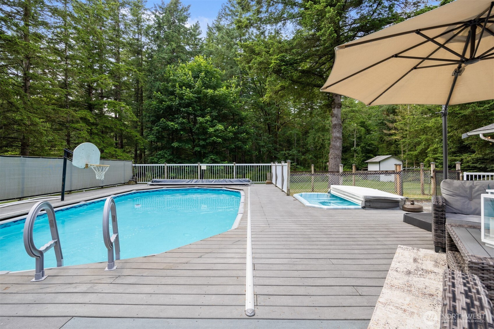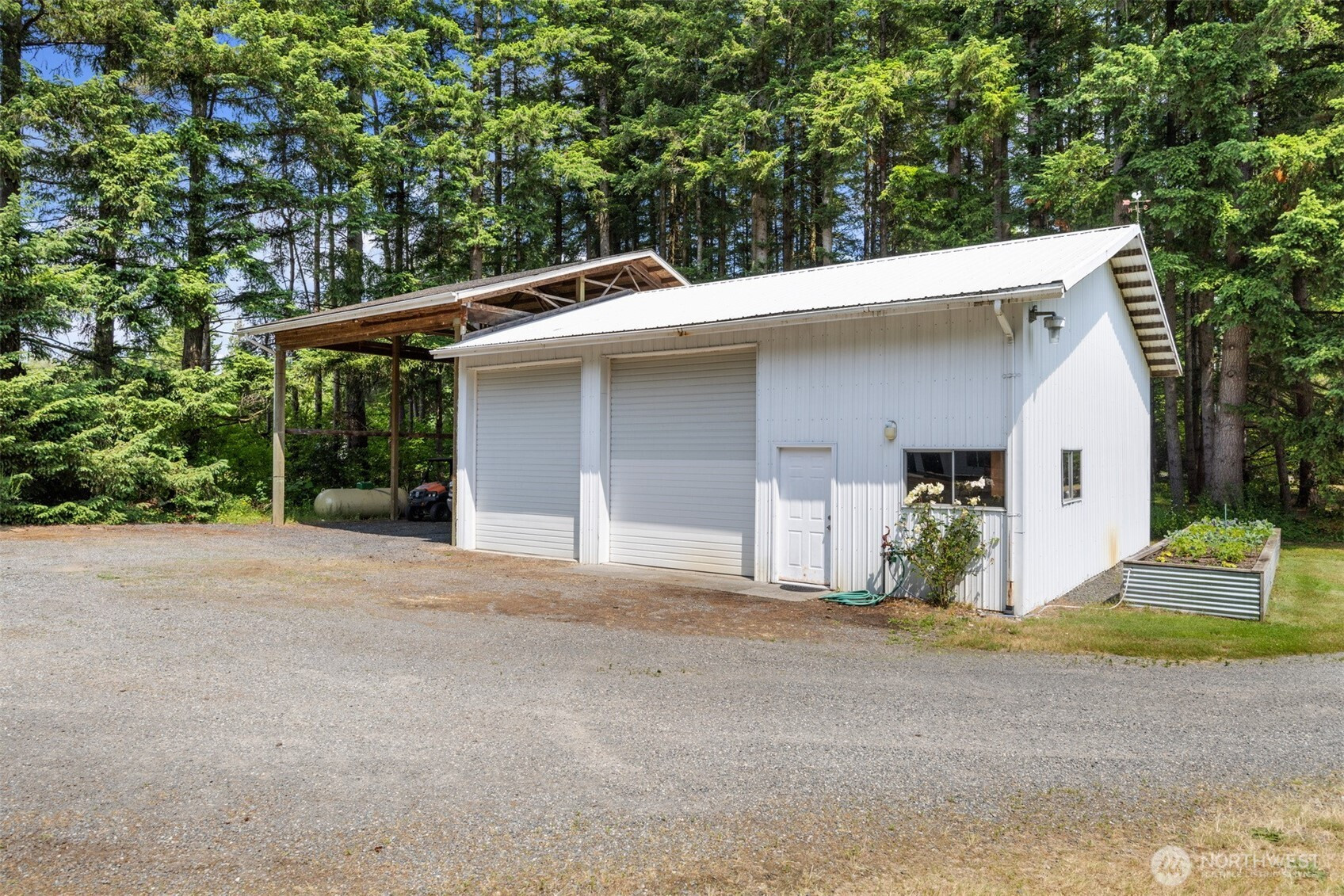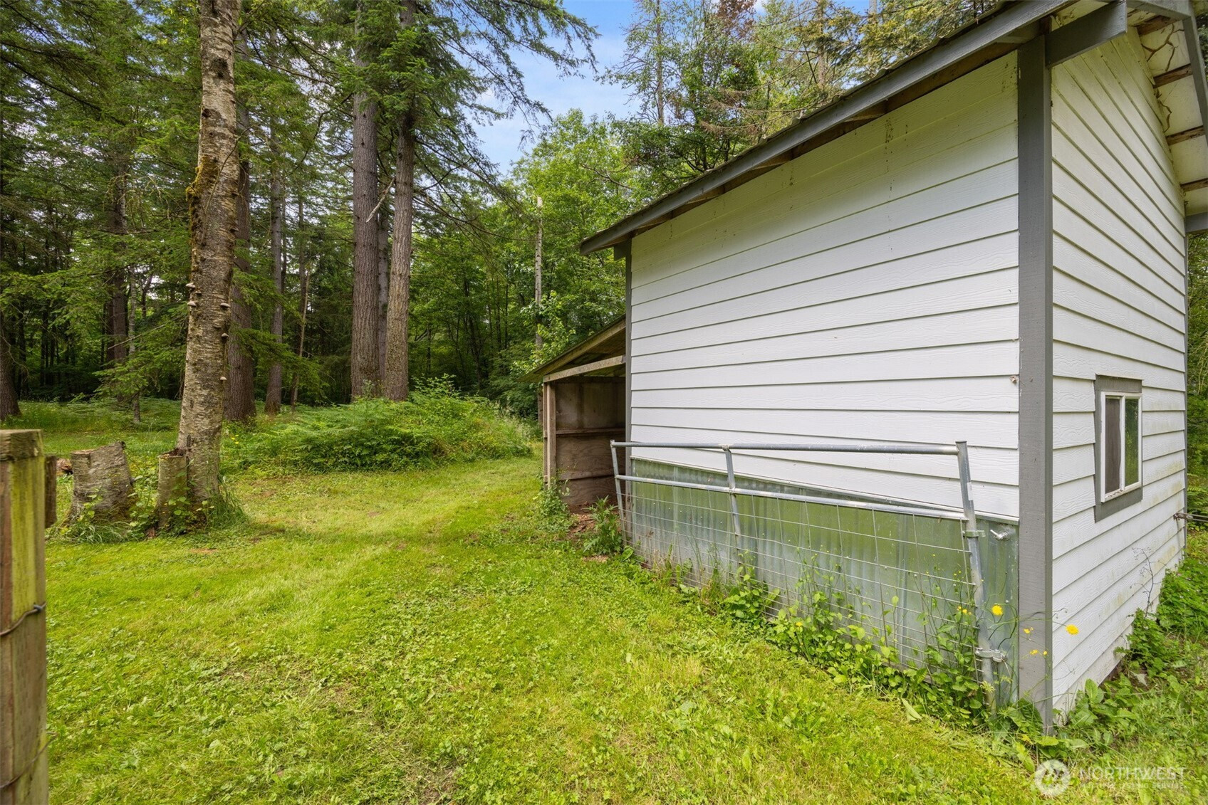 Discover your private retreat with this beautifully maintained single-level home, perfectly positioned on 2.39 serene acres in North County. Tucked away from the road and surrounded by stately evergreens, this property offers rare tranquility and seclusion. Step inside to sun-filled, spacious rooms designed for comfort and versatility. The fourth bedroom currently serves as a home office, but its history as a hair salon means it’s ready for a variety of uses, such as a creative studio, guest room, or remote work space...with the separate entry, the possibilities are endless! The expansive family room, complete with a pool table, invites lively gatherings and cozy evenings alike. Embrace outdoor living in your backyard oasis, featuring a sparkling above-ground swimming pool with a durable cover and surrounded by composite decking, along with a relaxing hot tub, and an inviting pool house with a convenient 3/4 bath—ideal for entertaining or quiet relaxation. A large two-bay 36' x 36' shop between the house and road provides ample space for hobbies, small or large projects, or storage. For adventure seekers or travelers, a two-vehicle carport at the north end easily accommodates RVs or boats. Green thumbs and animal lovers will appreciate the raised garden beds at the south end and a dedicated chicken coop/goat shed in the backfield, perfect for small livestock or fresh eggs. This exceptional property blends privacy, comfort, and functionality—ready for you to make it your own.