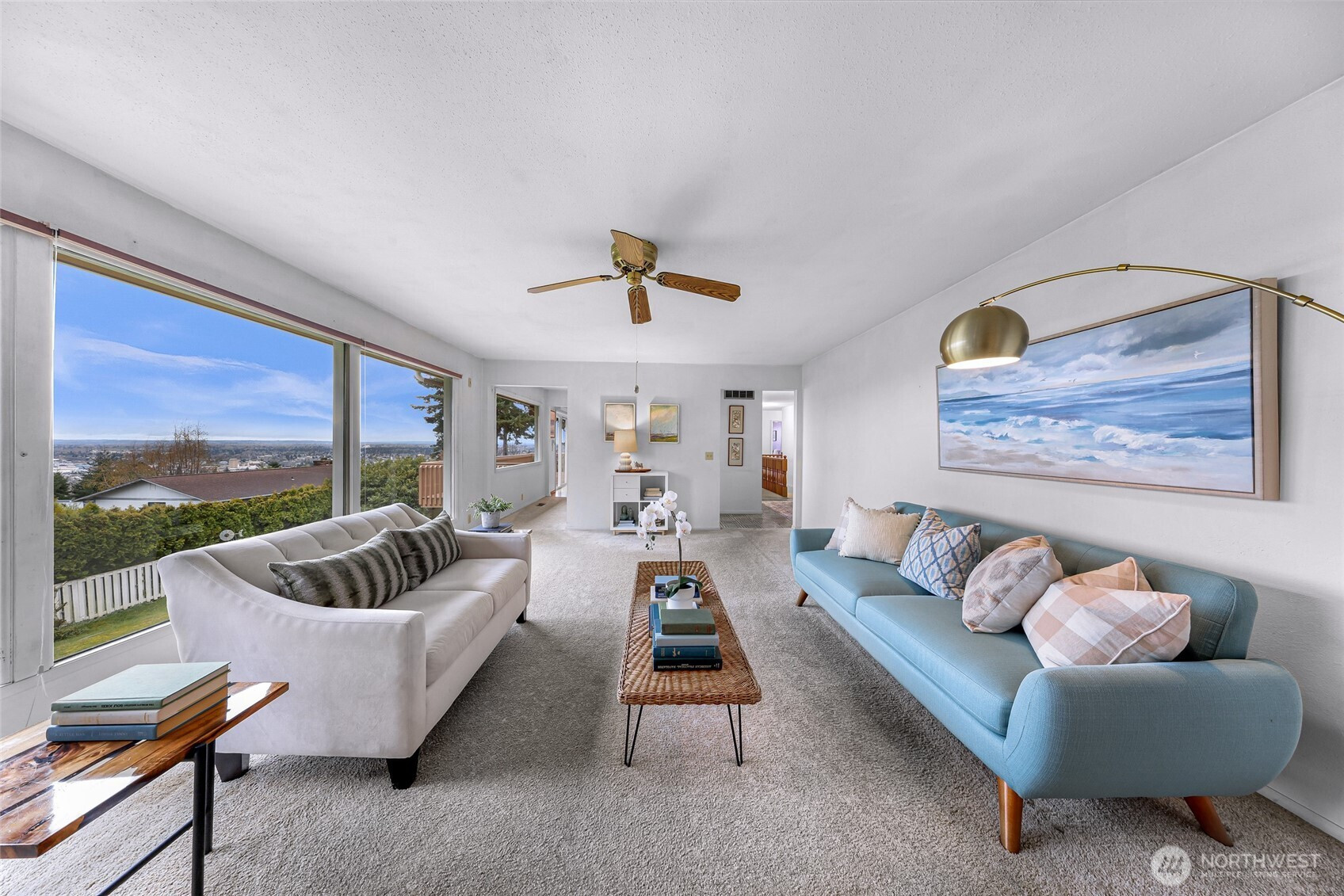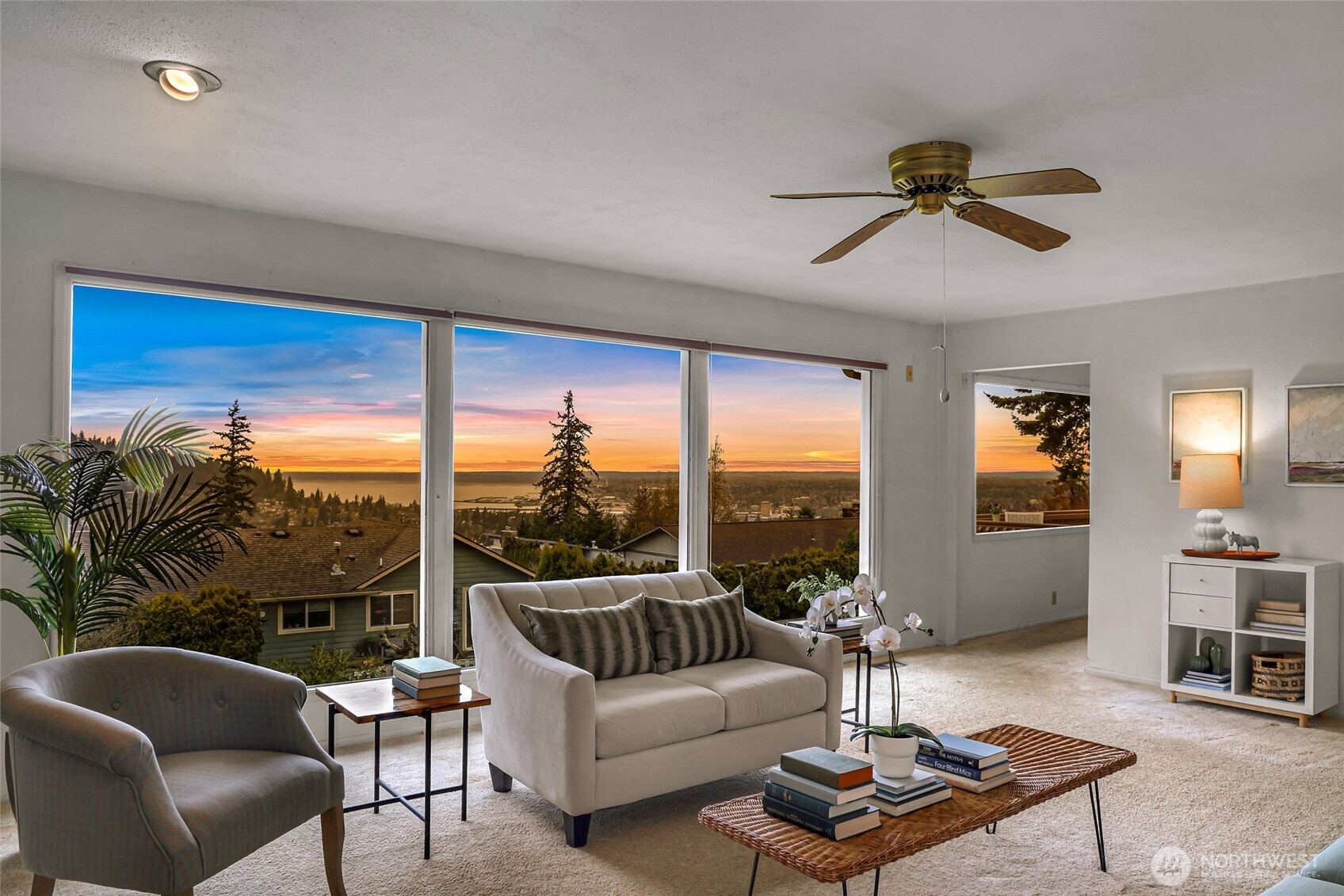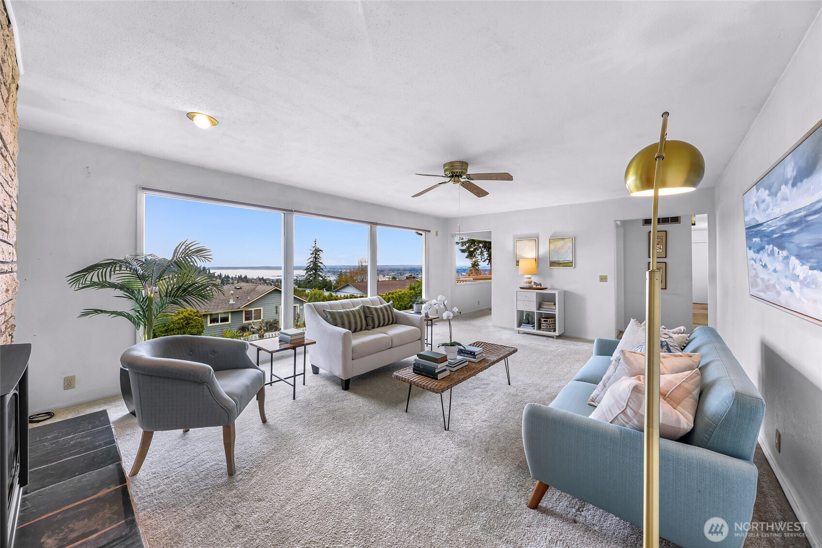 Positioned in one of Bellingham’s most coveted neighborhoods, this mid-century home captures sweeping westerly views of Bellingham Bay and the city skyline. Set on a well-maintained, partially fenced 9,148 sq ft lot, this one-owner home offers a rare opportunity to reimagine a classic in an exceptional location. Expansive windows in the living and dining areas showcase the views, while a gas fireplace creates a warm, inviting focal point. The main level features 1,540 sq ft with three bedrooms, a full bath, a half bath off the primary, and a dedicated office. A deck off the kitchen provides an ideal setting for outdoor dining overlooking the bay. The partially finished daylight basement (1,062 sq ft) includes two additional bedrooms, a half bath & laundry room, a spacious family room with a wood-burning fireplace and separate entry—perfect for a workshop or hobby space. Additional features include a flat driveway to the garage, secondary lower-level access, and ample parking for RV or boat. Located near the Samish Crest Trail in the desirable Puget neighborhood, this property offers location, space, and outstanding potential.