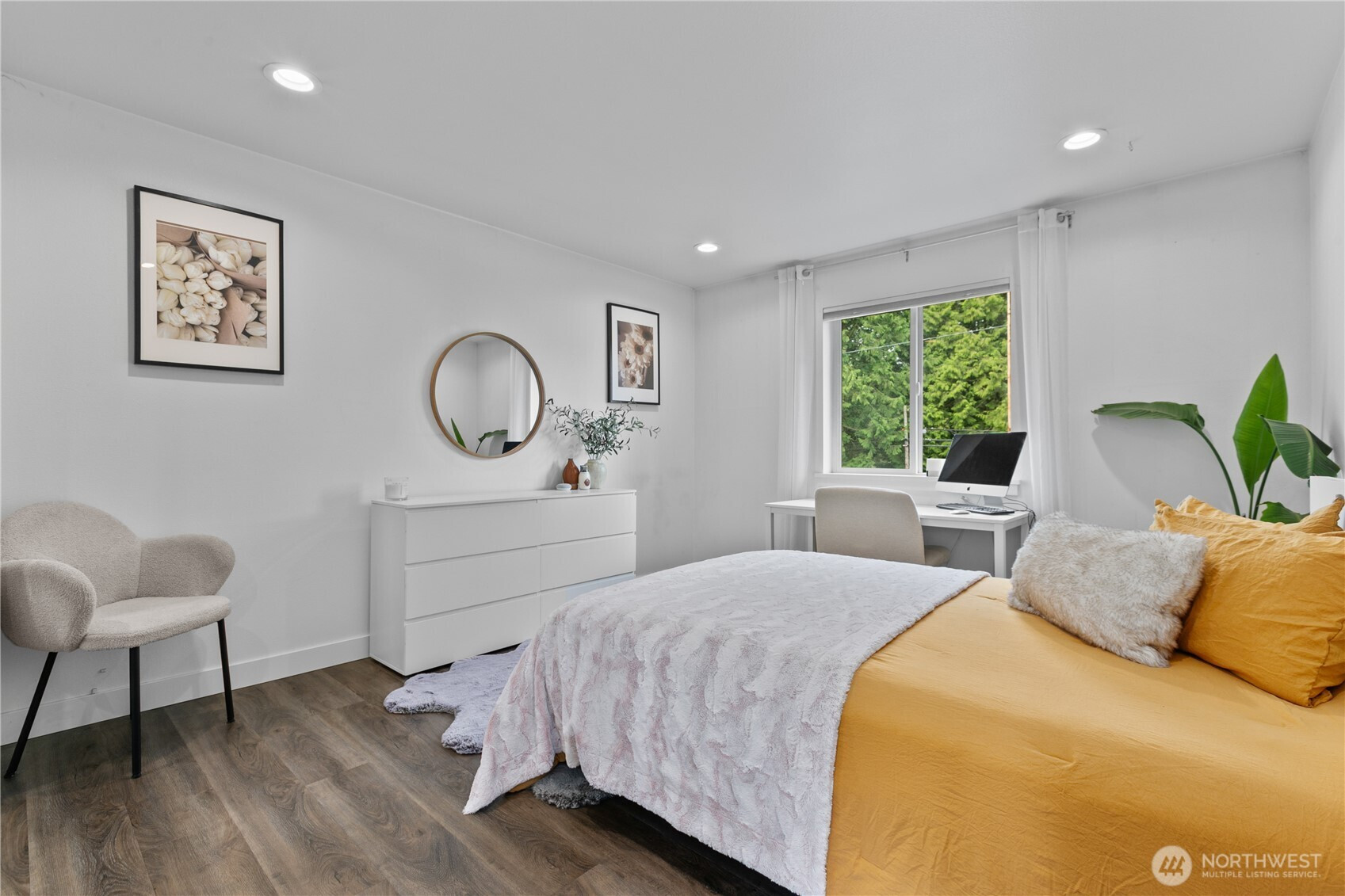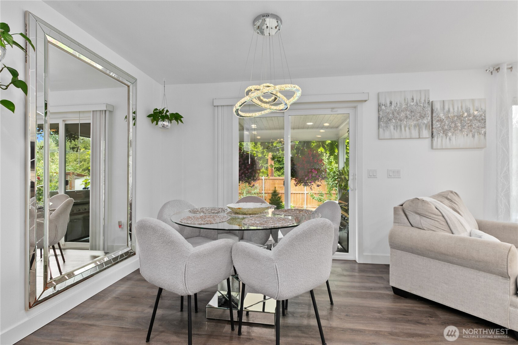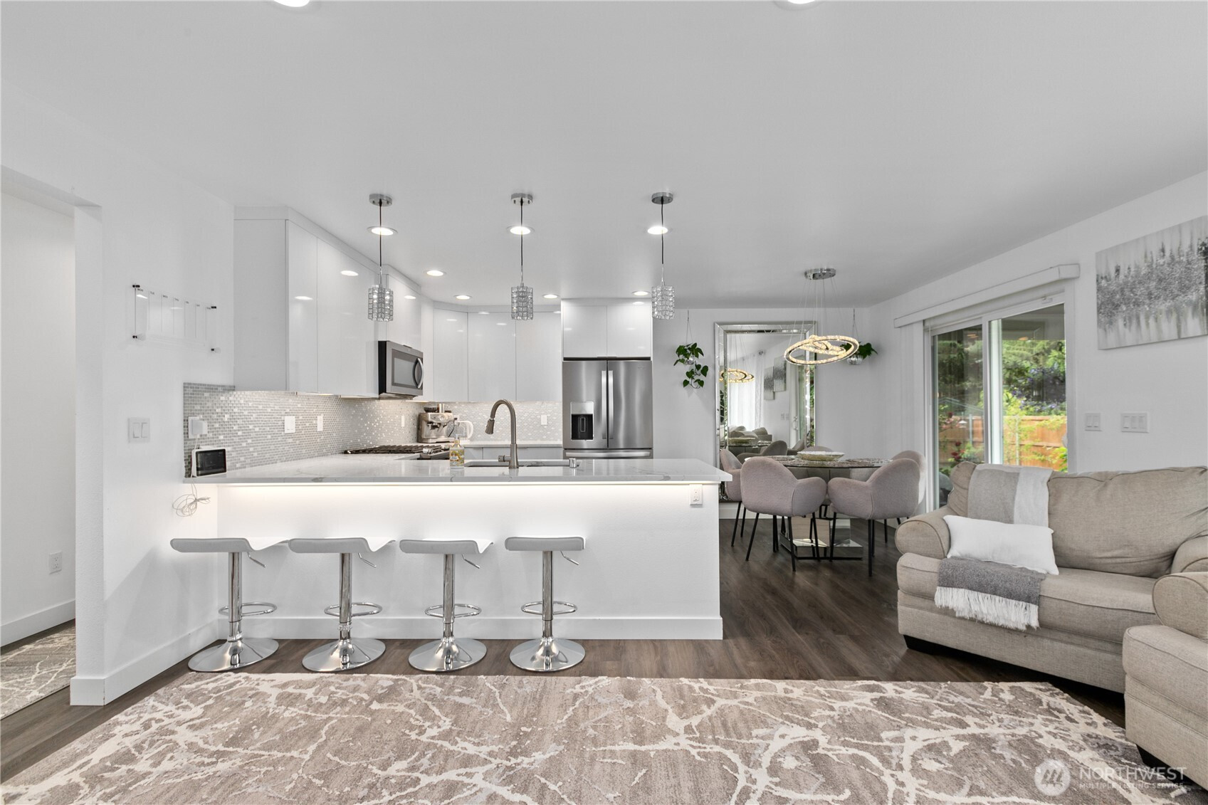 Discover the charm of this well-cared-for 4-bedroom, 2.5-bathroom residence offering close to 2,000 square feet of comfortable living space. Designed with both functionality and style in mind, the home features an inviting open-concept layout that effortlessly blends the living, dining, and kitchen areas—perfect for hosting guests or enjoying daily life. The kitchen stands out with elegant marble countertops, stainless steel appliances, and plenty of space to gather, while a warm gas fireplace creates a cozy focal point in the living room. Modern touches and a tankless hot water system provide added comfort and efficiency throughout the home. Step outside to a peaceful backyard retreat complete with a covered patio, colorful garden beds, and mature fruit trees. With the added convenience of an attached garage, this move-in-ready home offers a perfect balance of comfort, beauty, and practicality.