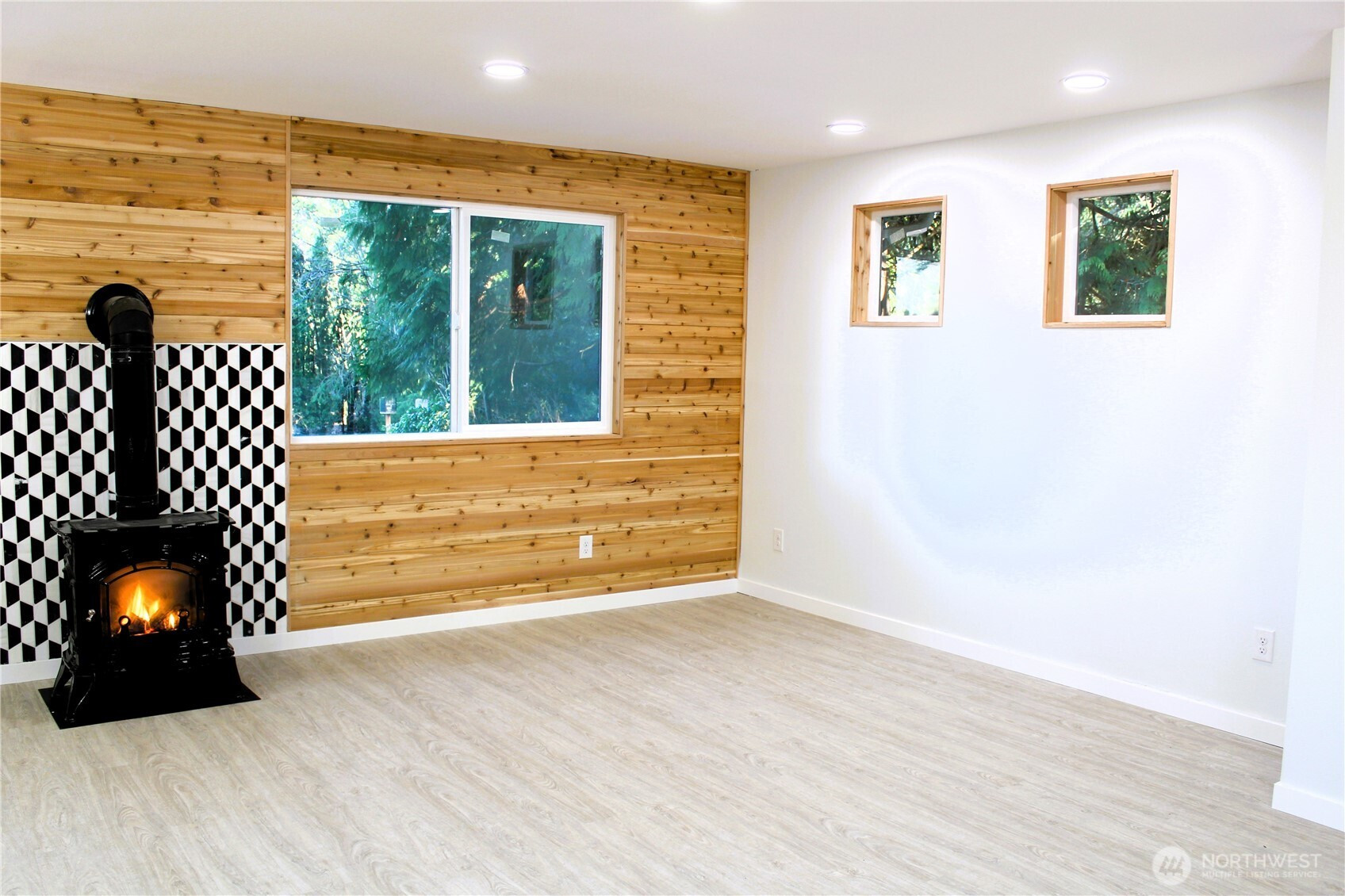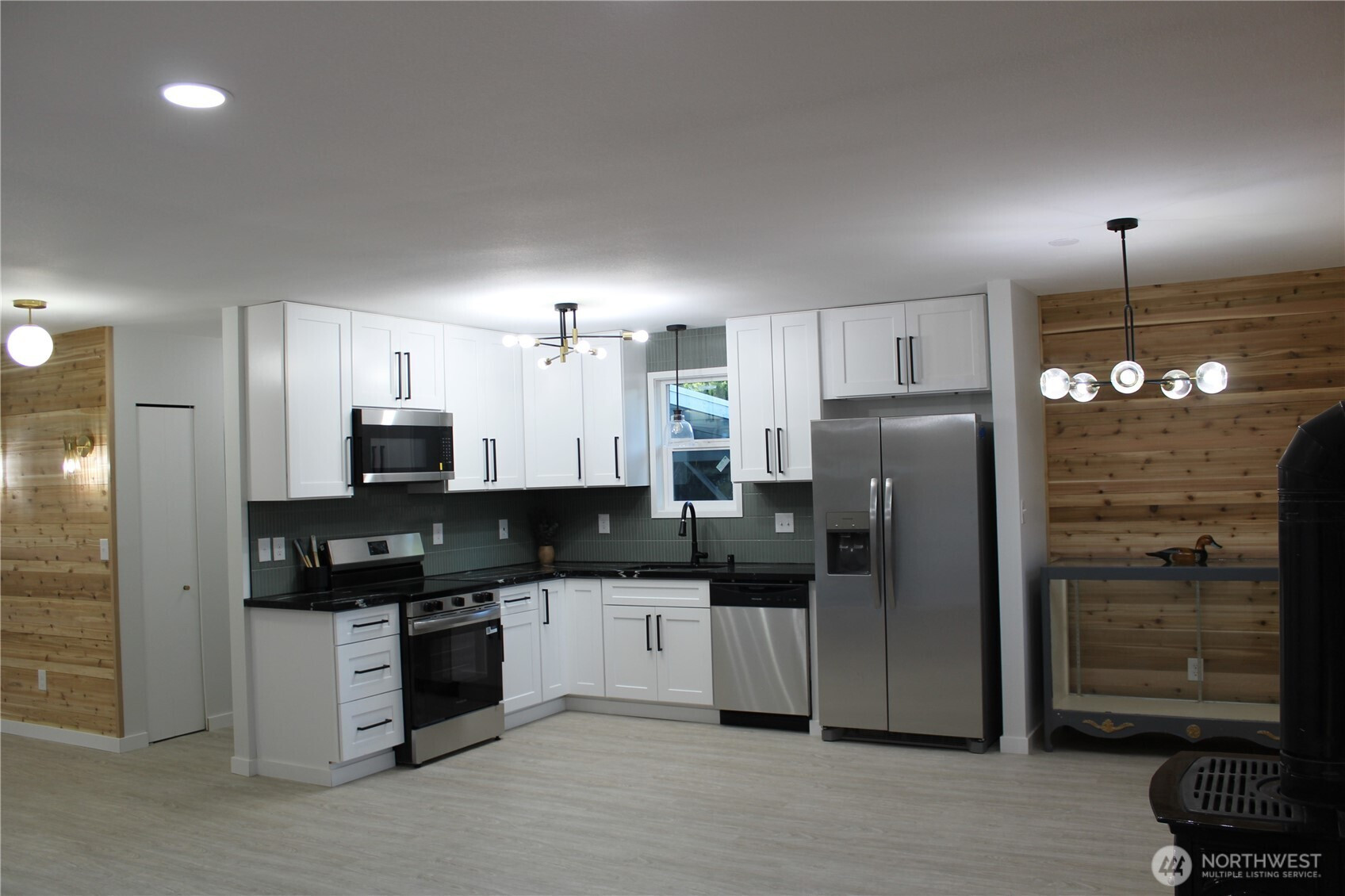 Beautifully renovated cabin by the bay! This cute cottage needs absolutely nothing to be move in ready. The home offers an updated kitchen with solid wood cabinets, quartz countertops and all new appliances. Luxury vinyl plank flooring throughout for a great look with low maintenance. Brand new double pane windows for comfort and efficiency. Listen to the soft sounds of the stream, from your deck, in your fully fenced back yard. This is one of the few lots with beautiful old growth trees and privacy. There is no need to compromise style, this home is adorable and truly move in ready. Don't miss out on your chance to own the most affordable stick-built home in the village.