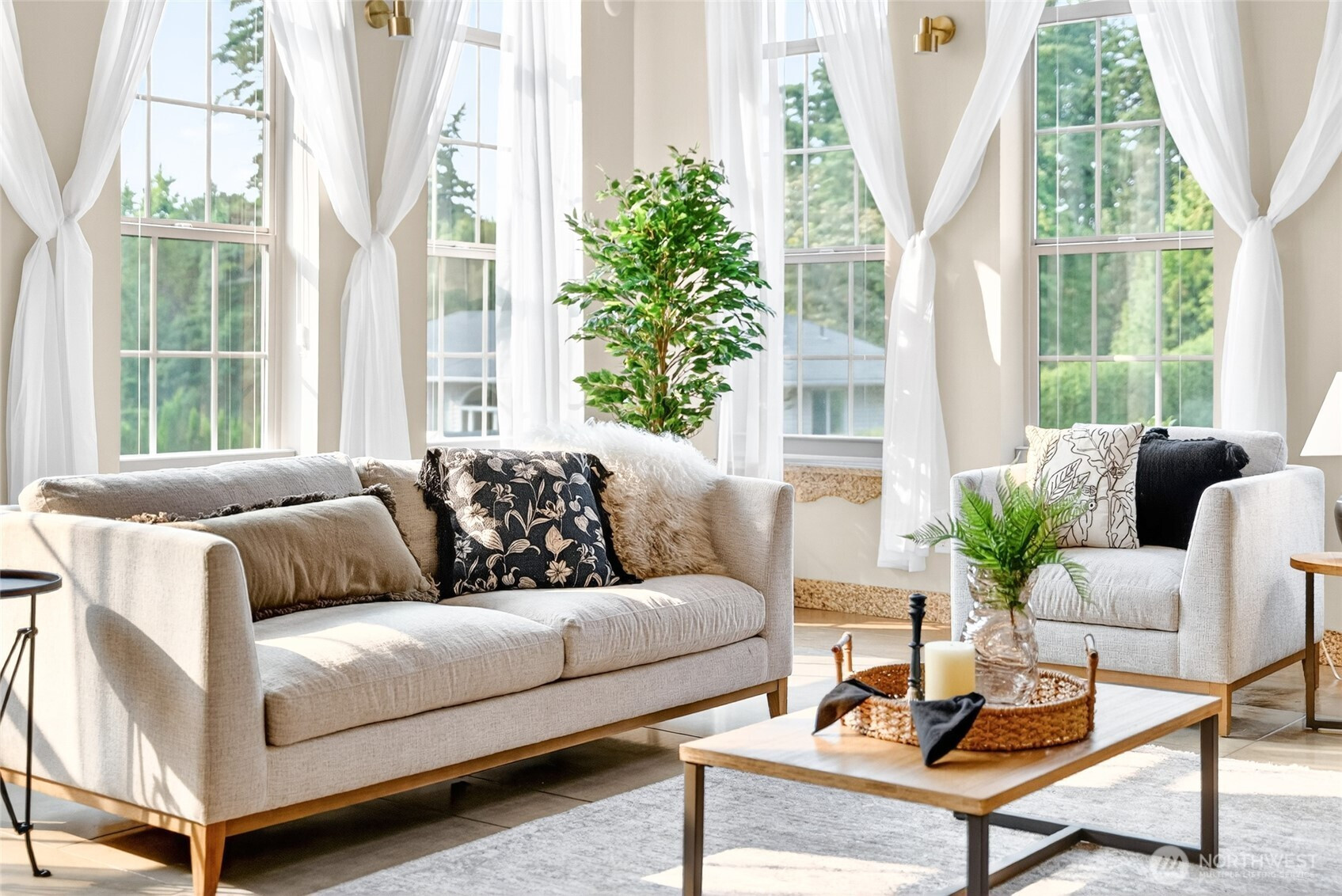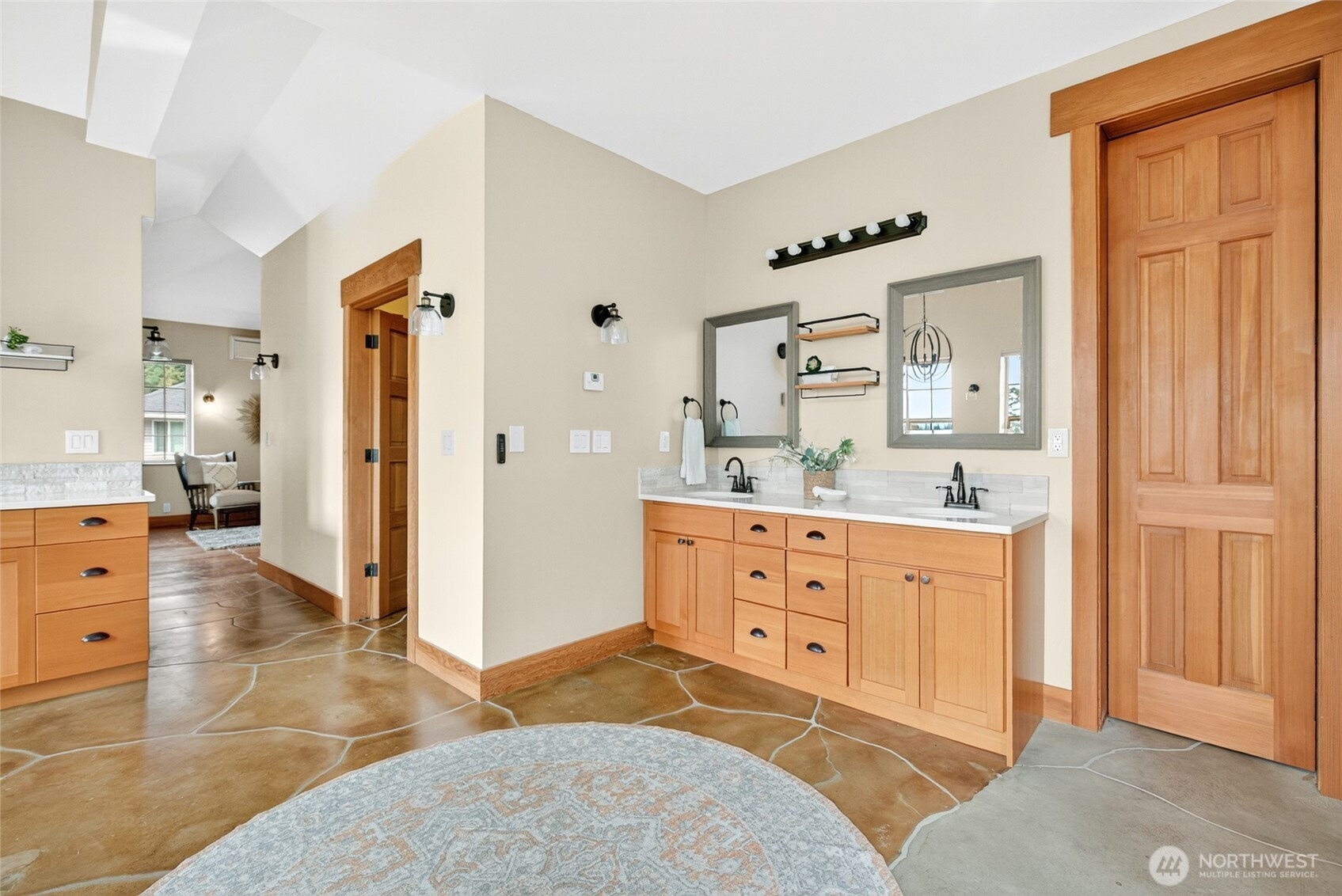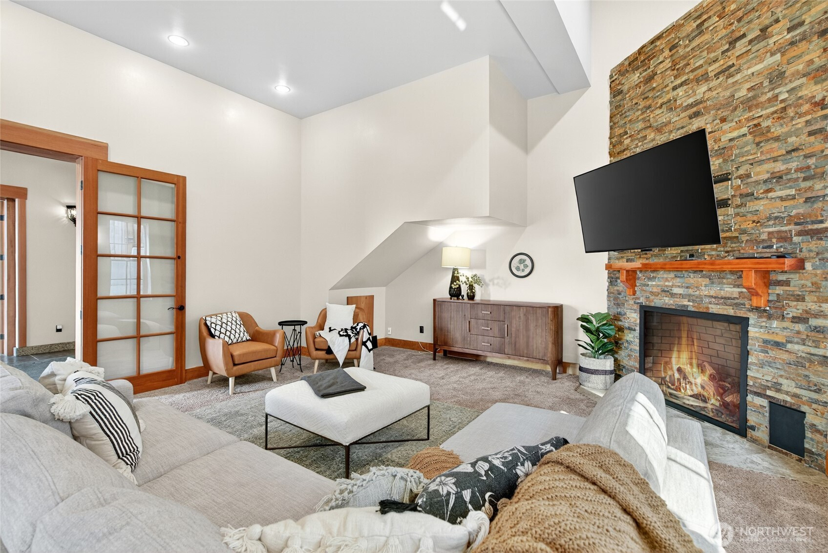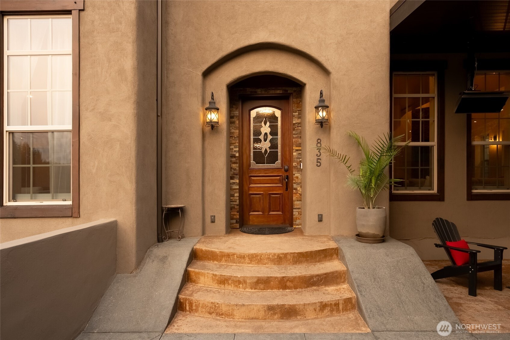 A one-of-a-kind Tuscan Tudor estate. A commanding presence complimented by elegance. Expansive windows, Juliet balconies, while landscaped stonework frames the setting. Polished stamped concreate floors with radiant heating, combining timeless design & comfort. Vaulted ceilings & architectural arches gracefully transition you from the grand entry hall to the elegant living room & family room; from the refined dinning room to the gourmet chef's kitchen & butler pantry. Retreat upstairs in the private primary suite & spa-like en-suite. A hidden gem awaits you; a cinema-loft & crows nest to enjoy the sunset. the detached two-car garage & 2 ADU's integrates seamlessly with the main residence, creating a sense of unity across the estate.