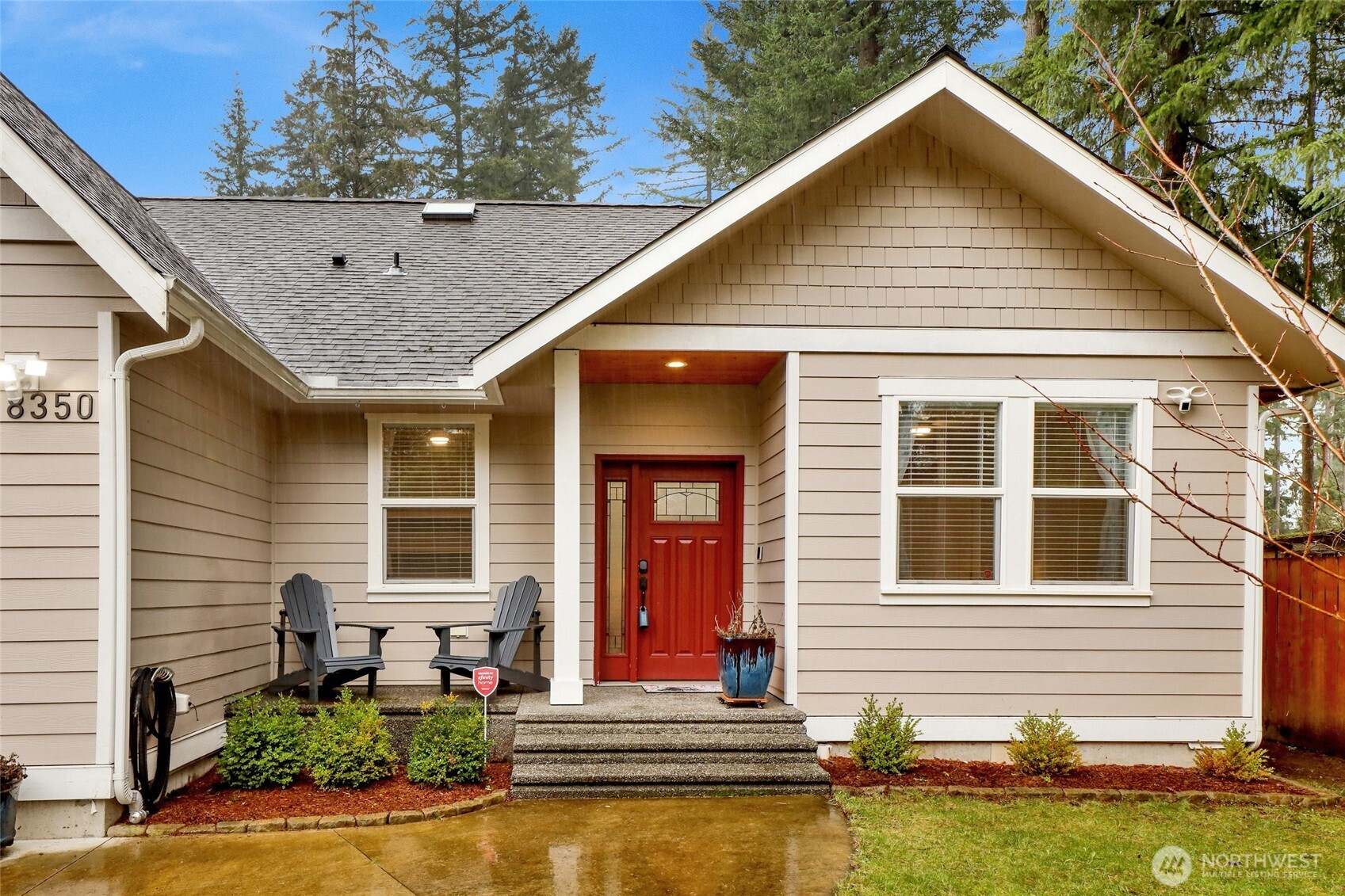 Discover the perfect blend of modern luxury and future potential on this pristine .51-acre estate. Built in 2020, this like-new 2,040 sq ft custom home features 9ft ceilings and an open-concept flow designed for both comfort and productivity. The heart of the home is a chef’s kitchen with quartz counters, stainless steel appliances, and under-cabinet lighting, flowing seamlessly to a covered back patio for year-round entertaining. Professionals will love the dedicated main-floor office plus an upstairs bonus room, perfect for a second workspace, gym, or hobby room. The primary bedroom suite, located on the main floor, provides easy accessibility. The massive, level yard is an outdoor oasis featuring a garden, cherry blossom trees, wisteria, a premium playset, and a large shed for storing all your tools. The large parcel is fenced into two sections and has a secondary driveway access, with room for a shop or DADU potential (buyer to verify with county/health dept), plus future subdivision possibilities if sewer becomes available. No need to worry about cleaning the gutters as they have LeafGuard installed. Equipped with a generator hookup, high-efficiency heat pump with A/C, and a cozy wood fireplace, this home is meticulously prepared for every season.