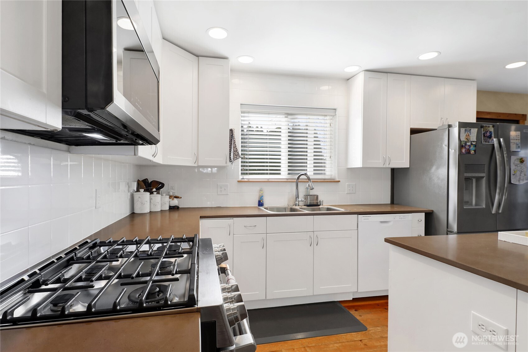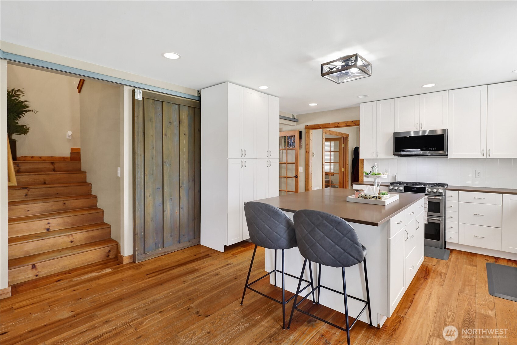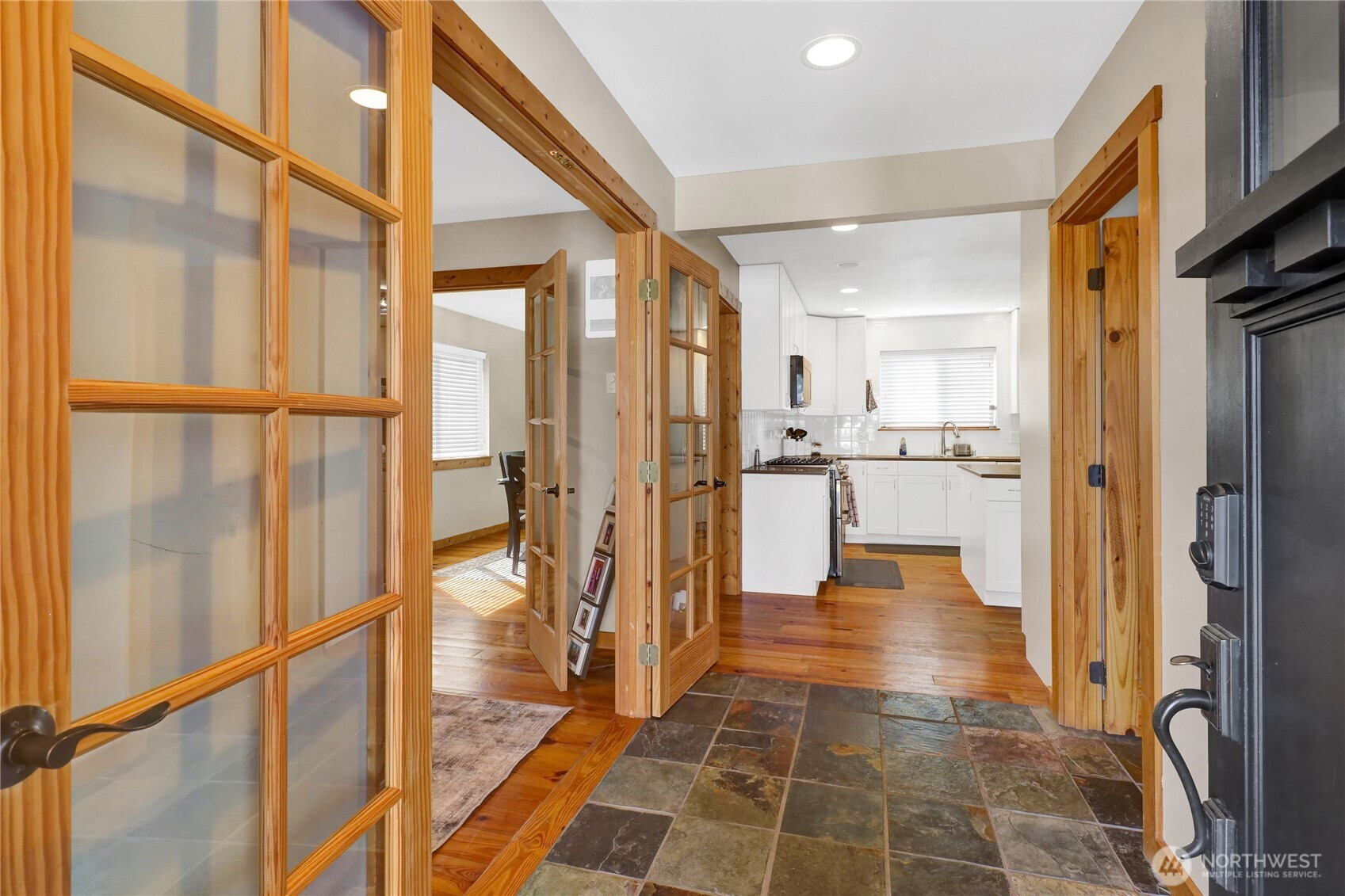 Farmhouse charm meets functionality in this desirable west Lynden home! Offering 4+ bedrooms, this spacious layout is ideal for multi-gen living or rental potential. Bright kitchen opens to cozy living room with full stone gas fireplace. Main level includes semi-formal dining and additional living room with French doors. Vaulted primary suite features walk-in closet and ensuite bath. Along with the bedrooms, the upstairs features a bonus room with an office/den. Pine floors throughout add warmth and character. Enjoy great curb appeal, oversized 2-car garage, and fully fenced backyard. Prime location near Isom Elementary, trails, parks, and downtown.