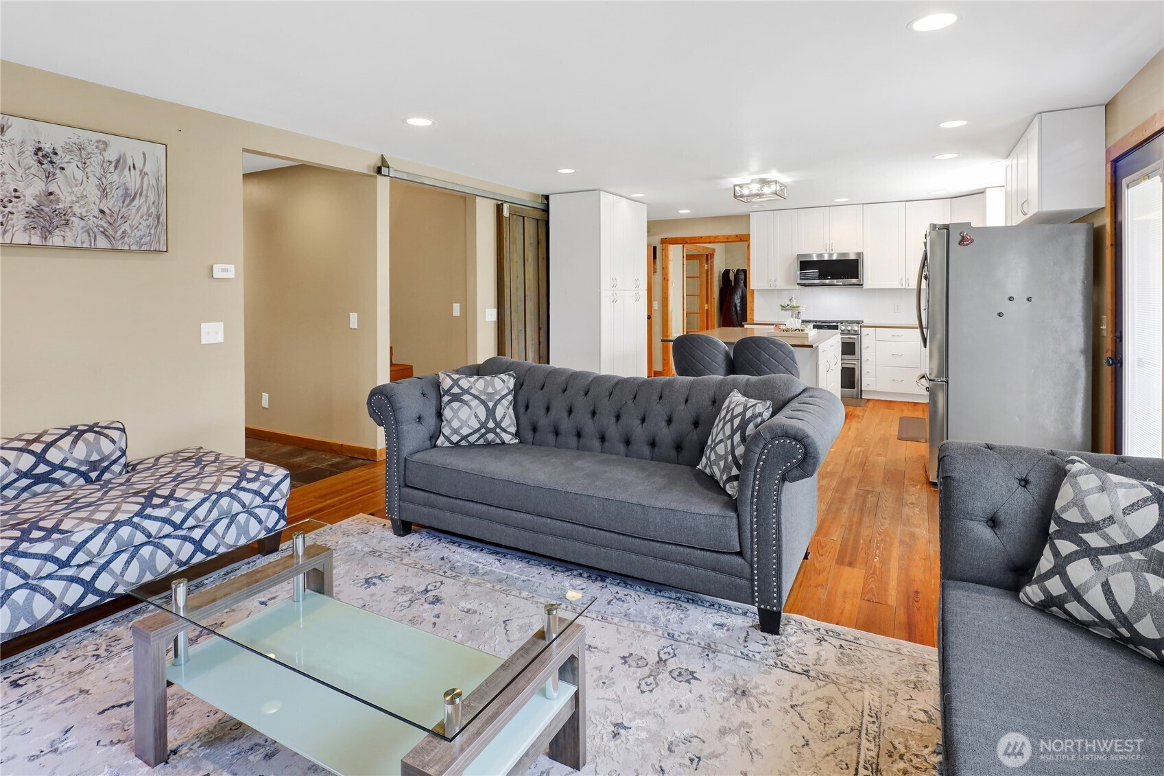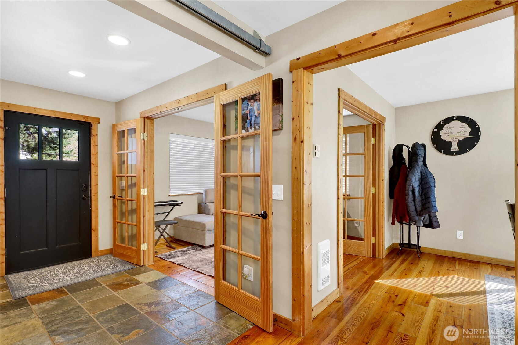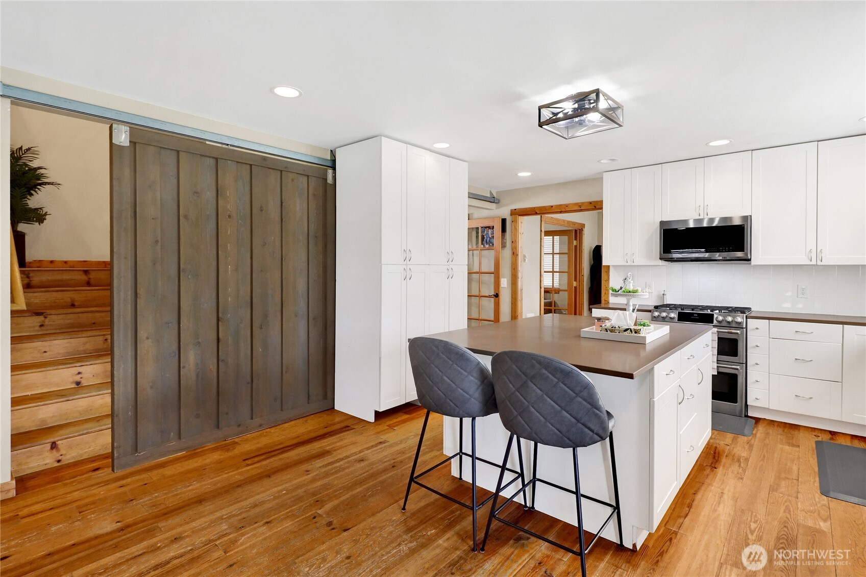 Farmhouse charm meets functionality in this desirable west Lynden home! Offering 4+ bedrooms, this spacious layout is ideal for multi-gen living or rental potential. Bright kitchen opens to cozy living room with full stone gas fireplace. Main level includes semi-formal dining and additional living room with French doors. Vaulted primary suite features walk-in closet and ensuite bath. Along with the bedrooms, the upstairs features a bonus room with an office/den. Pine floors throughout add warmth and character. Enjoy great curb appeal, oversized 2-car garage, and fully fenced backyard. Prime location near Isom Elementary, trails, parks, and downtown.