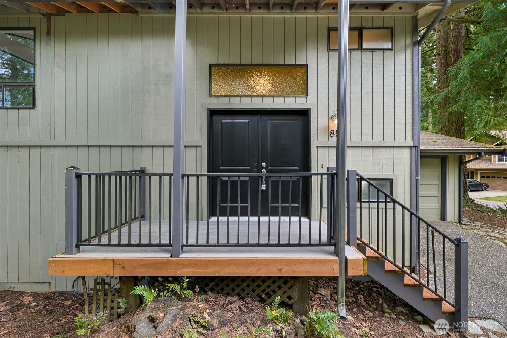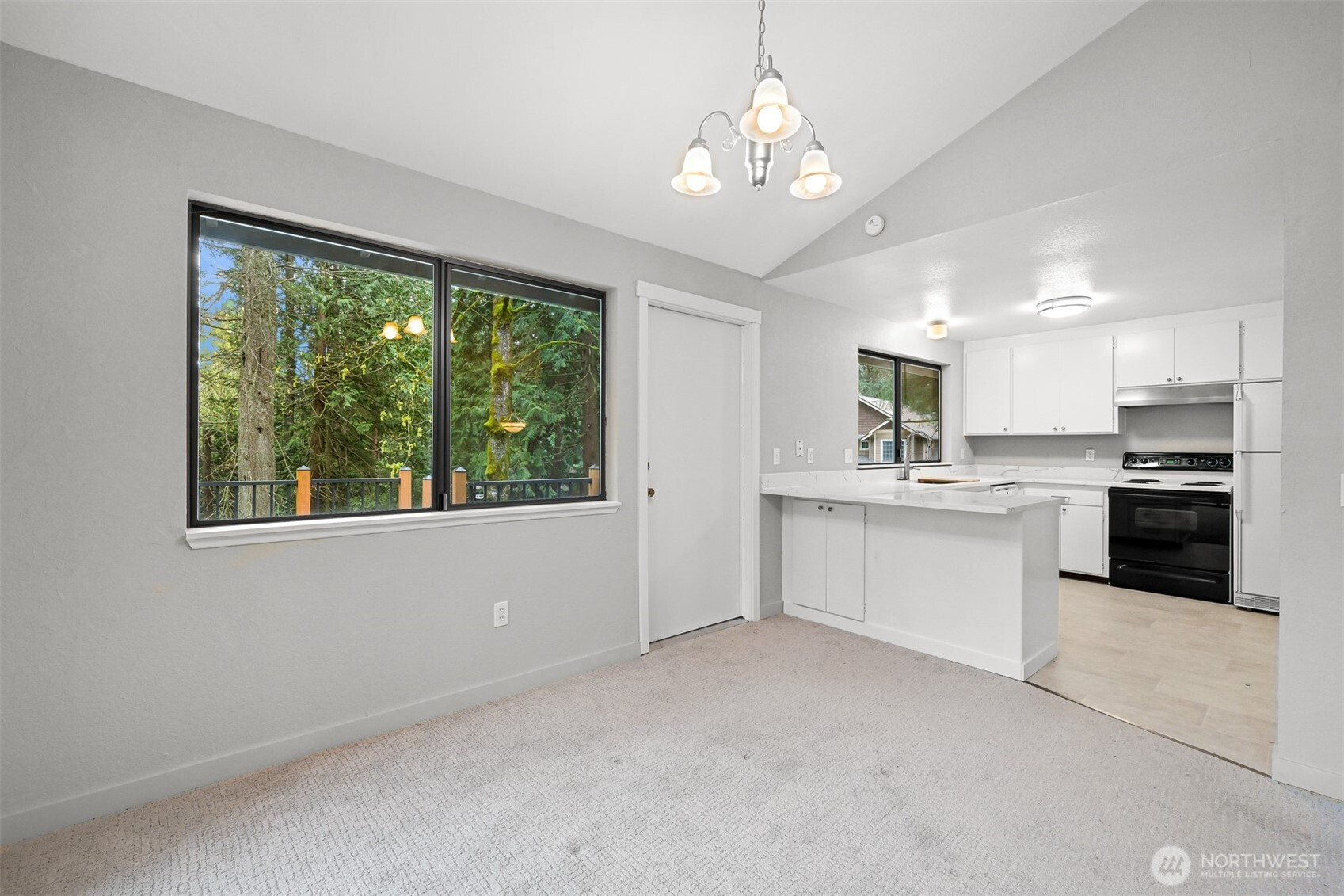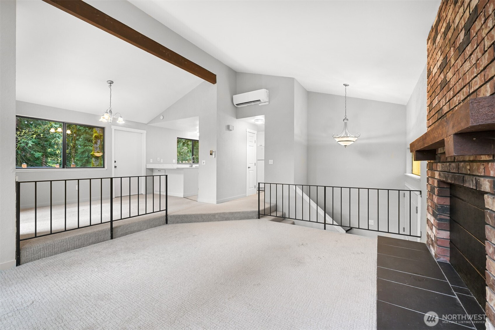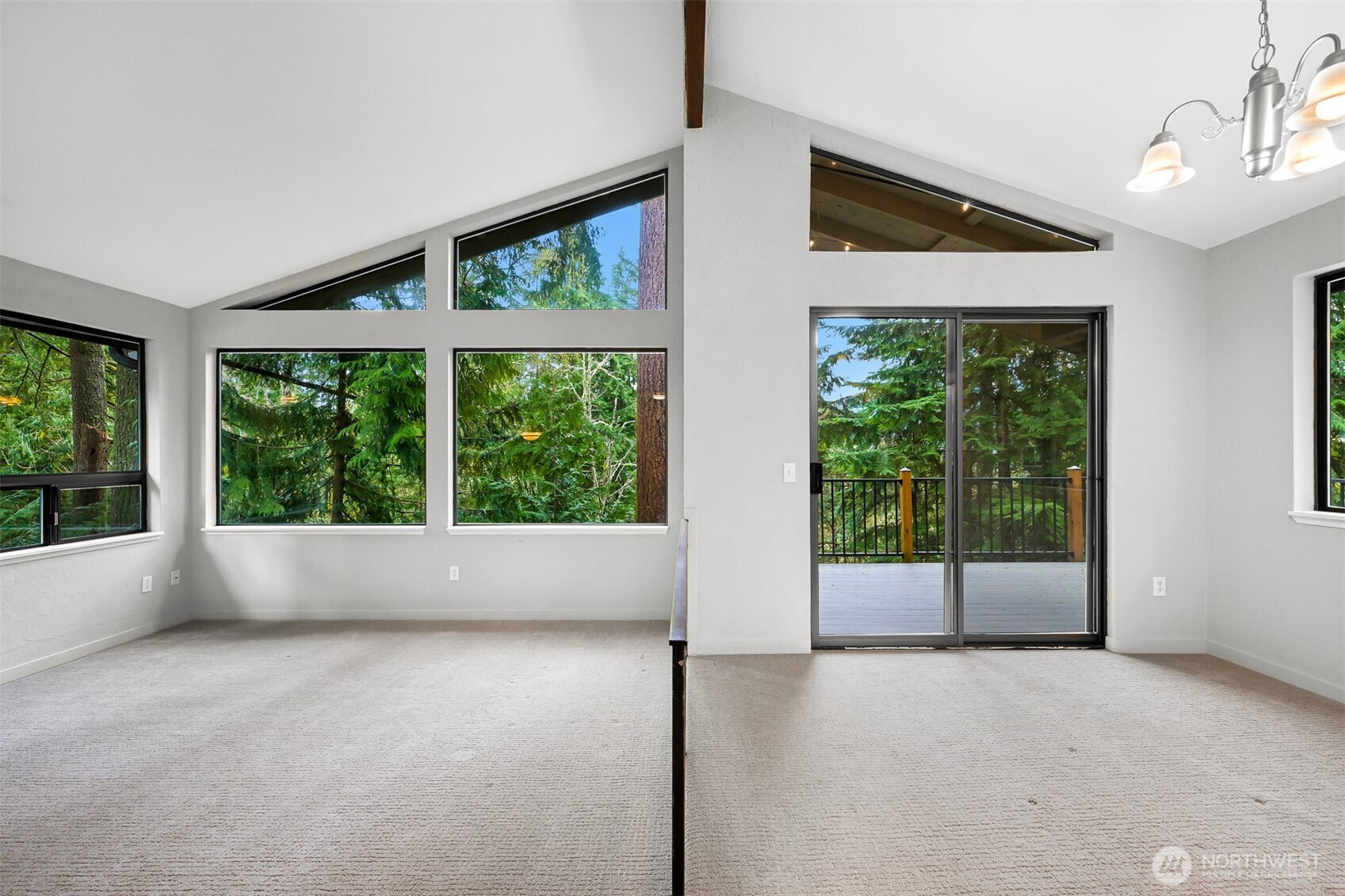 Nestled among the trees, this home offers a true sense of privacy and tranquility on a large triple lot. Spacious open-concept layout connects the living, dining, & kitchen creating a true entertainer’s dream. Soaring vaulted ceilings with exposed wood beams create a warm, inviting space, while windows on every side frame peaceful forest views. Double doors welcome you into your own private retreat, where indoor/outdoor living shines with a spacious, updated deck just off the dining room. New electric hot water heater and new mini split system on both levels installed in 2025, fresh carpet, attached garage, 3 bedrooms & 2.5 baths, this home truly has it all.