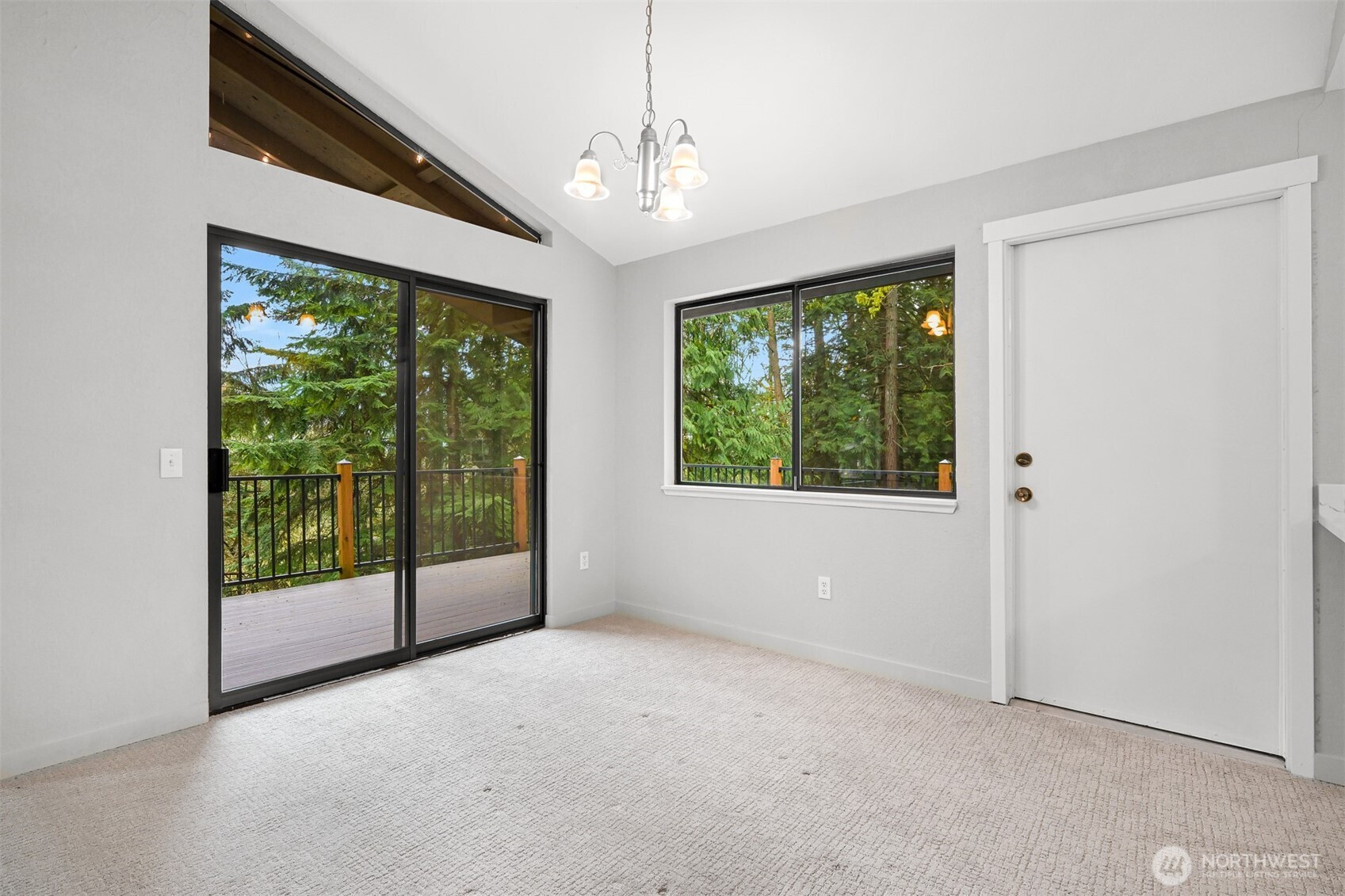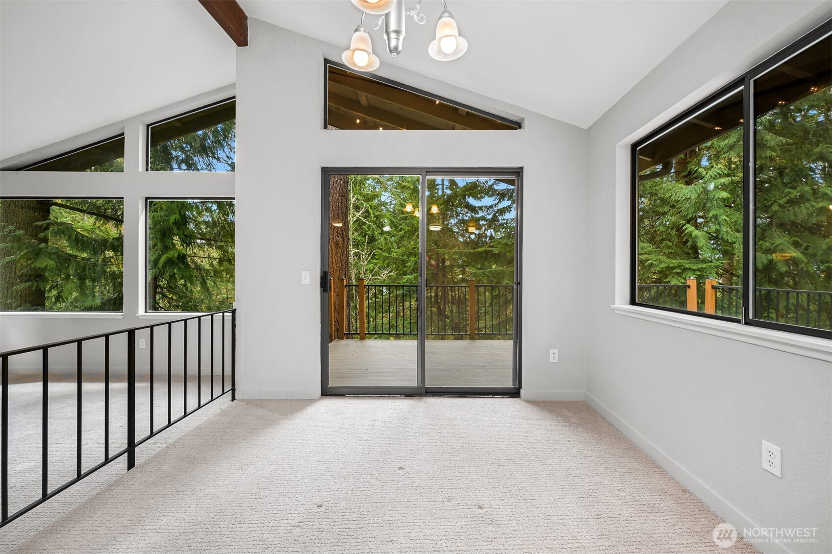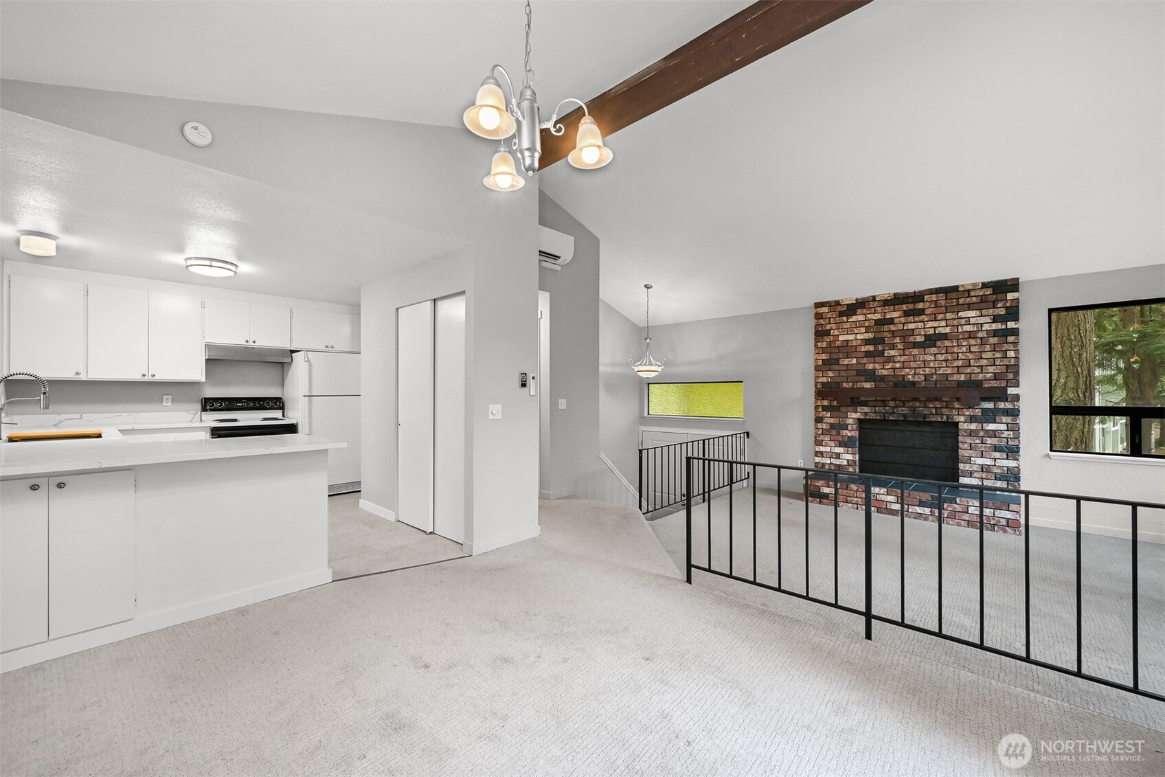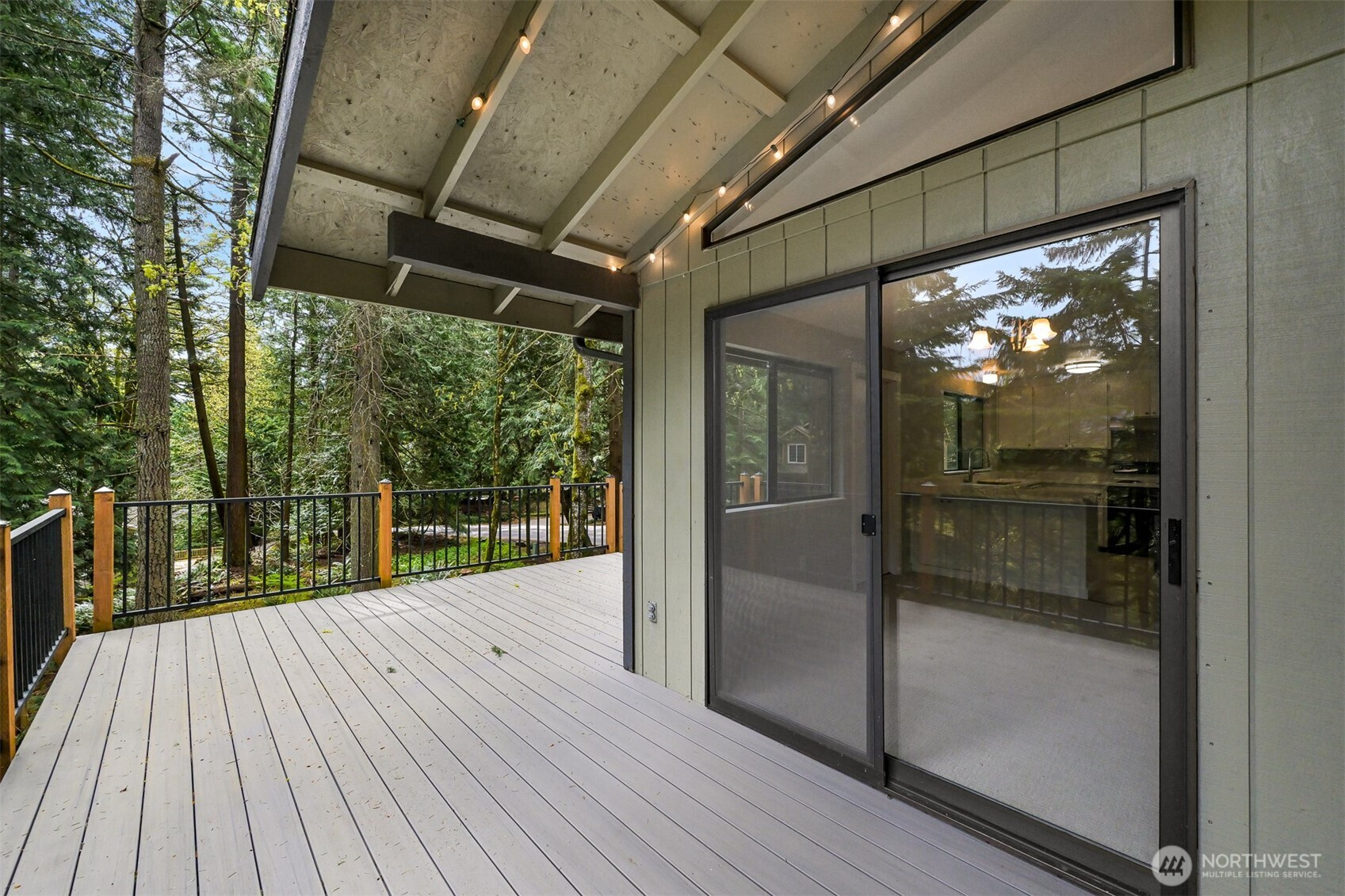 Nestled among the trees, this home offers a true sense of privacy and tranquility on a large triple lot. Spacious open-concept layout connects the living, dining, & kitchen creating a true entertainer’s dream. Soaring vaulted ceilings with exposed wood beams create a warm, inviting space, while windows on every side frame peaceful forest views. Double doors welcome you into your own private retreat, where indoor/outdoor living shines with a spacious, updated deck just off the dining room. New electric hot water heater and new mini split system on both levels installed in 2025, fresh carpet, attached garage, 3 bedrooms & 2.5 baths, this home truly has it all.
