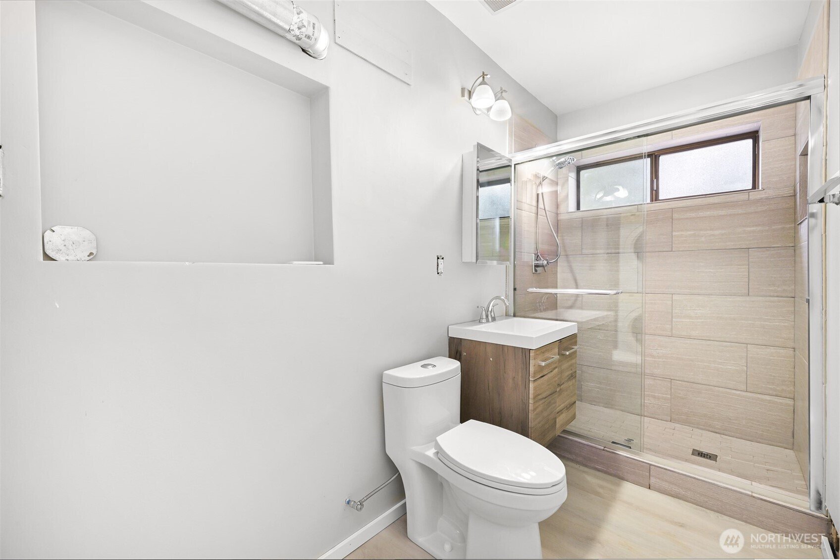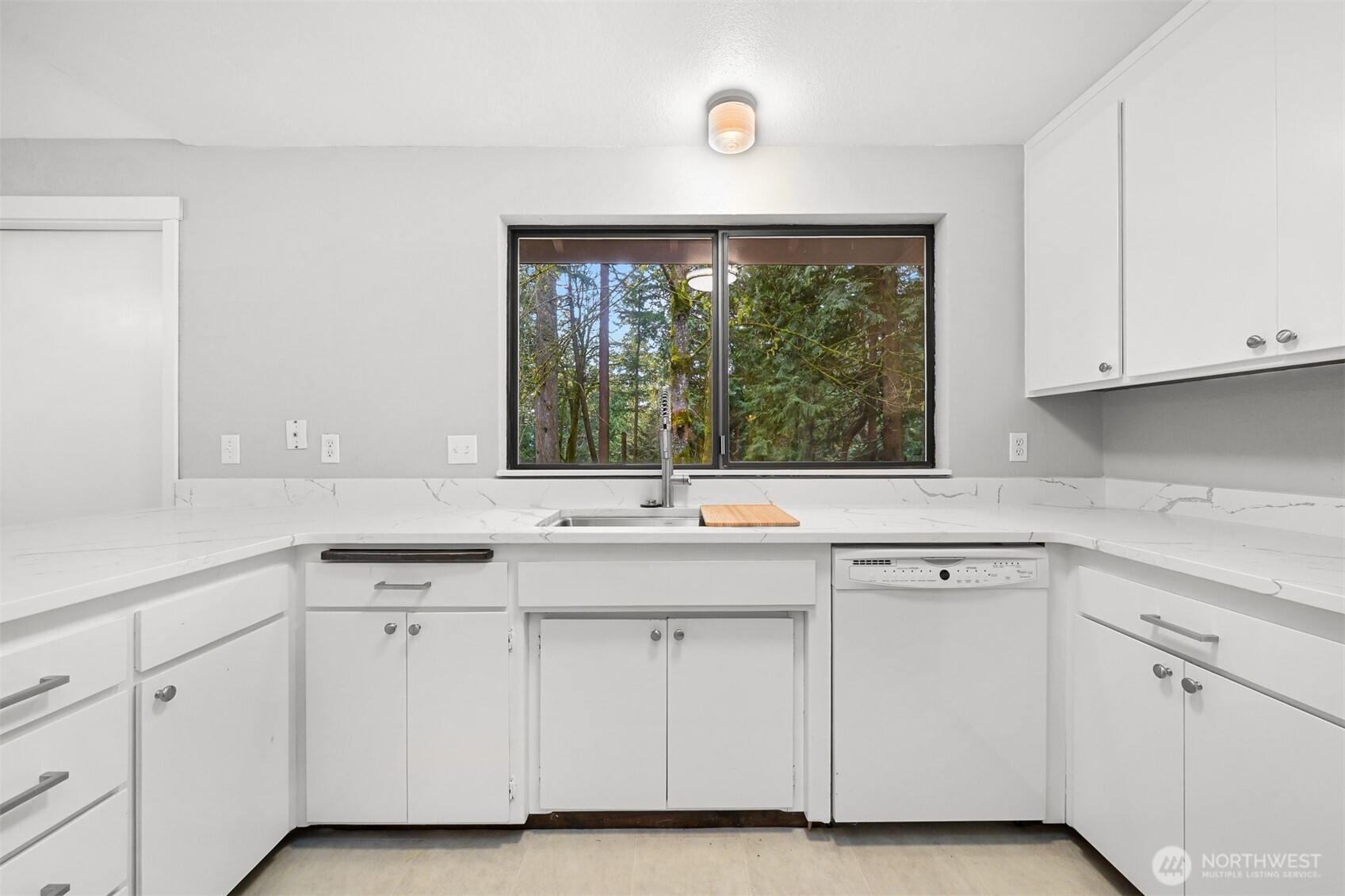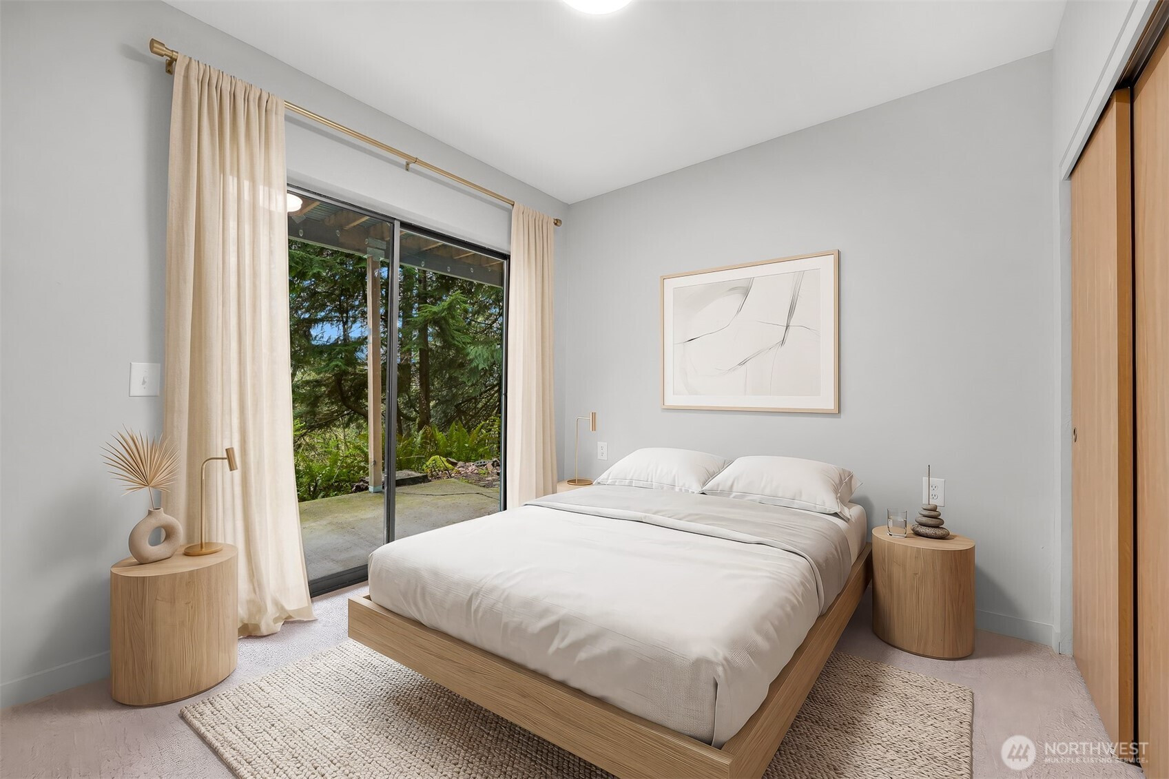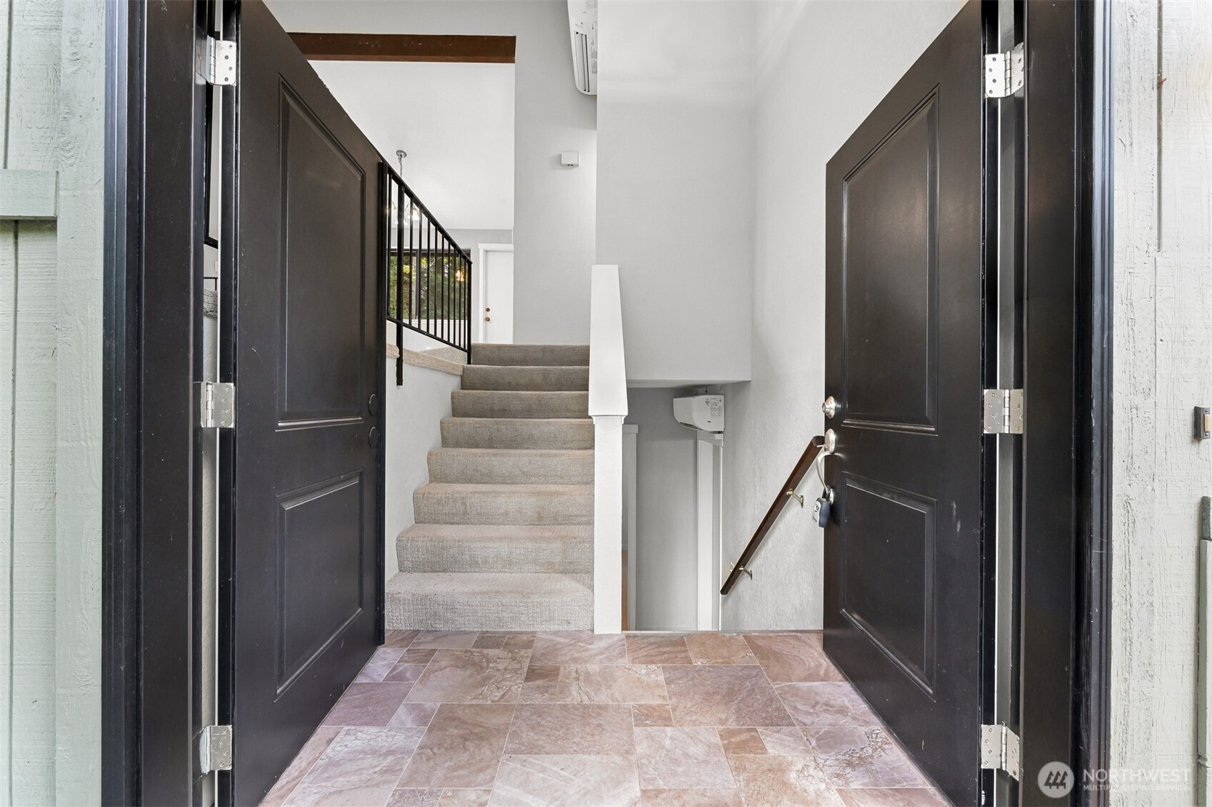 Nestled among the trees, this home offers a true sense of privacy and tranquility on a large triple lot. Spacious open-concept layout connects the living, dining, & kitchen creating a true entertainer’s dream. Soaring vaulted ceilings with exposed wood beams create a warm, inviting space, while windows on every side frame peaceful forest views. Double doors welcome you into your own private retreat, where indoor/outdoor living shines with a spacious, updated deck just off the dining room. New electric hot water heater and new mini split system on both levels installed in 2025, fresh carpet, attached garage, 3 bedrooms & 2.5 baths, this home truly has it all.