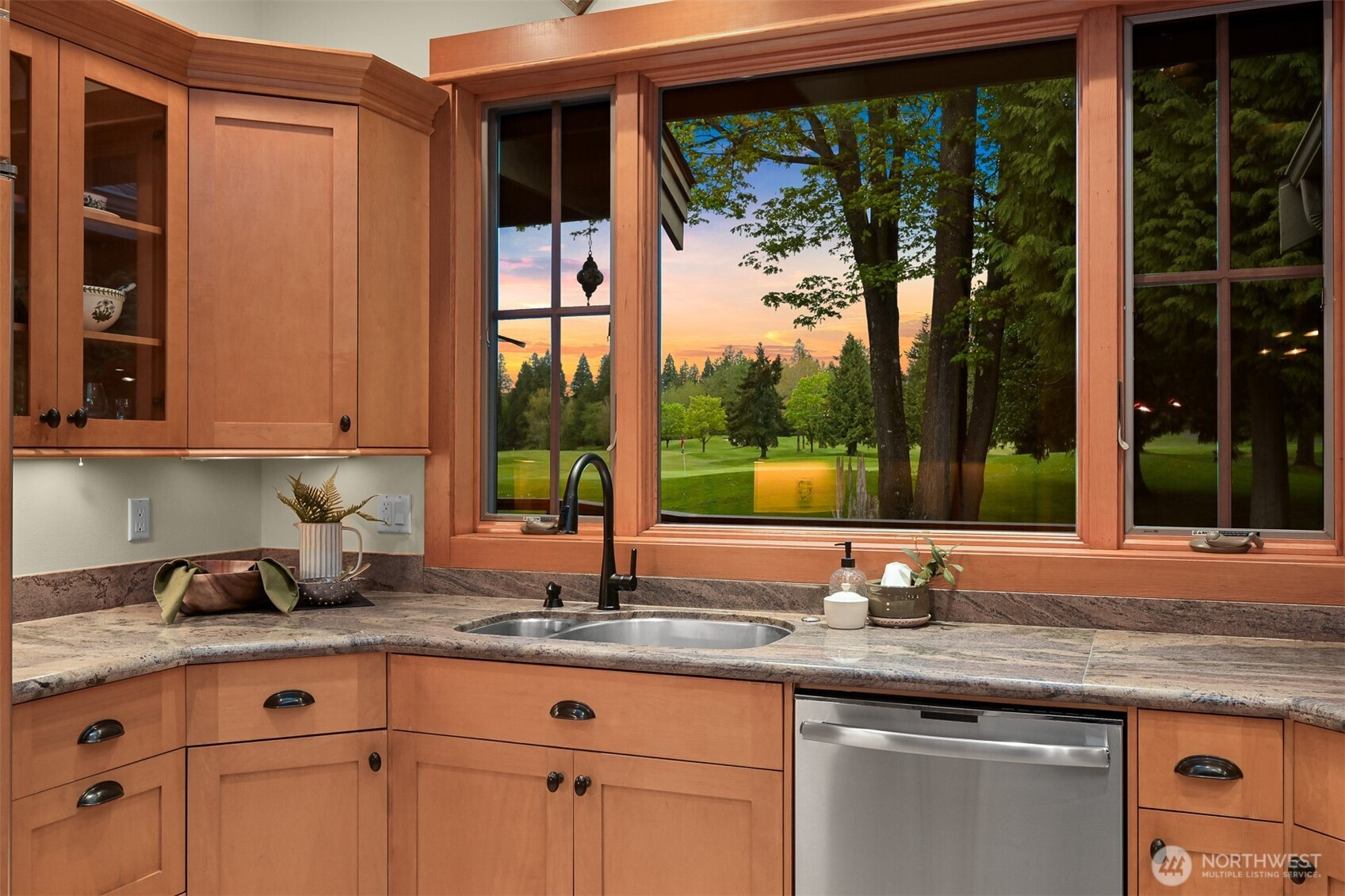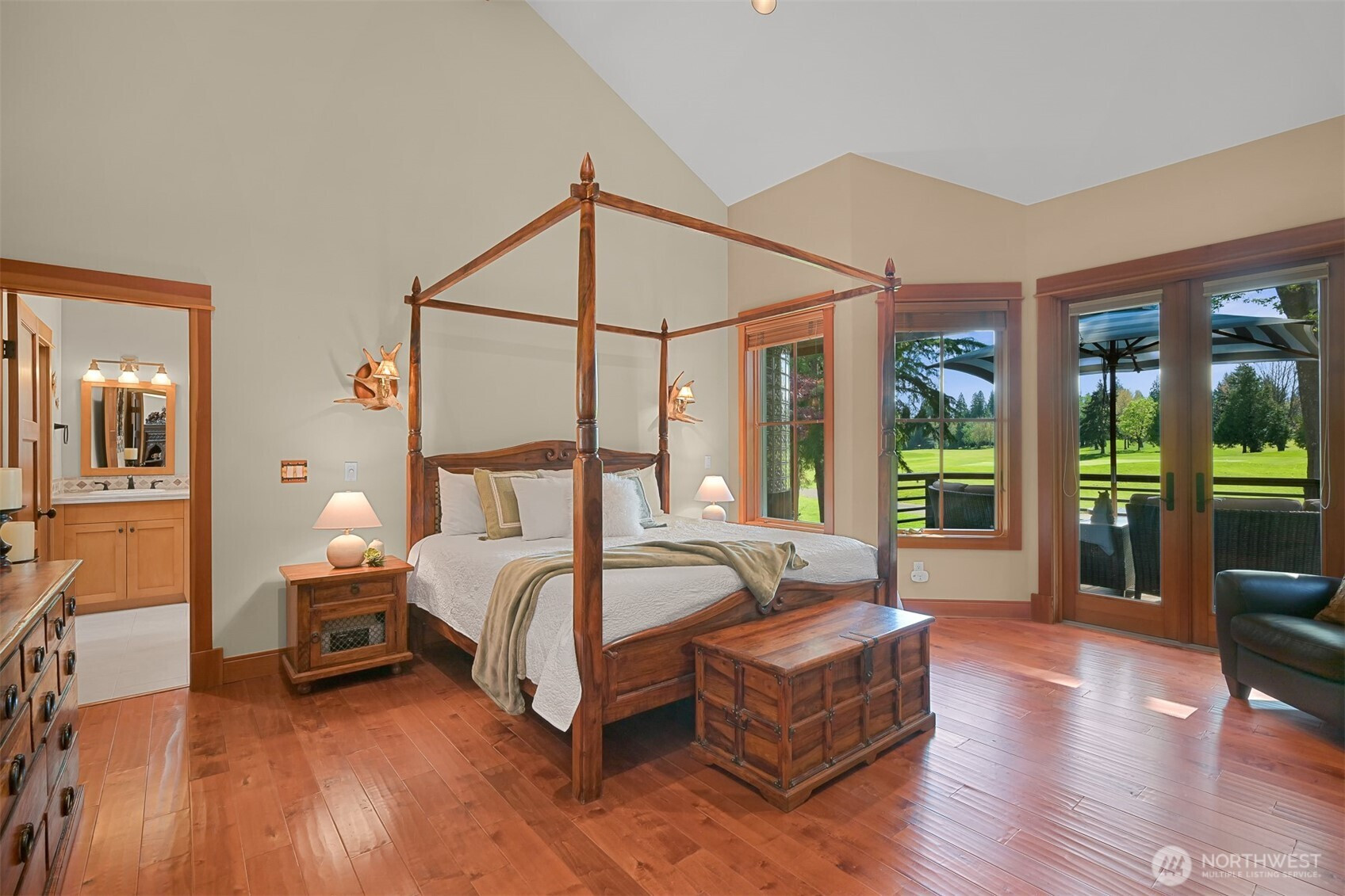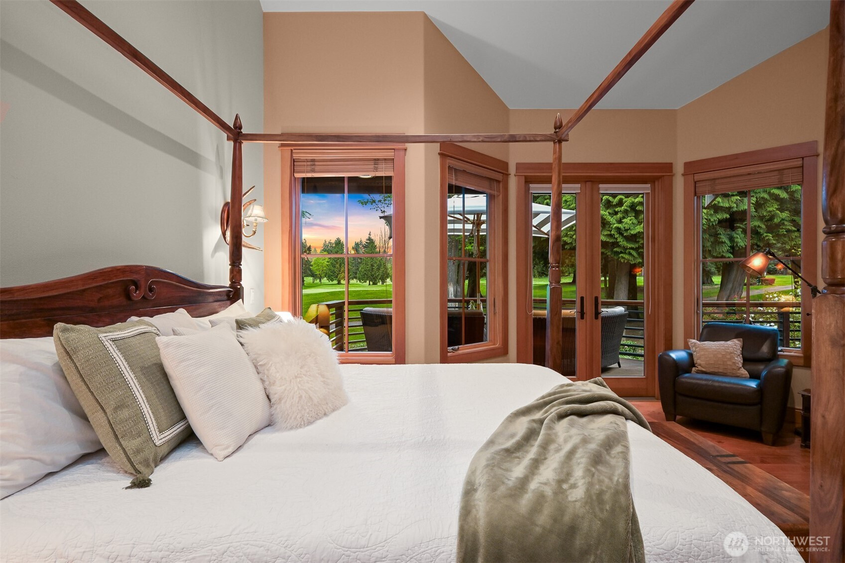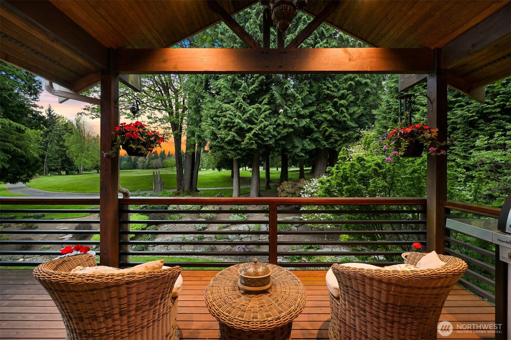 Luxury living on the 8th Green in Semiahmoo. Timeless elegance and exceptional craftsmanship define this custom-designed residence by a respected design firm. It's perfectly positioned to capture sweeping south facing views across Semiahmoo’s 8th and 9th fairways. Nestled in one of the community’s most peaceful and sought after settings, this private retreat offers expansive decks, vibrant landscaping, and an Arnold Palmer designed golf course vistas. Inside, quality and artistry shine throughout. The great room showcases rich fir millwork, striking cross beams and a dramatic floor-to-ceiling stone wood-burning fireplace. Wood-clad Andersen windows beautifully frame breathtaking views. The chef’s kitchen includes premium appliances such as a Sub-Zero refrigerator, Viking range, generous prep space and bar seating. Skylights fill the home with natural light complemented by hydronic radiant heat ensures year-round comfort. The main level offers an oversized office and a luxurious primary suite with spa-inspired bath, walk-in shower, spacious closet and private deck access. The lower level offers exceptional flexibility with private guest quarters, a bonus room with wet bar, refined bath, sophisticated wine cellar, heated 250 sqft shop and a three-car garage. Pre-inspected and meticulously maintained. This rare property is ideal for multi-generation living, gracious entertaining or simply enjoying the lifestyle, just minutes to the clubhouse, golf, trails, beaches and marina.