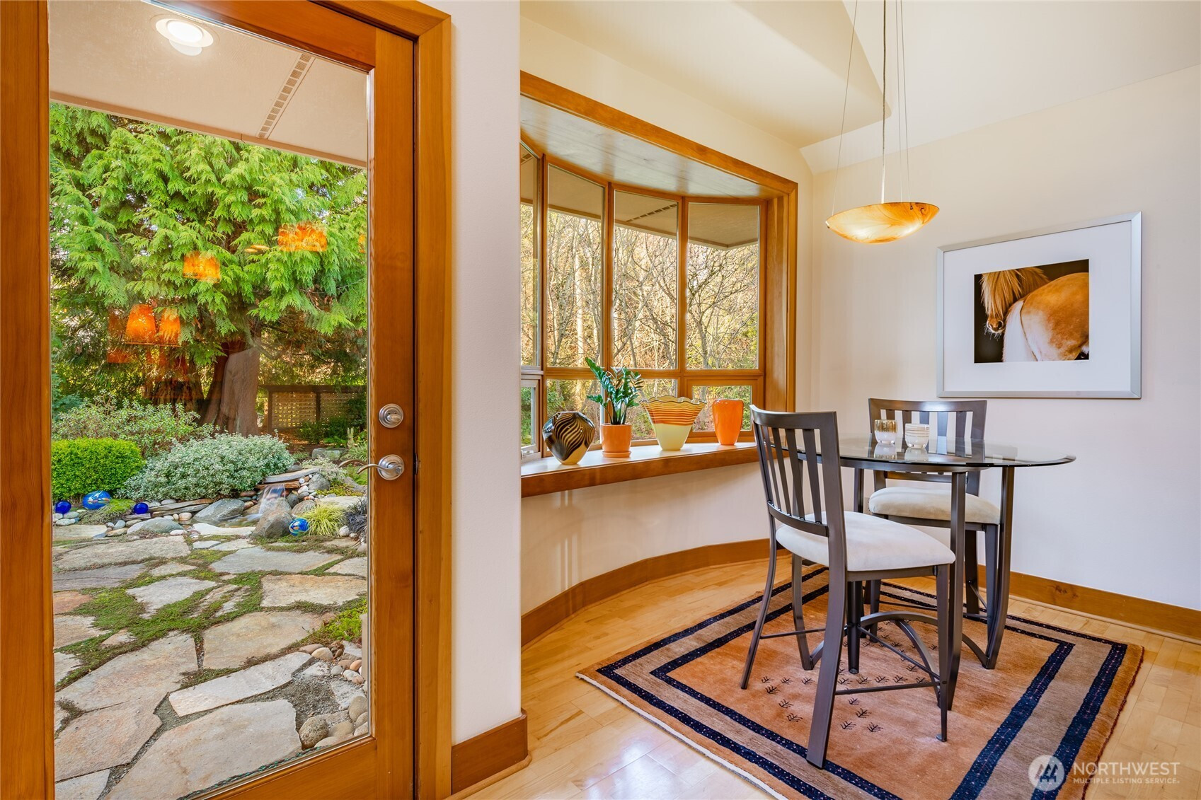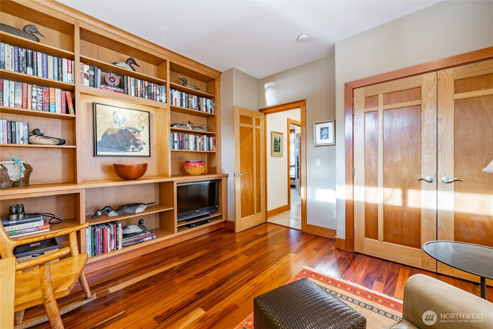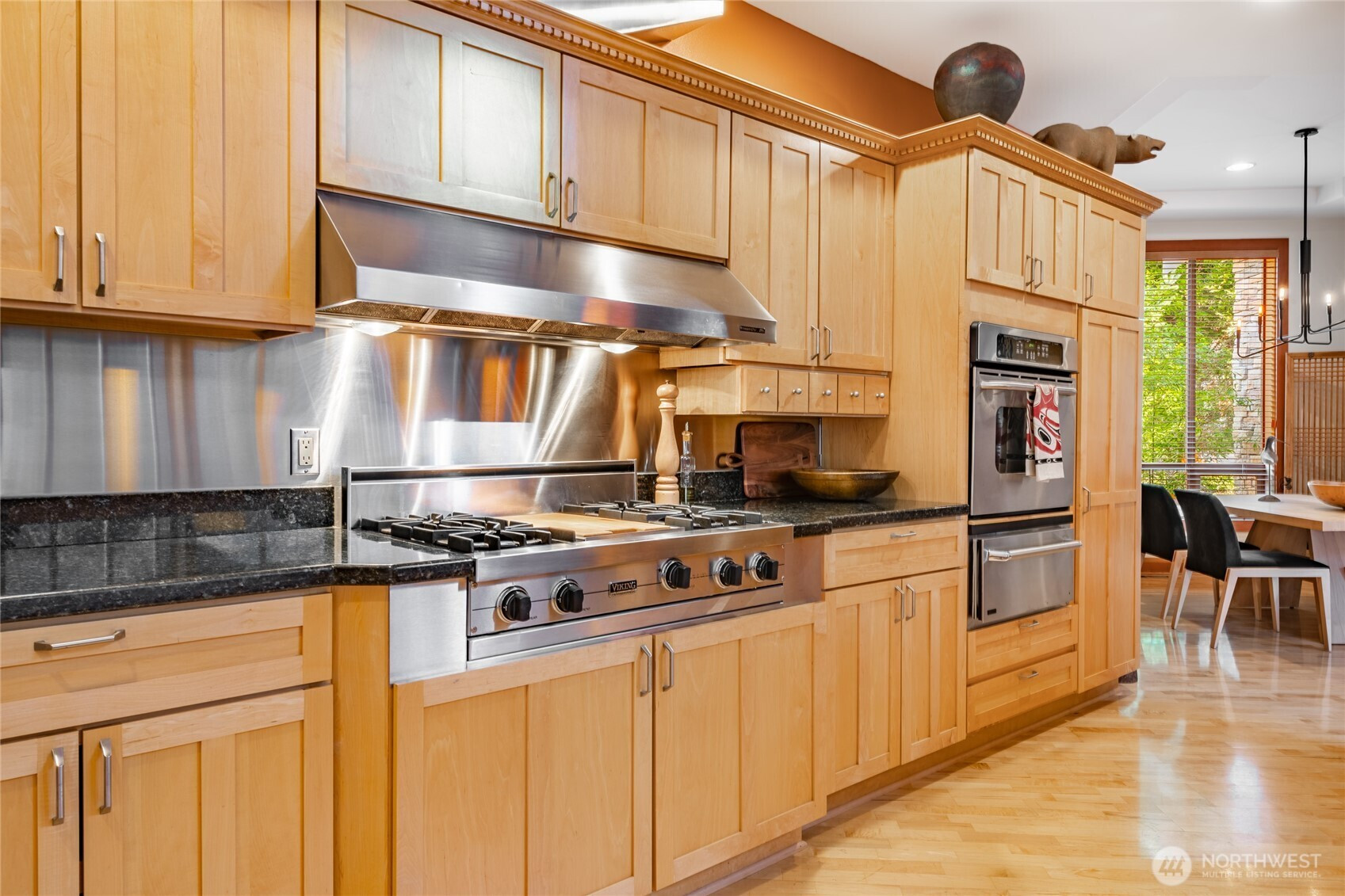 Quiet and private--backing up to permanent open space--this single-story custom home has been meticulously cared for. Classic Northwest craftsman design with a slight contemporary flair. Western sun exposure allows for lots of light throughout the home in the well placed windows. The backyard stone patio is a room in itself. This will not disappoint. Unique--in a good way--flowing floor plan is comfortable and easy to live in. The design, exterior windows, and skylights capture the lush landscaping with a "zen" feel, and the home reflects the outdoor beauty in a calm, serene way. Excellent workspace in the open kitchen with Viking appliances. The breakfast bar even comes with custom barstools! Three fireplaces create an inviting space in the great room/living room (which can be almost anything you want) and the primary. There is texture and style in the design choices of original maple hardwood floors, travertine tile and recently added Brazilian cherry floors in the den. Exceptional care from the ground up--all new insulation--new presidential composition roof and furnace only two years old. This is a custom home with a beautiful entry off a quiet interior street and yet easy walking distance to the golf club and surrounding trails. Always maintained to the highest quality this custom home is a rare find in todays marketplace.