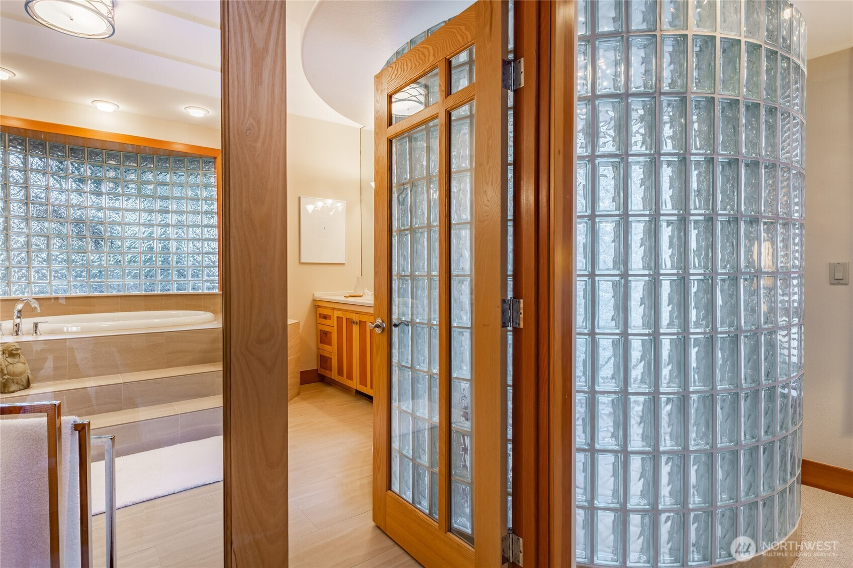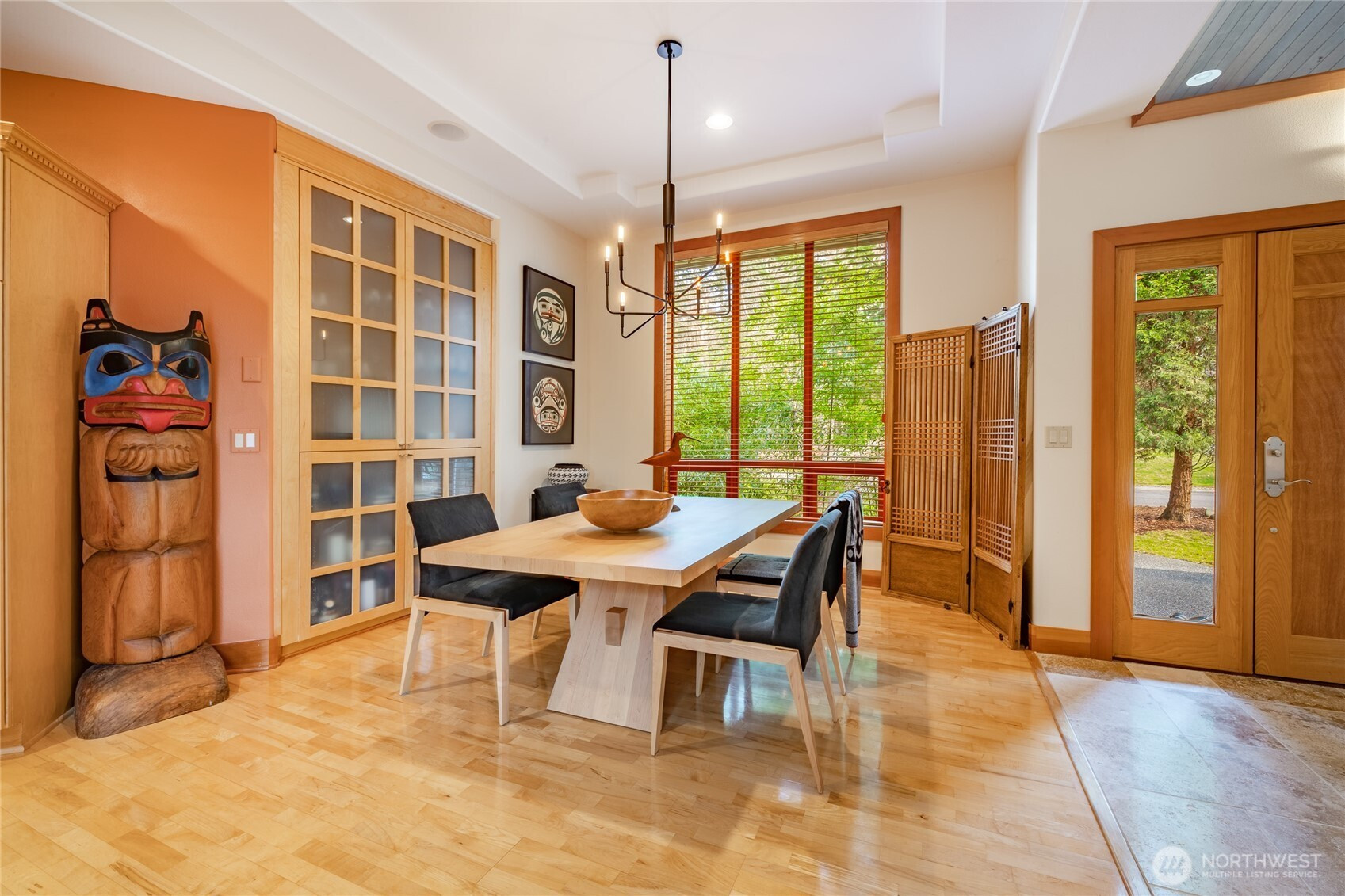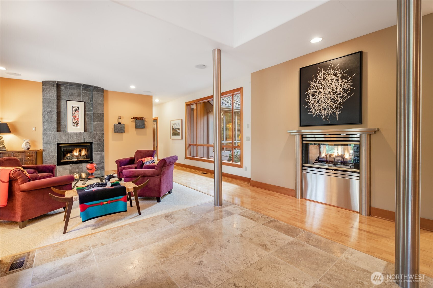 Quiet and private--backing up to permanent open space--this single-story custom home has been meticulously cared for. Classic Northwest craftsman design with a slight contemporary flair. Western sun exposure allows for lots of light throughout the home in the well placed windows. The backyard stone patio is a room in itself. This will not disappoint. Unique--in a good way--flowing floor plan is comfortable and easy to live in. The design, exterior windows, and skylights capture the lush landscaping with a "zen" feel, and the home reflects the outdoor beauty in a calm, serene way. Excellent workspace in the open kitchen with Viking appliances. The breakfast bar even comes with custom barstools! Three fireplaces create an inviting space in the great room/living room (which can be almost anything you want) and the primary. There is texture and style in the design choices of original maple hardwood floors, travertine tile and recently added Brazilian cherry floors in the den. Exceptional care from the ground up--all new insulation--new presidential composition roof and furnace only two years old. This is a custom home with a beautiful entry off a quiet interior street and yet easy walking distance to the golf club and surrounding trails. Always maintained to the highest quality this custom home is a rare find in todays marketplace.