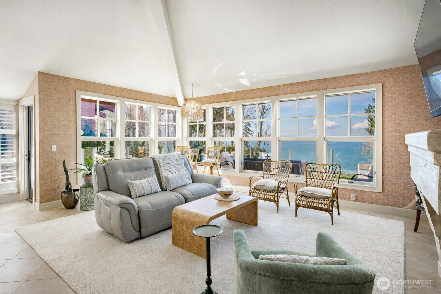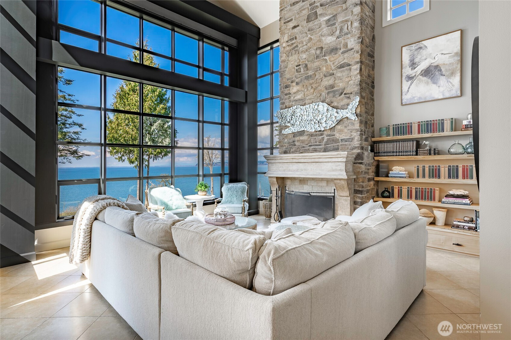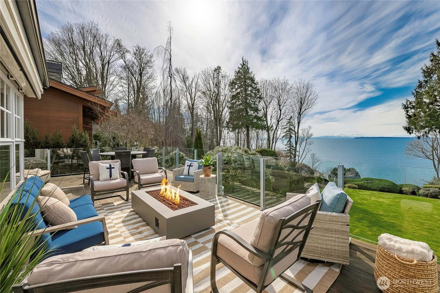 What if home felt like this every day—wide-open views across the water, boats drifting by, and sunsets that stop you in your tracks? Tucked within the sought-after Boundary Ridge neighborhood, this is widely considered one of the very best waterfront locations in all of Semiahmoo. The setting is what makes this home truly special. A shy acre of level, beautifully maintained grounds—rare for waterfront—gives you space to gather, play, garden, or simply enjoy the quiet. It feels private, peaceful, and a world away, yet everything Semiahmoo offers is just moments from your door - golf, marina, & endless outdoor activities. Inside, natural light pours through walls of windows, drawing your eye straight to the water from nearly every room. The layout is easy and comfortable, with main-level living that includes a spacious primary suite and multiple places to relax or entertain—from the great room to recreation spaces. The kitchen sits at the heart of the home, opening to a casual dining area and inviting living space, while a built-in corner office makes working from home feel effortless. Private and large guest suites on the lower level offer a welcoming retreat for visitors. Step outside and you’ll understand why this home stands out—an expansive deck and patio positioned for long summer evenings, quiet mornings, and year-round sunsets over the bay. Homes like this are rare—unobstructed views, a level yard, and arguably the best waterfront setting in Semiahmoo.