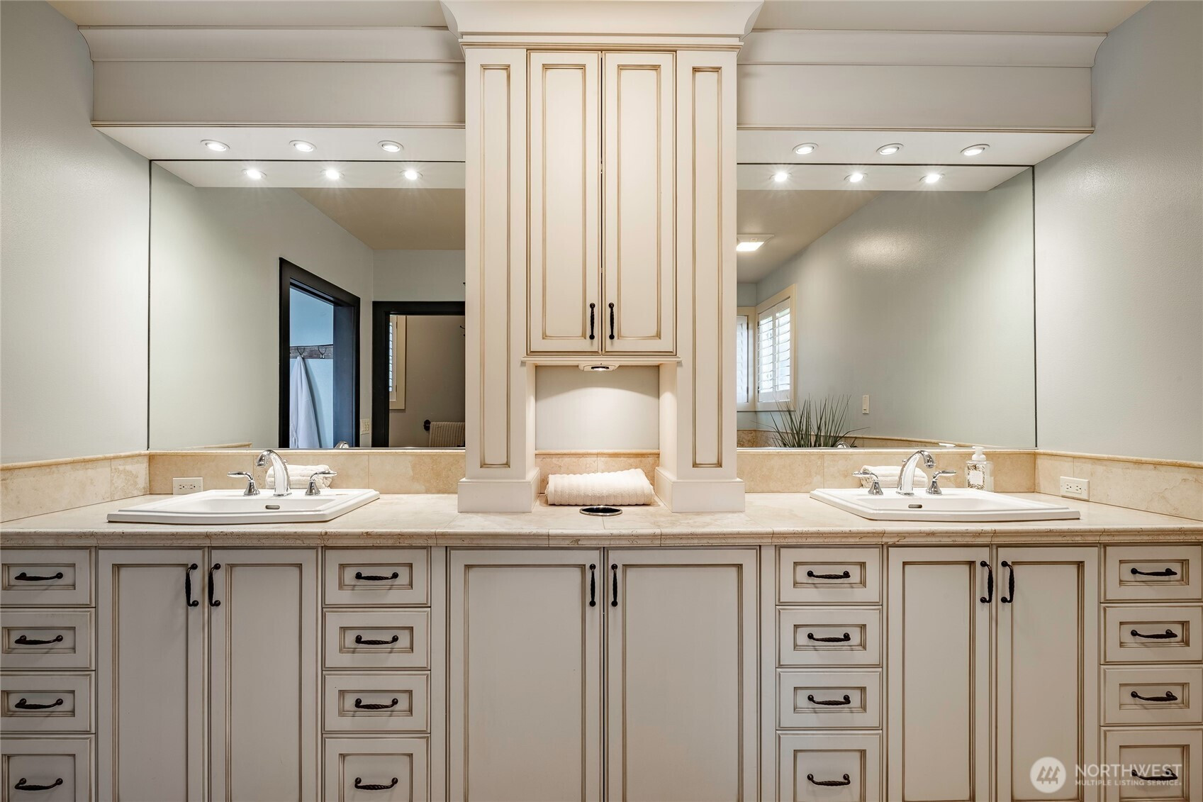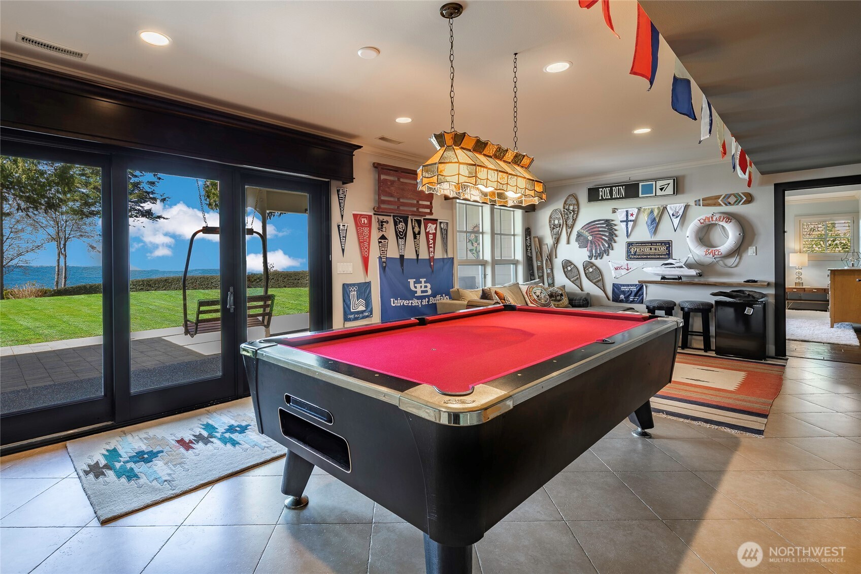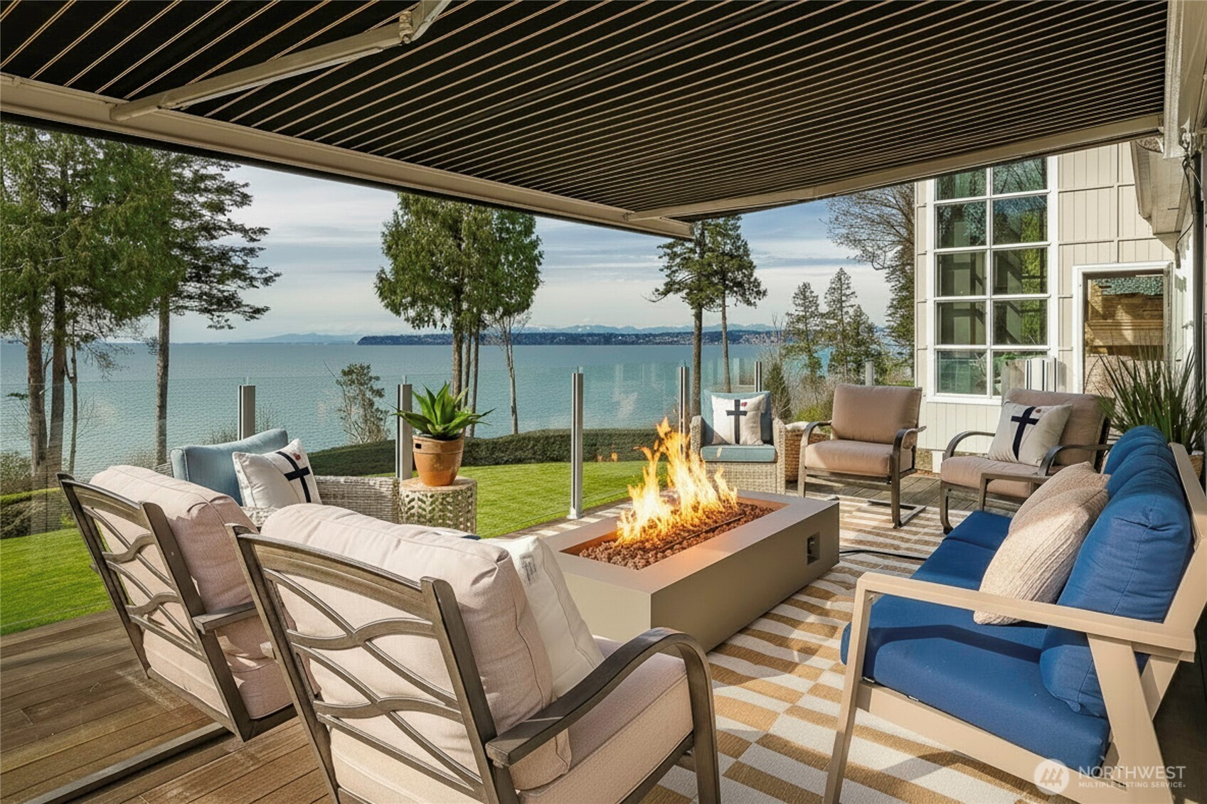 What if home felt like this every day—wide-open views across the water, boats drifting by, and sunsets that stop you in your tracks? Tucked within the sought-after Boundary Ridge neighborhood, this is widely considered one of the very best waterfront locations in all of Semiahmoo. The setting is what makes this home truly special. A shy acre of level, beautifully maintained grounds—rare for waterfront—gives you space to gather, play, garden, or simply enjoy the quiet. It feels private, peaceful, and a world away, yet everything Semiahmoo offers is just moments from your door - golf, marina, & endless outdoor activities. Inside, natural light pours through walls of windows, drawing your eye straight to the water from nearly every room. The layout is easy and comfortable, with main-level living that includes a spacious primary suite and multiple places to relax or entertain—from the great room to recreation spaces. The kitchen sits at the heart of the home, opening to a casual dining area and inviting living space, while a built-in corner office makes working from home feel effortless. Private and large guest suites on the lower level offer a welcoming retreat for visitors. Step outside and you’ll understand why this home stands out—an expansive deck and patio positioned for long summer evenings, quiet mornings, and year-round sunsets over the bay. Homes like this are rare—unobstructed views, a level yard, and arguably the best waterfront setting in Semiahmoo.