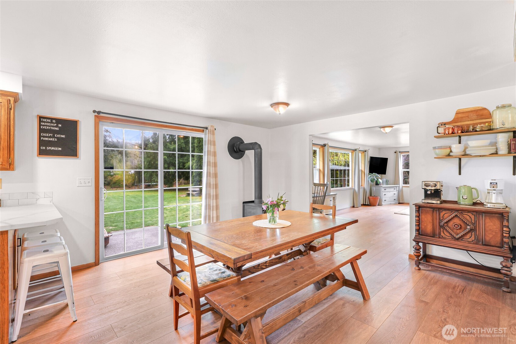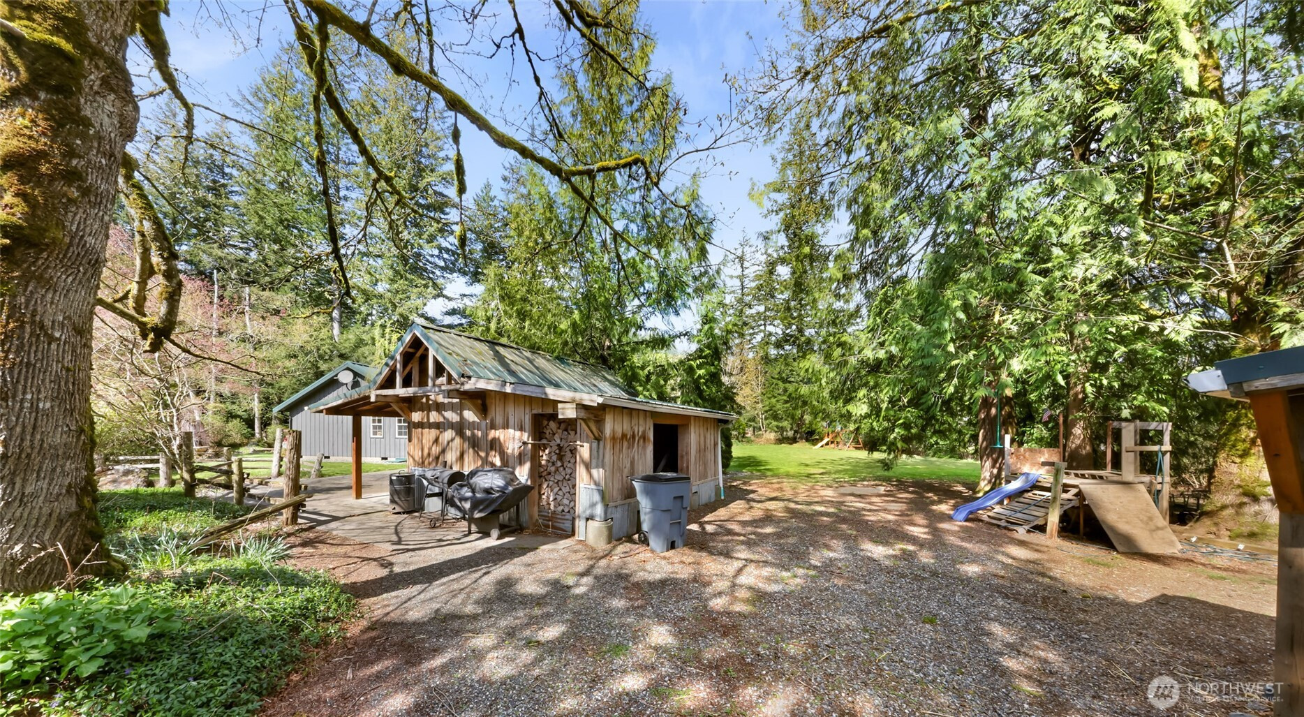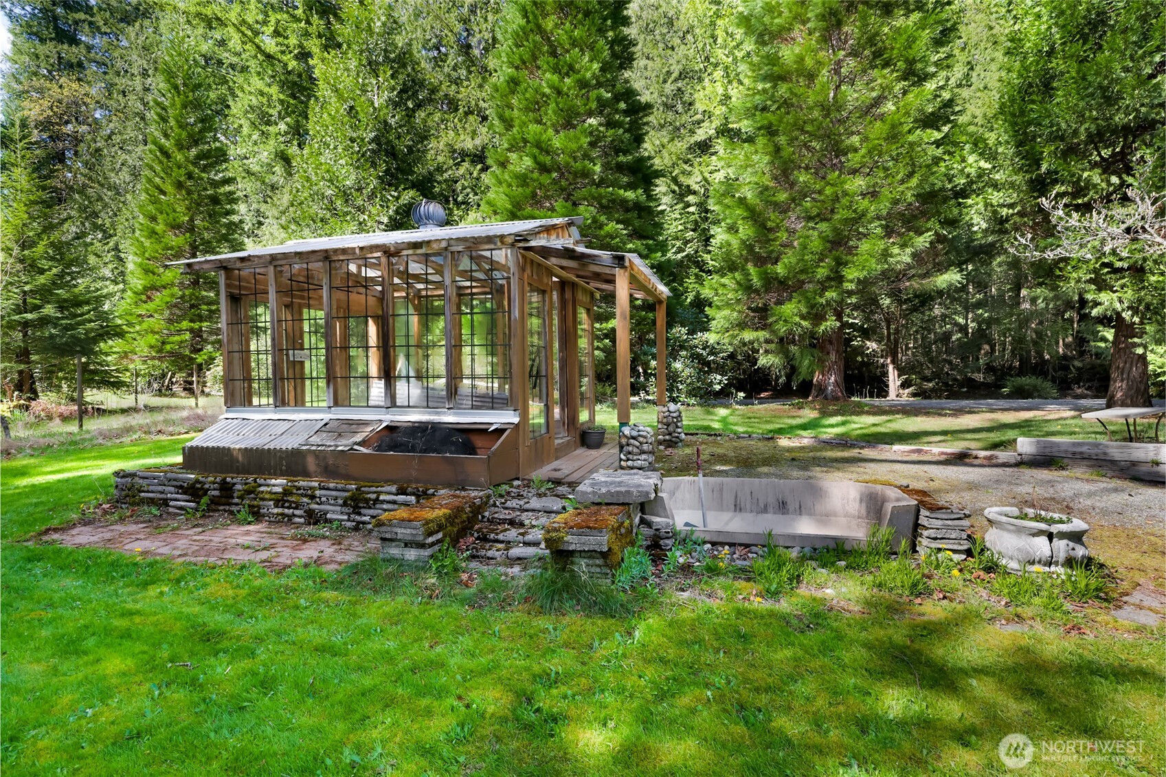 Nestled in the foothills among tall fir and cedar trees awaits this well-maintained single level home & 2,000 sf shop resting in a peaceful, park like rural setting on 3.49 acres. Plenty of room to entertain guests in the 2 living spaces kept cozy warm with the wood stove, or outside on the huge patio and backyard. Live the perfect holistic lifestyle complete with a chicken house, a BBQ/firewood outbuilding, fishpond, fruit tree orchard & dreamy green house with tons of room to park your toys and tinker in the expansive, multi-level shop. Enjoy the nearby amenities including hiking, biking, fishing, skiing, snowboarding, horseback riding, river rafting & Silver Lake Park. Shop has a bathroom, finished office area upstairs which has AC/heat, air compressor, and a 220v hookup. Home is also wired for a generator. Lots of water faucets to accommodate this large property. The pond even has a waterfall feature. Excellent opportunity for a home-based business and plenty of room for all your hobbies.