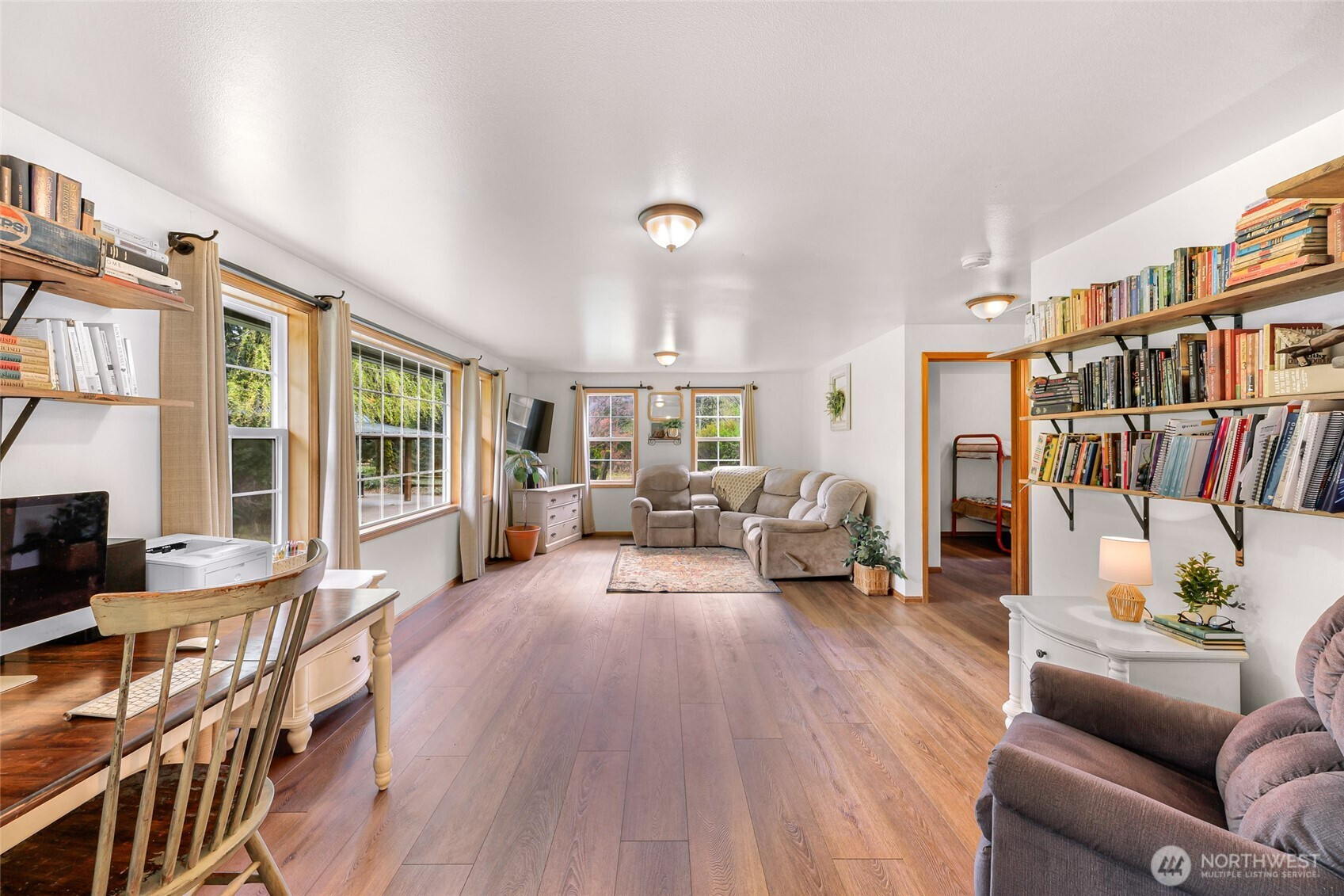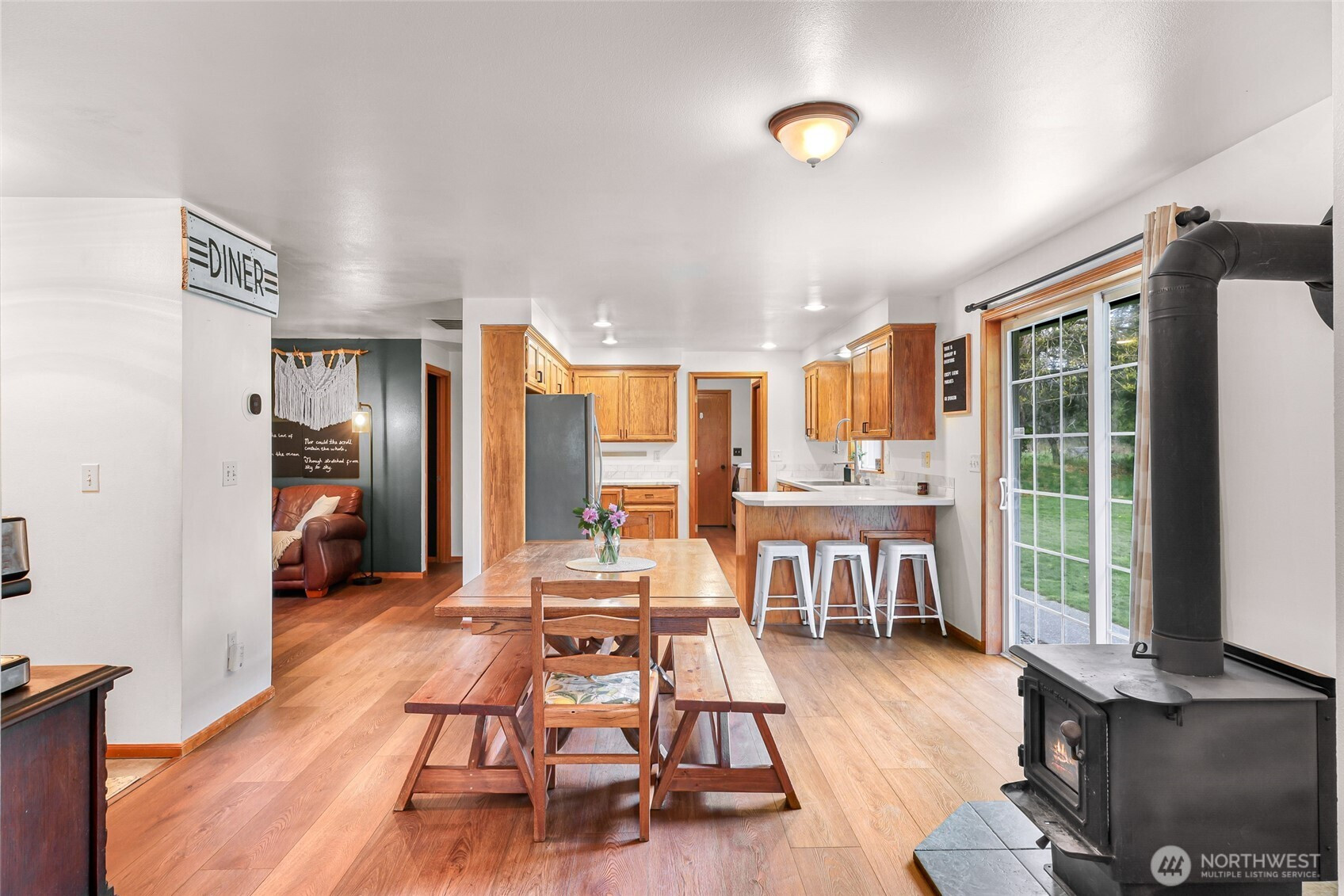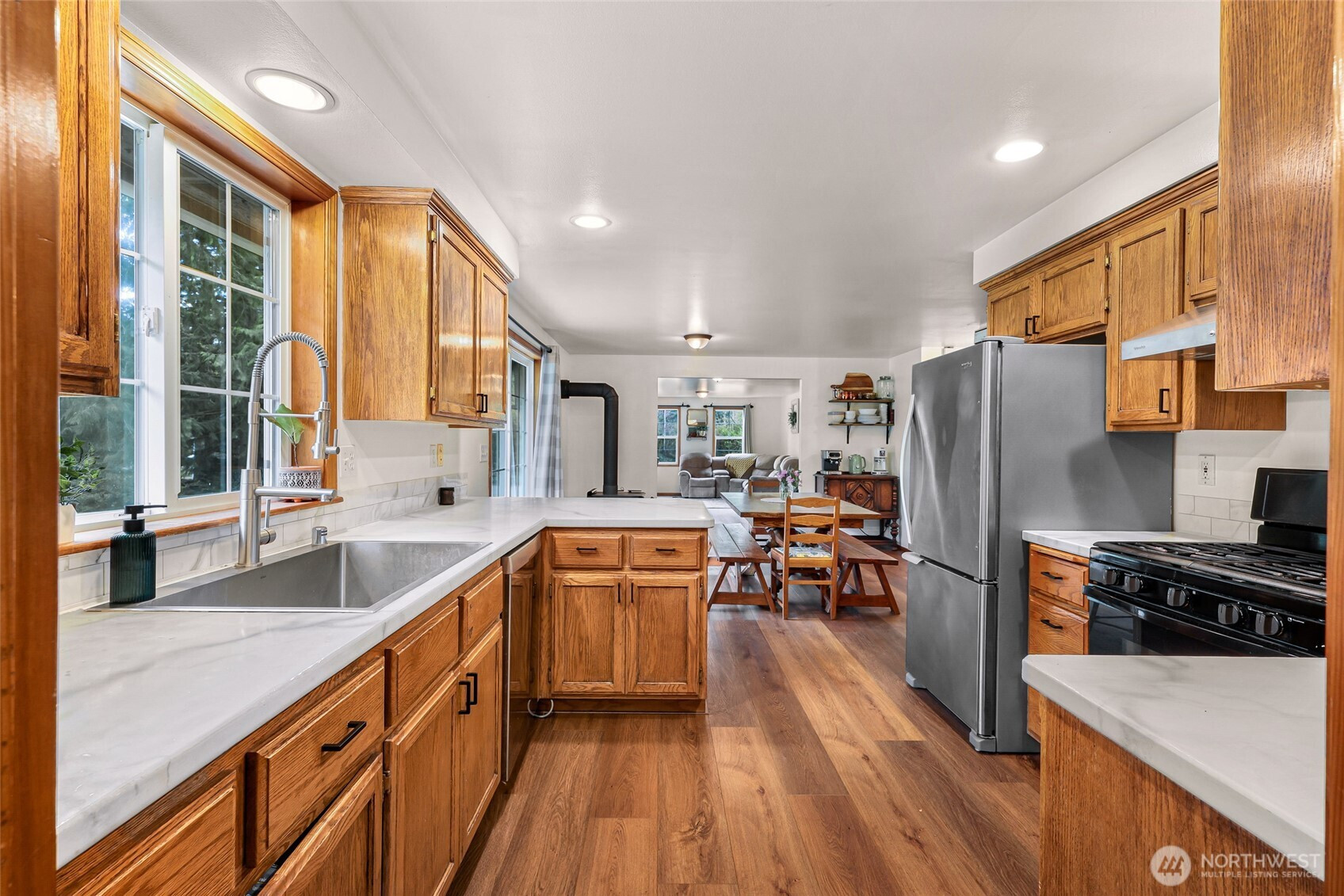 Nestled in the foothills among tall fir and cedar trees awaits this well-maintained single level home & 2,000 sf shop resting in a peaceful, park like rural setting on 3.49 acres. Plenty of room to entertain guests in the 2 living spaces kept cozy warm with the wood stove, or outside on the huge patio and backyard. Live the perfect holistic lifestyle complete with a chicken house, a BBQ/firewood outbuilding, fishpond, fruit tree orchard & dreamy green house with tons of room to park your toys and tinker in the expansive, multi-level shop. Enjoy the nearby amenities including hiking, biking, fishing, skiing, snowboarding, horseback riding, river rafting & Silver Lake Park. Shop has a bathroom, finished office area upstairs which has AC/heat, air compressor, and a 220v hookup. Home is also wired for a generator. Lots of water faucets to accommodate this large property. The pond even has a waterfall feature. Excellent opportunity for a home-based business and plenty of room for all your hobbies.