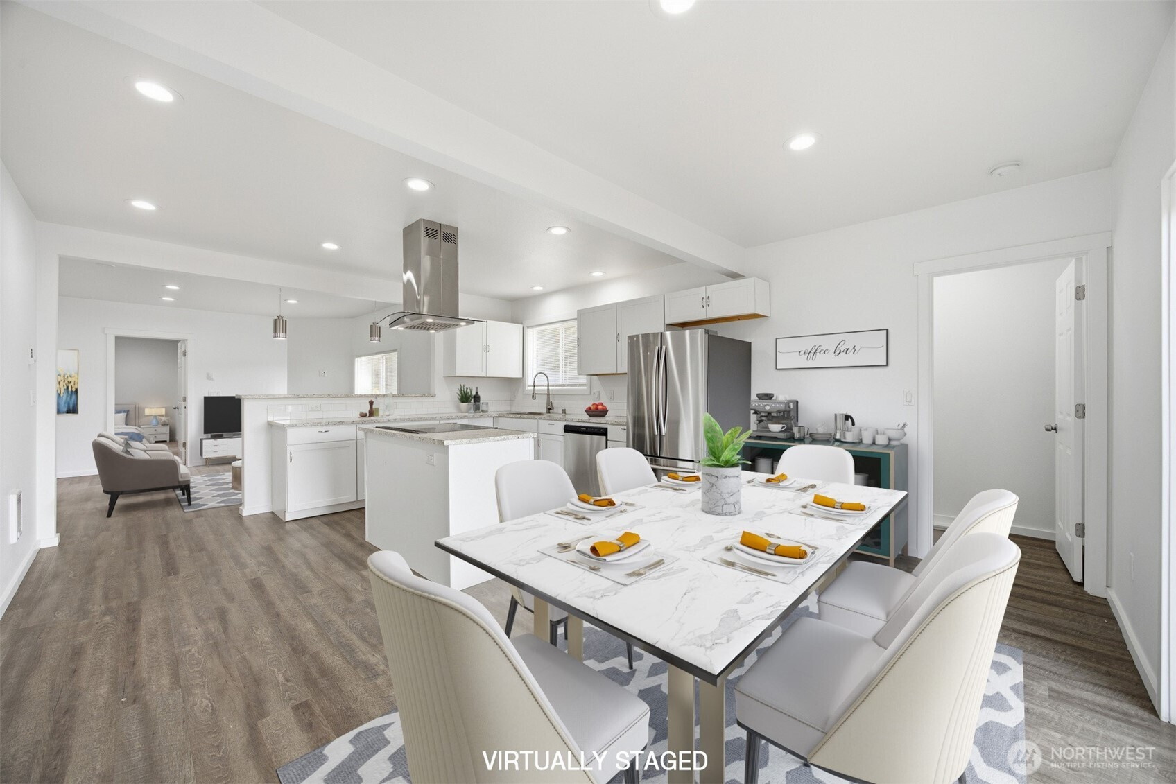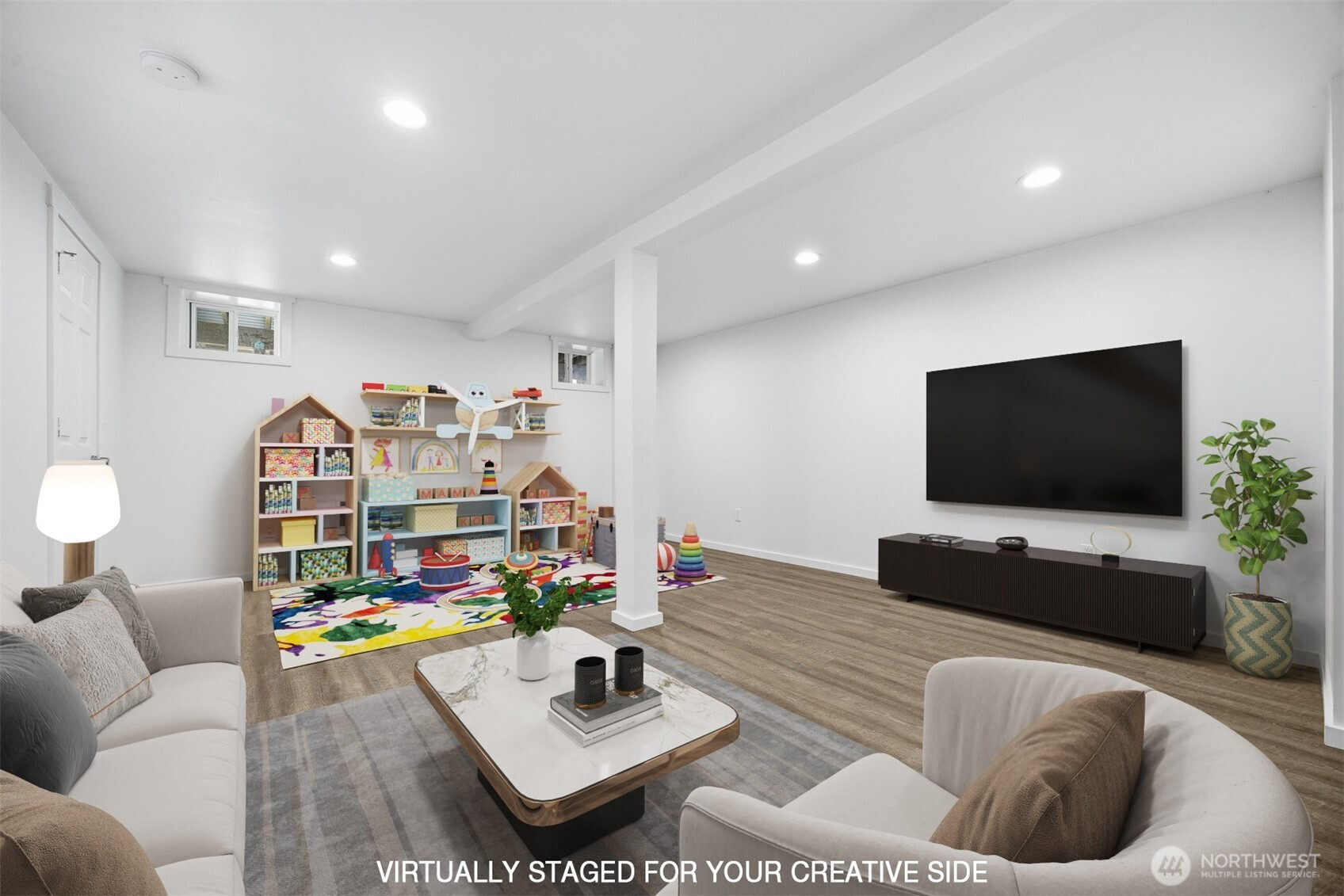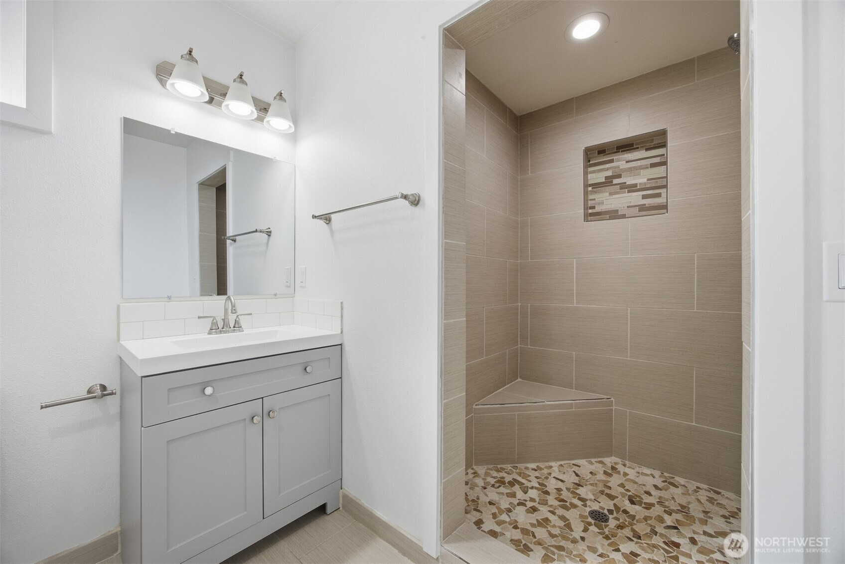 A rare offering-Stick-built, move-in ready 1,652 sq ft home set in the 55+ Lake Samish Terrace community, completely remodeled in 2020 with a new roof, updated electric and plumbing, new flooring, cabinets, and appliances. The open-concept layout includes two primary bedrooms each with tiled walk-in showers, plus a full finished basement perfect for overnight guests, a family room, or hobby space. Main level flows to two large decks — a covered front deck with mountain views and a back deck with views of the lake — the sunny yard offers plenty of space to plant a garden and a separate shop/shed provides much needed storage. Enjoy easy access to the community public dock for fishing, kayaking, and paddleboarding — an ideal, affordable option for those ready to downsize. Space rent includes water, sewer, and basic cable; this home delivers luxury, comfort and value in one exceptional package.