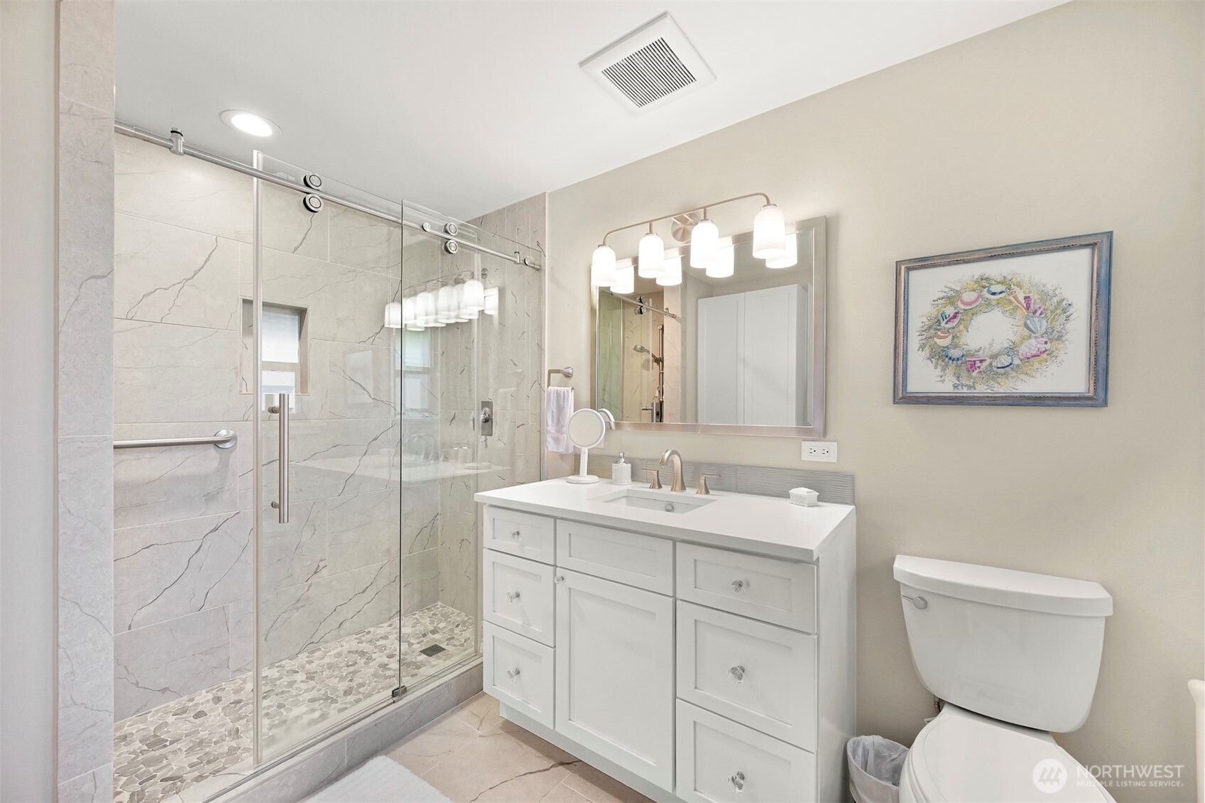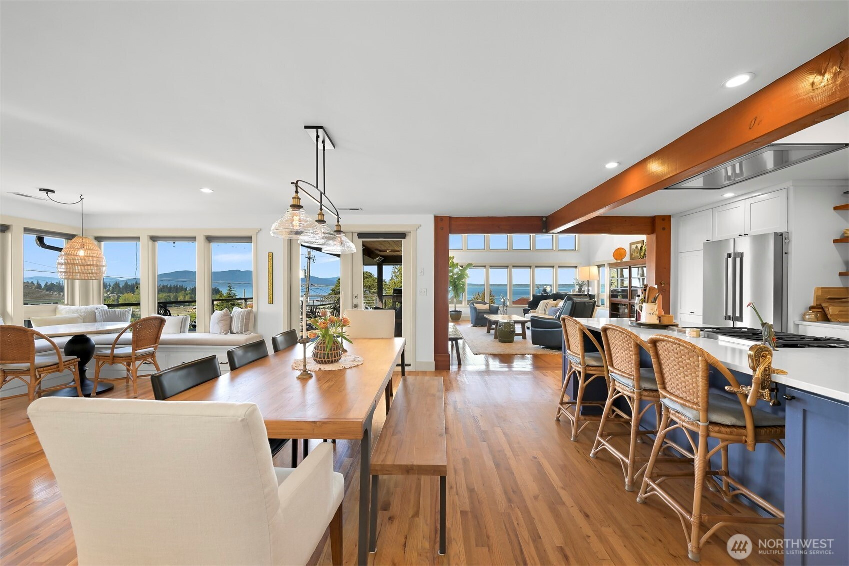 Discover an exceptional South Hill residence just blocks from the charm of Historic Fairhaven, Boulevard Park, scenic trails, and pristine beaches. Designed to capture its breathtaking surroundings, this home features expansive floor-to-ceiling windows and a stunning rooftop deck with sweeping views of the bay, city and the San Juan Islands.The main level offers effortless single-level living, while the lower level provides a spacious bonus room, additional bedroom, and full bath—perfect for guests or flexible living.Adding to its appeal, the property includes a private 2-bedroom, 1-bath ADU with its own entrance and address, currently generating $1,500 per month in rental income—an ideal opportunity for supplemental income or multi-generational living.Thoughtfully maintained and extensively updated in recent years, improvements include a new roof, upgraded heating system, refreshed flooring, a beautifully remodeled kitchen, and more.A rare blend of location, versatility, and refined coastal living—this is South Hill at its finest.