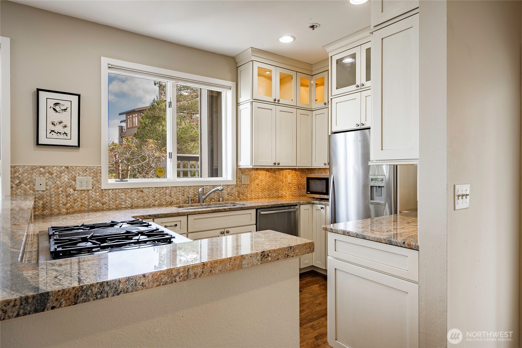If you’ve been waiting for a ground-floor Beachwalker Villa, this is the one. These rarely come up—and once you’re here, it’s easy to see why. Just 30 steps from the water’s edge, this condo puts you right in the middle of everything that makes Semiahmoo so special. Walk out your door, feel the salt air, and in seconds you’re on the beach watching the sunset or taking in the twinkling lights of White Rock. Inside, the space feels open and easy, with walls of windows that keep the views front and center. Classic hardwood floors, granite surfaces, and detailed tile work give the home a quality feel throughout. The layout just works—open living, two bed/2 bath that make it easy for everyday living or hosting guests. But honestly, it’s the outdoor space that steals the show. A gated courtyard patio greets you at the entry, and out back, the expansive 50’ west-facing patio is something you just don’t find. It’s like having your own private front row seat to the water. From here, you’re a short walk to the marina, resort, and miles of shoreline trails. Grab coffee, go for a bike ride, or just wander the beach—it’s all right here. Canada is about 15 minutes away for a quick change of scenery. Beachwalker Villas also offers a private sport court and storage for kayaks and bikes. Nightly rentals are allowed, giving you flexibility to enjoy it or generate income. This is beach living the way it’s meant to be—simple, beautiful, and just a little hard to leave.