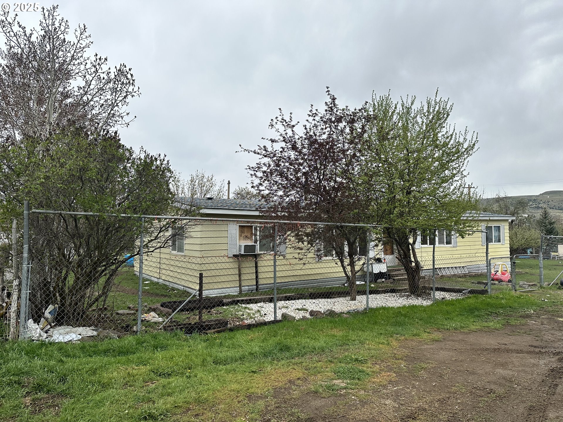 4 adjoining tax lots equal .57 acres in the heart of John Day recreation! One lot has a three bedroom double wide manufactured home with unique qualities, must see to appreciate. Chain link fence outlines entire 1/2 acre property containing fruit trees, asparagus, chicken coop, 4 out buildings, and lots of potential. Laminate flooring installed, and new water heater installed over the last few years. Selling As-Is.