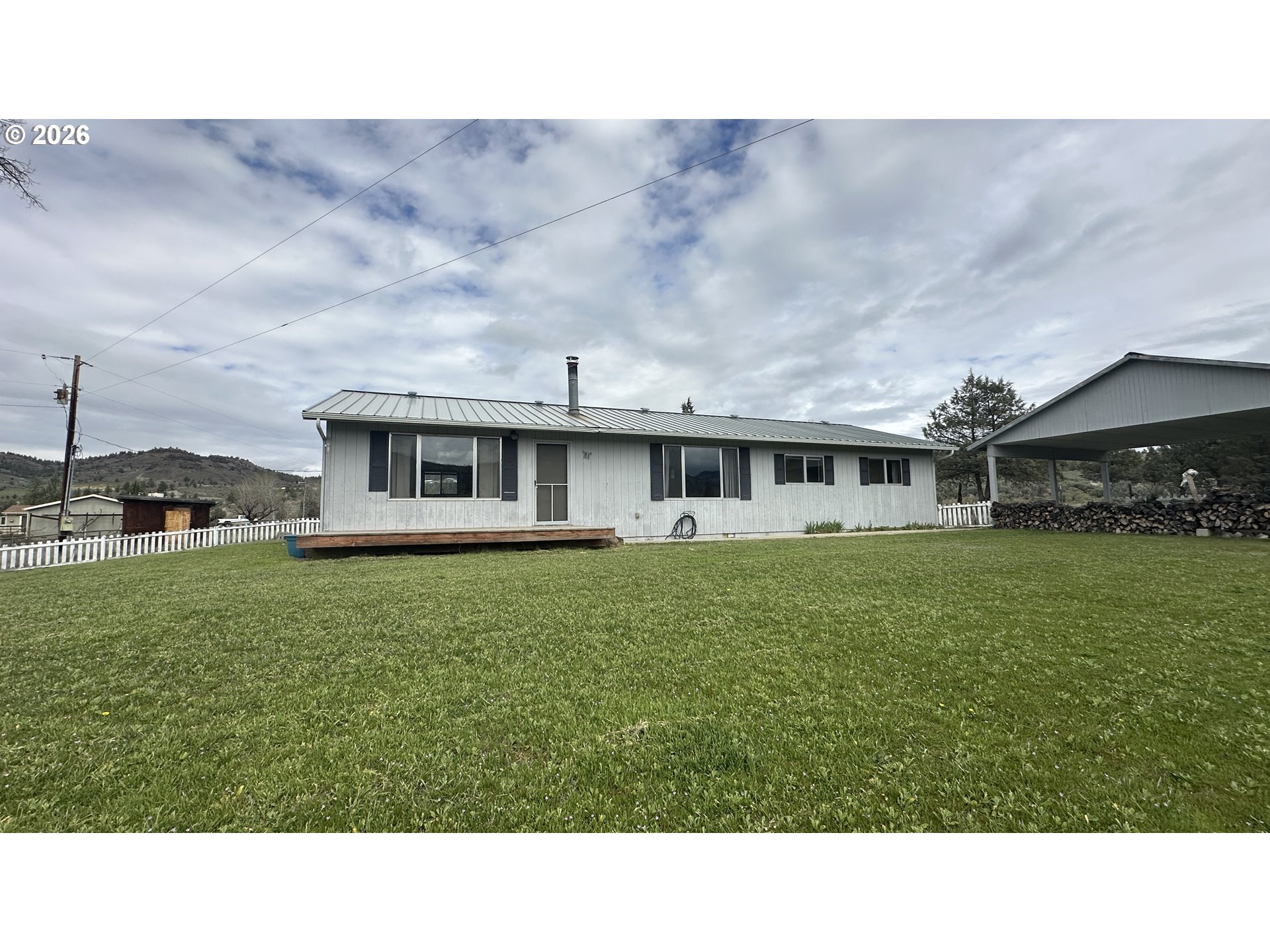 Charming 3 bedroom, 2 bathroom home set on a spacious 0.35-acre lot with beautiful mountain and neighborhood views! This inviting property offers a functional layout with the primary bedroom conveniently located on the main level. Inside, you’ll find a comfortable living space featuring a wood-burning fireplace.The kitchen is equipped with laminate counters and a full suite of appliances including range, oven, range hood, refrigerator, dishwasher, washer, and dryer—making this home move-in ready. Flooring throughout includes a mix of carpet, laminate, and tile, providing both comfort and durability. Additional interior features include ceiling fans and shower/tub combinations in the bathrooms.Stay comfortable year-round with a combination of baseboard, electric, and wood heating options. Outside, enjoy the fully fenced yard with plenty of space for pets, gardening, or outdoor entertaining. The deck offers a great spot to relax and take in the surrounding views.The property sits on a level lot with dirt and gravel road access and includes a detached carport for convenient covered parking. With its versatile features, generous lot size, and scenic setting, this home offers the perfect blend of comfort and rural charm.