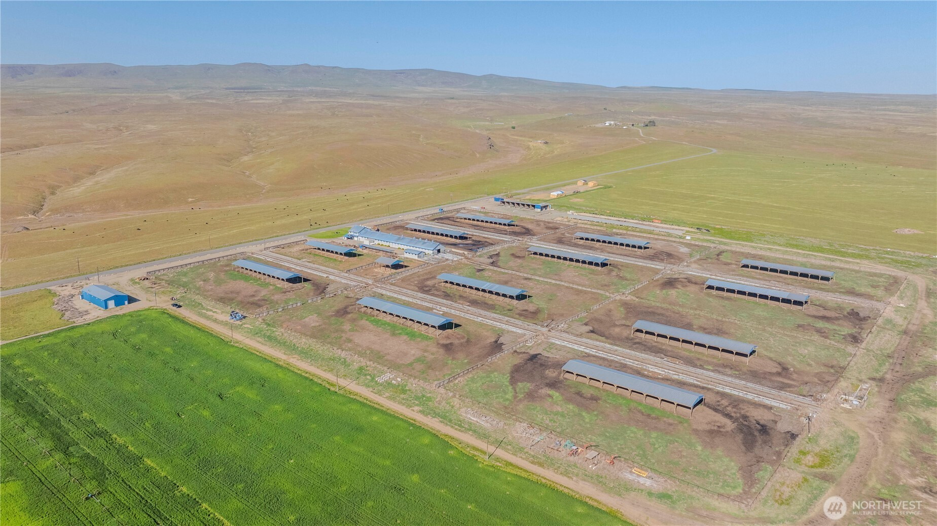 Incredible opportunity to own a dairy operation offering 530 acres with capacity to milk 2400+ dairy cows. Property includes a Double 25 Herringbone Milk Barn, 1000 sf office/living quarters looking down into the milking parlor, Machine Room, Detached Single 9 Hospital Barn, 13 Cow Loafing Sheds, 7 Bay Commodity Barn, 10 thousand ton silage pit, 40’ Truck Scale with office, 5 Bay Mechanical Shop, Flush Manure System with Roller Press, 200 kw diesel generator (main dairy/backup power) and a 50 kw portable generator (for main well backup power) and a Manager Home 1620 sq. ft. which provides 3 bed/2 bath with 3 car garage. Capacity can allow up to 4000 milking and dry cows. 7 parcels total.