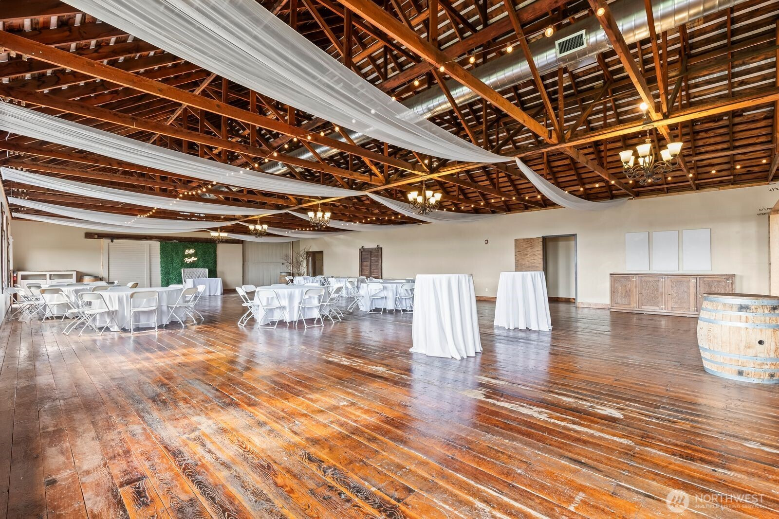 Positioned in the heart of the Upper Yakima Valley, this one-of-a-kind property combines historic character with proven business potential. Once an apple packing warehouse, the building has been fully renovated into a premier wedding and event venue that draws clients year-round. Featuring soaring open-beam ceilings, gleaming plank floors, and expansive gathering spaces, the property is designed to host everything from weddings and corporate events to community celebrations. Its adaptability and scale allow for multiple event formats and guest capacities, ensuring consistent demand throughout the year. The venue’s location in the picturesque Naches Valley places it within close reach of Yakima wine country and regional tourism.