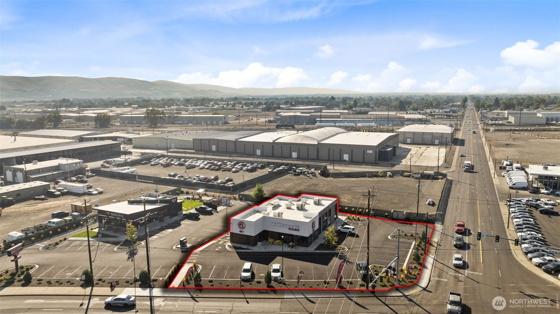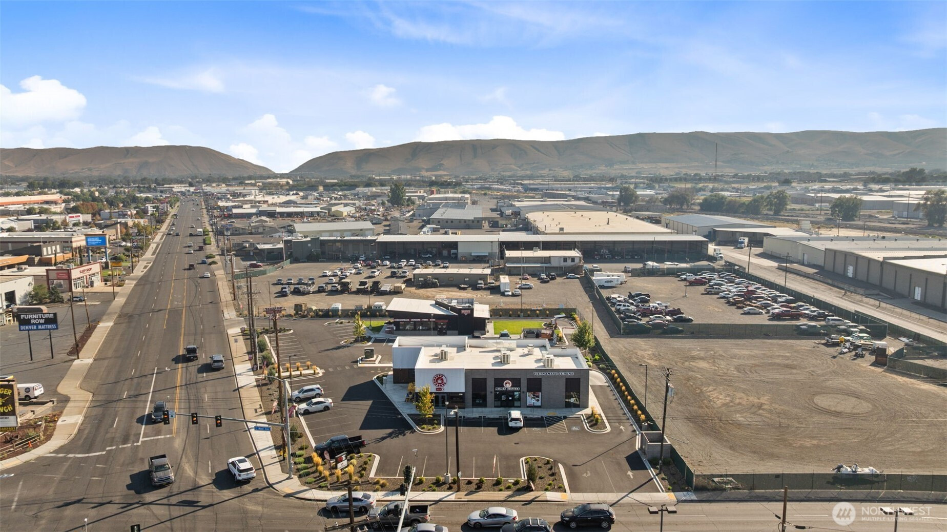 Turn-key investment in Yakima! Built in 2022, this 4,200 sq. ft. building sits on the busy corner of 1st & Mead and its fully leased by Wake Up Call (30+ locations strong) and Mom's Dishes, a beloved family-owned restaurant. Both tenants are on long-term leases with built-in rent increases, offering stable income and virtually no management. If you're looking for an easy, hassle-free commercial investment in a prime location, this is it.