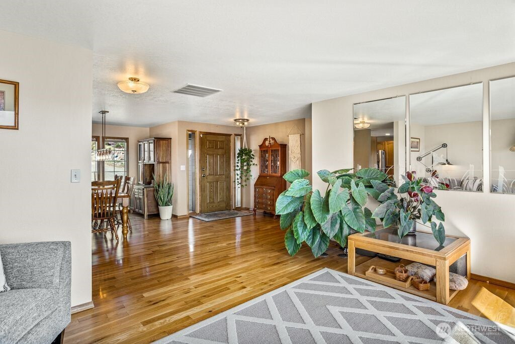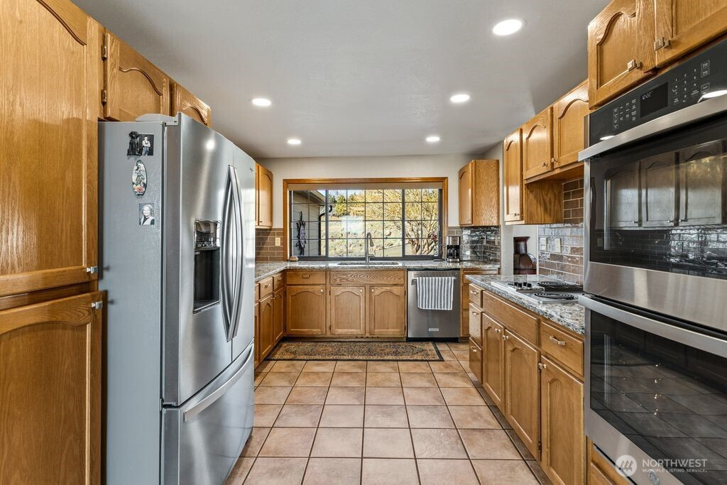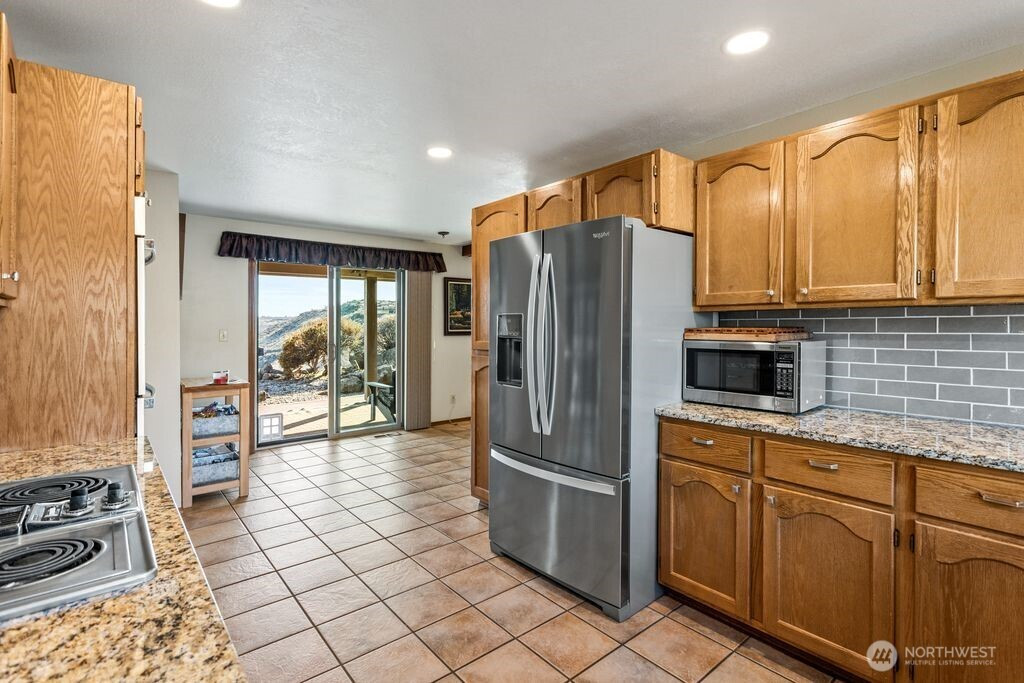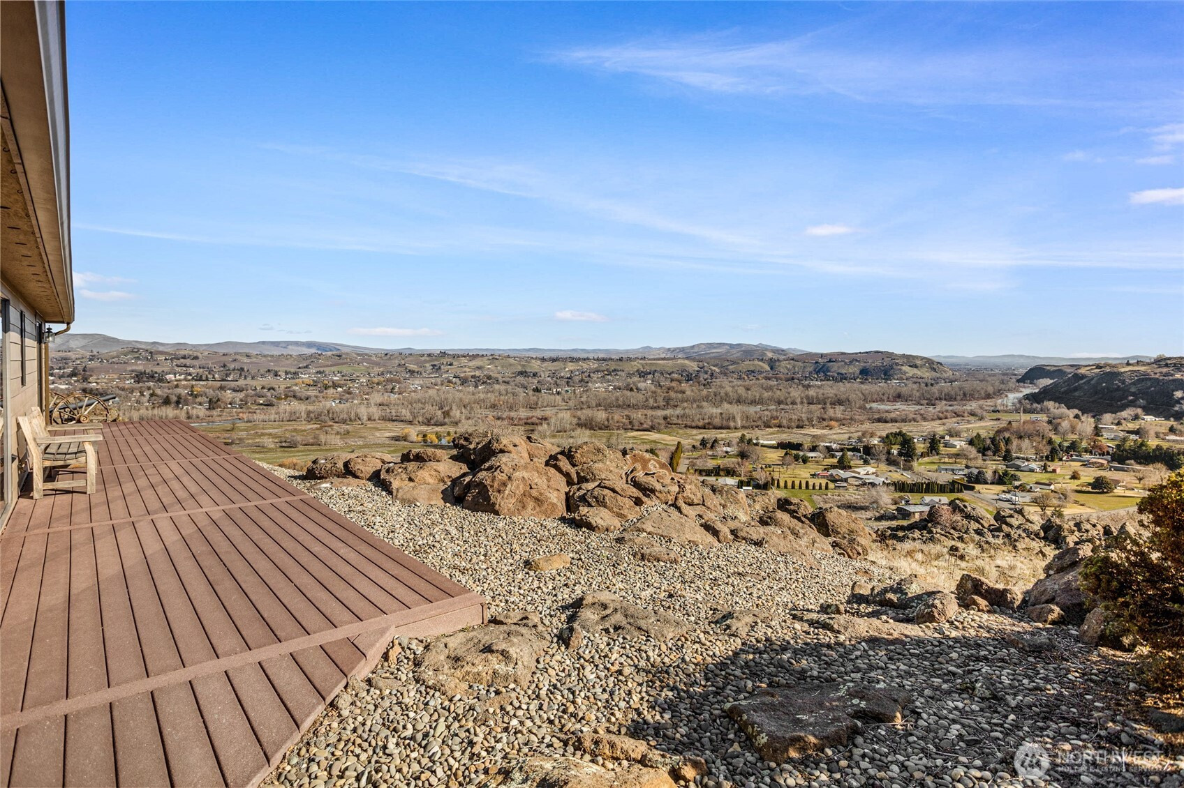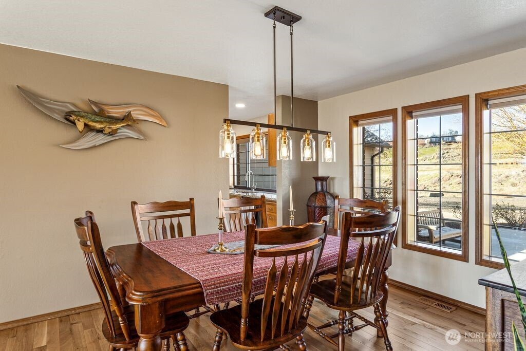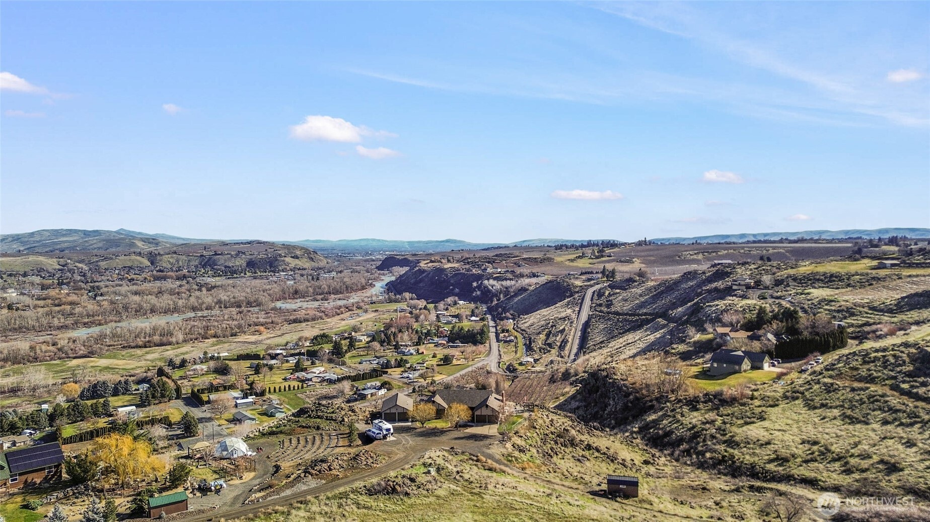 Experience one of the most breathtaking views in Yakima, where the scenery transforms with the seasons, offering a sense of peace and serenity. This home, situated at the end of a road with an unobstructed view, is ideal for those seeking a single-level residence with minimal yard maintenance. It boasts a stunning view of the Naches River and ample space around the property for parking an RV (with waste station), as well as room for future expansion. Step inside to admire the hardwood floors and appreciate the living room's picturesque view, complemented by a separate dining area perfect for entertaining. The kitchen has been upgraded with granite countertops and modern appliances, while the separate family room offers a cozy atmosphere with its view and pellet stove. The main bathroom features a granite countertop and a freestanding bathtub. Ideal for unwinding. The primary bedroom includes an upgraded shower and generous closet space, with an adjoining door to a separate bedroom. This connected room can serve as a nursey or be utilized as an extended bedroom or office area. At the back of the home, a deck provides a perfect spot for barbecuing or simply relaxing while taking in the view. The property also includes an attached two-car garage. Additionally, there is a separate ADU, complete with its own 2-car garage and a studio setup, just a few steps from the main house. This also has a panoramic view and features a murphy bed and heater in garage.