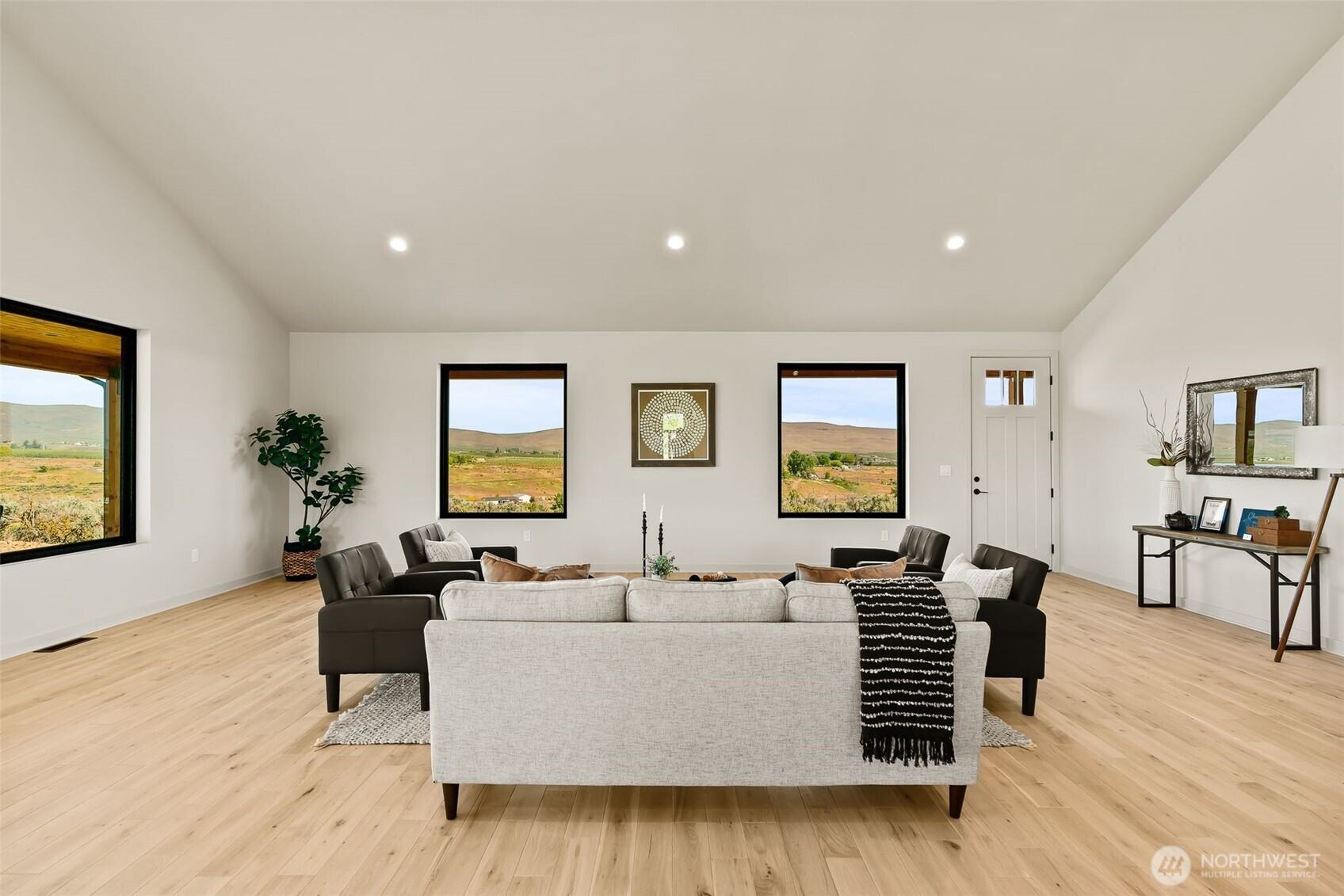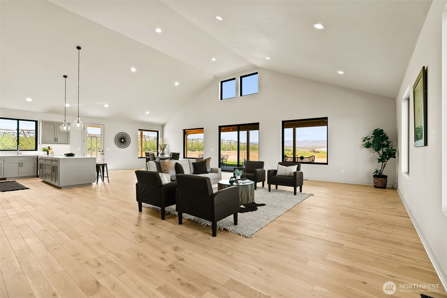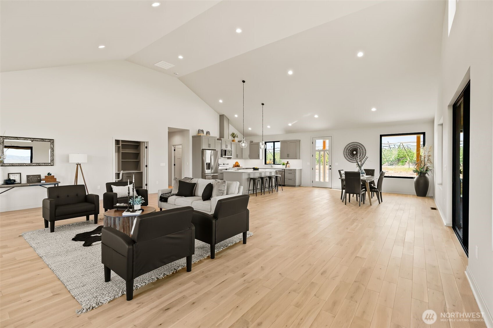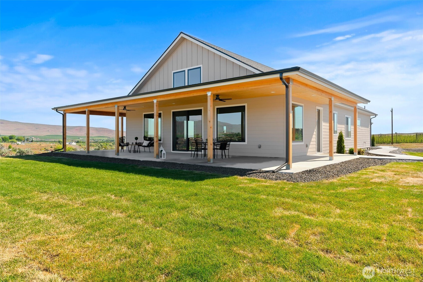 Enjoy sweeping 180-degree views of West Valley Yakima from this stunning new construction home set on 4.6 acres of peaceful countryside. Thoughtfully designed with hardwood throughout, featuring custom tile work, and a dedicated office with built-in cabinetry—perfect for working from home. The open-concept kitchen features a large island with storage, stainless steel appliances, and quartz countertops; flowing into the main living area with vaulted ceilings, large picture windows as well as an oversized sliding door stepping out onto a show-stopping covered wraparound patio—ideal for entertaining or soaking in the sunset. Plenty of room to add a shop or ADU, this property offers flexibility and future potential. Seller financing available.