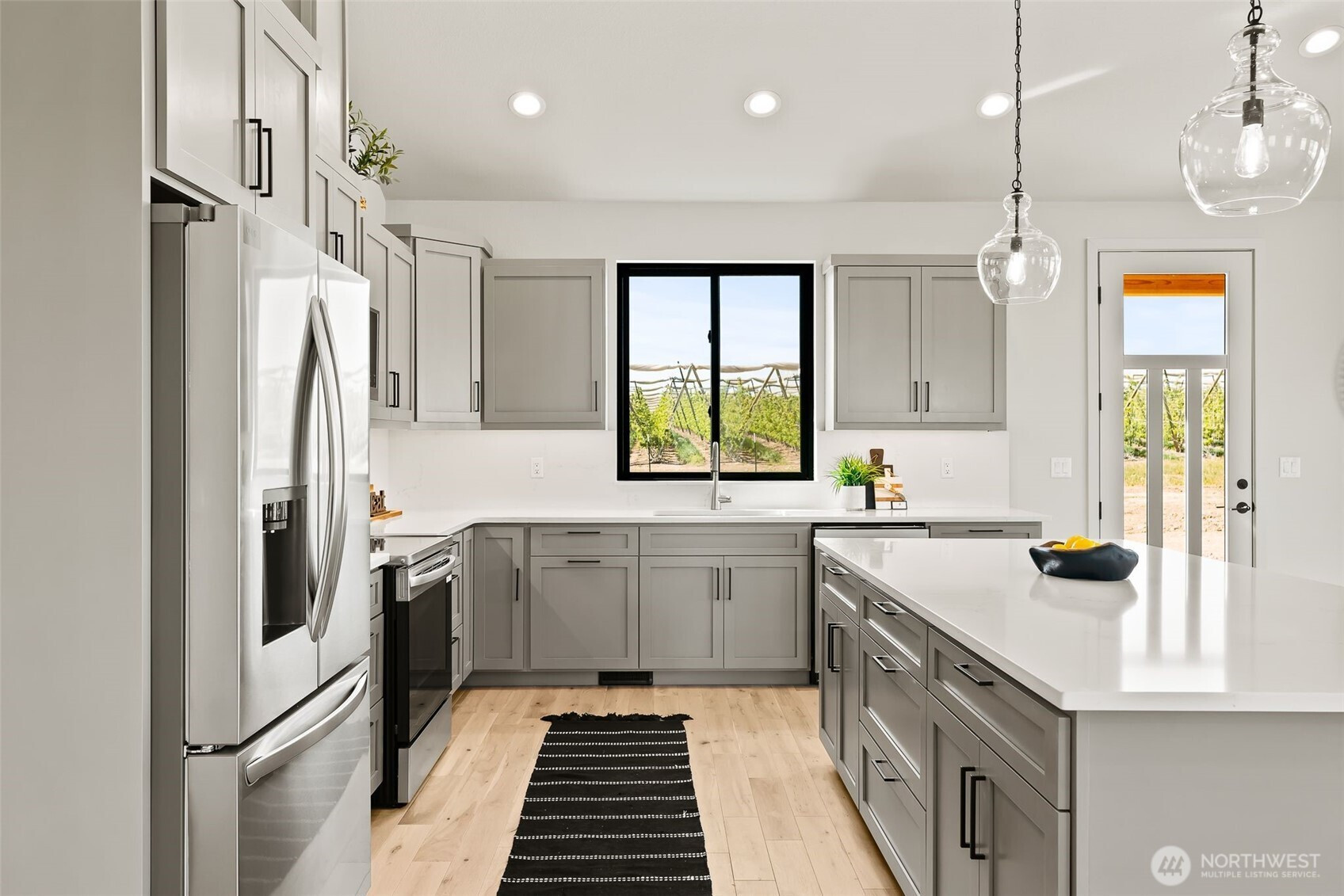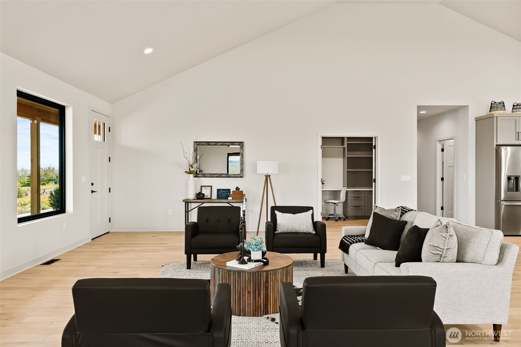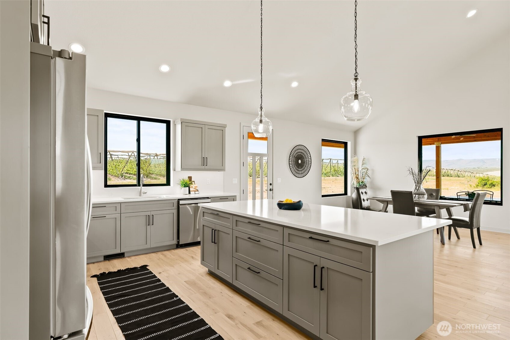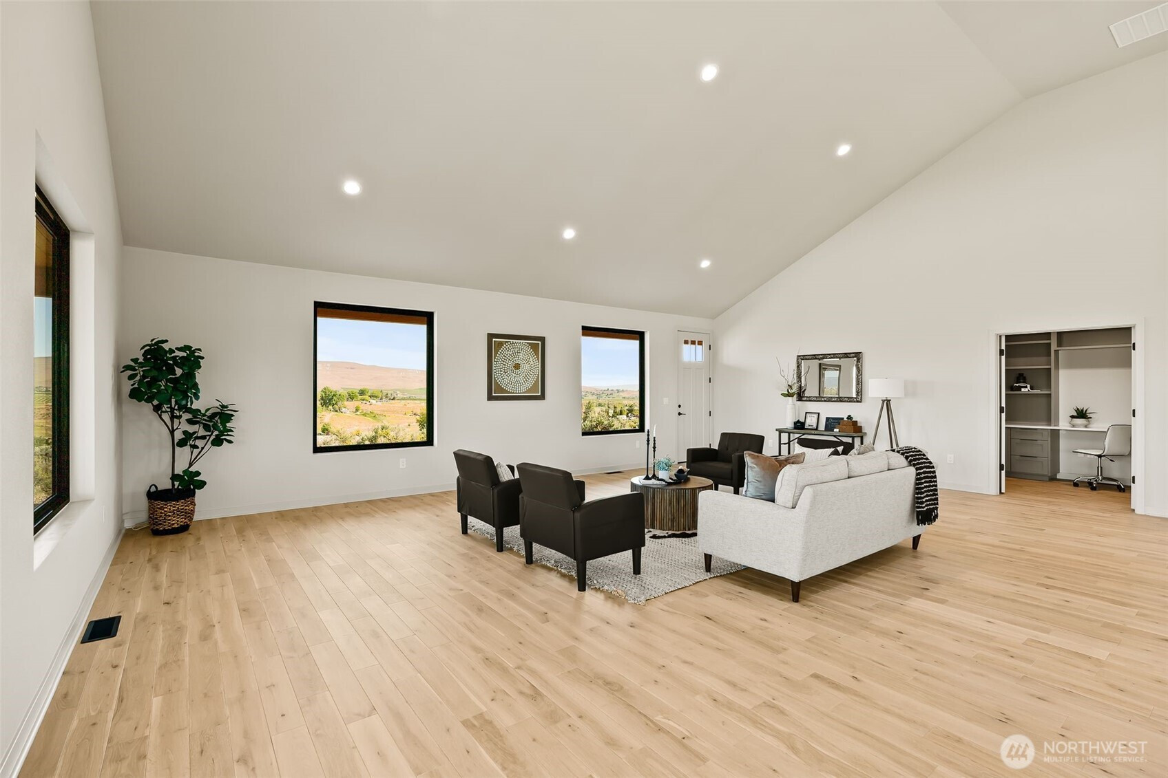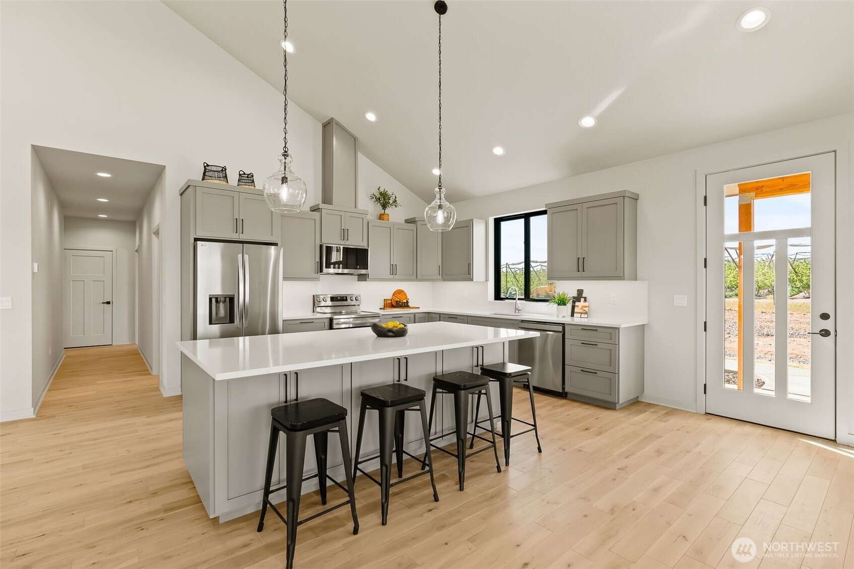 Enjoy sweeping 180-degree views of West Valley Yakima from this stunning new construction home set on 4.6 acres of peaceful countryside. Thoughtfully designed with hardwood throughout, featuring custom tile work, and a dedicated office with built-in cabinetry—perfect for working from home. The open-concept kitchen features a large island with storage, stainless steel appliances, and quartz countertops; flowing into the main living area with vaulted ceilings, large picture windows as well as an oversized sliding door stepping out onto a show-stopping covered wraparound patio—ideal for entertaining or soaking in the sunset. Plenty of room to add a shop or ADU, this property offers flexibility and future potential. Seller financing available.